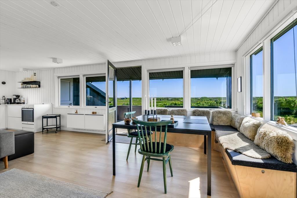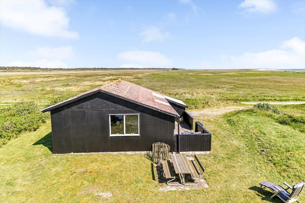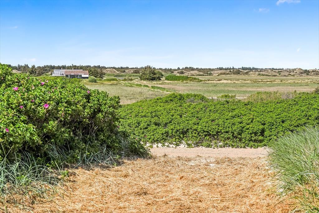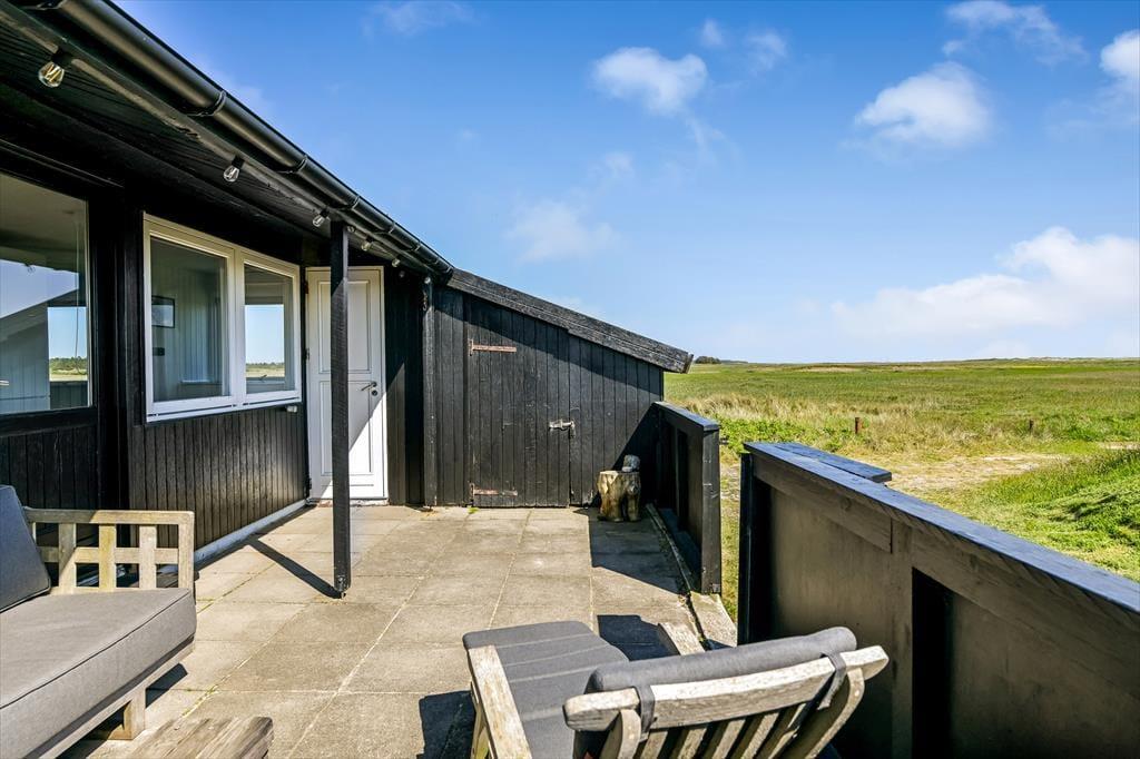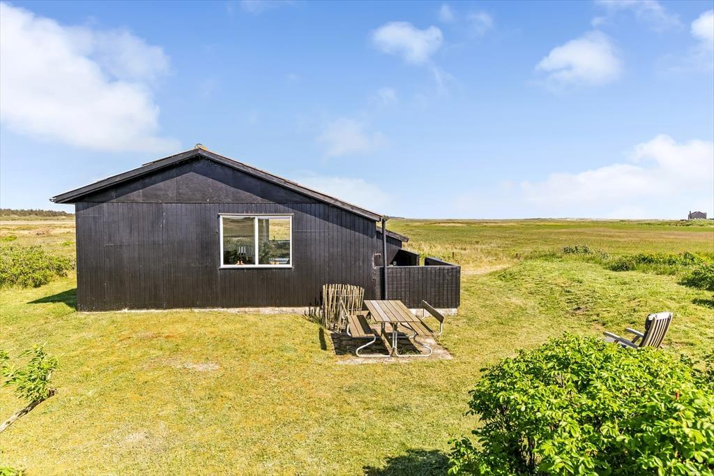Vil du lege og spille havespil med din familie, grille på terrassen eller nyde en tilbagelænet stund med en god bog i liggestolen? Det hele kan lade sig gøre på den store naturgrund, så det er helt op til dig, hvordan feriedagen skal forløbe i det fri. Sommerhusets sydvendte terrasse er delvist overdækket og helt aflukket – sidstnævnte er måske især en dejlig detalje, hvis du har en hund eller helt små børn med på ferie. Vender du hjem fra en kølig dukkert i Vesterhavet, kan du varme dig i læ fra hybenbuskene, og bagefter er det bare spørgsmålet, om du vil blive her indtil solnedgang, eller om du vil ud igen for at udforske det naturskønne landskab.