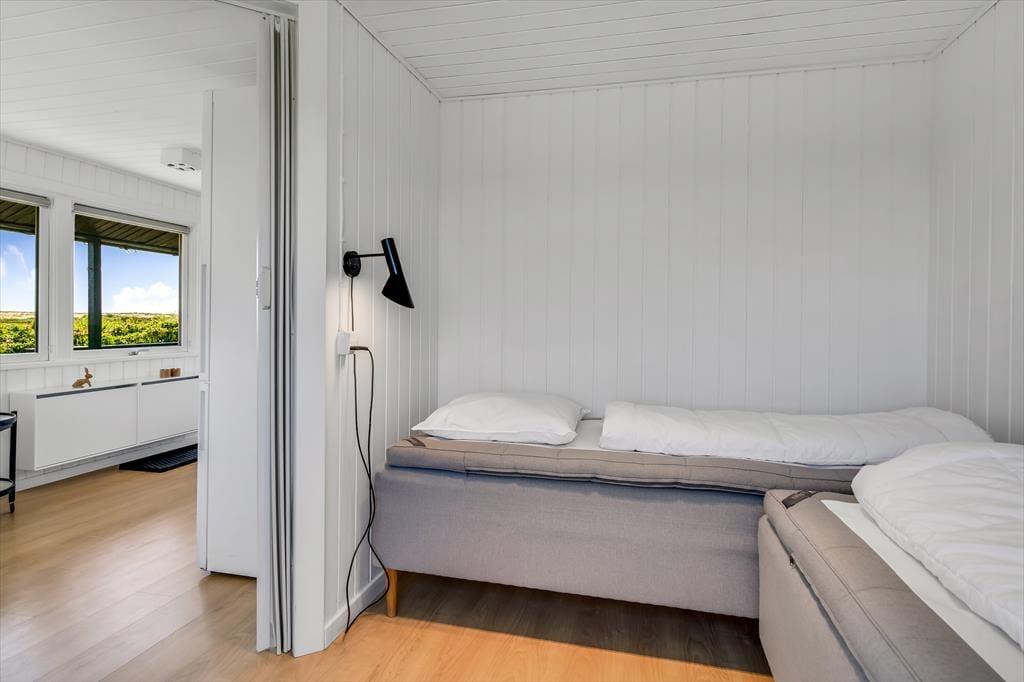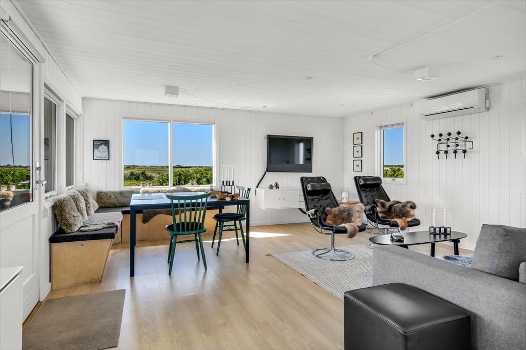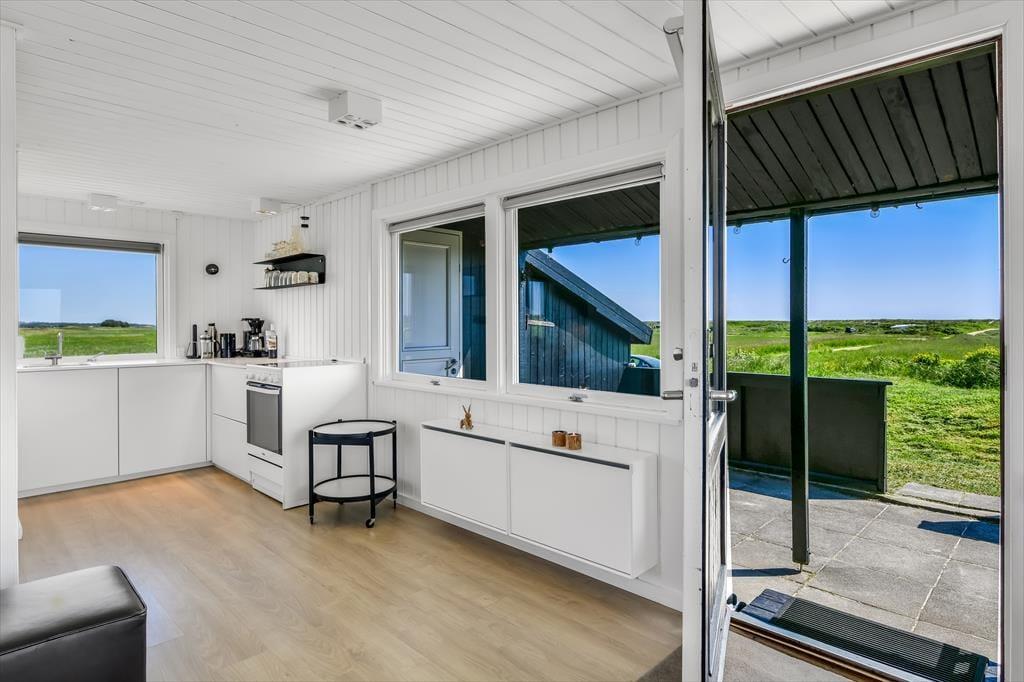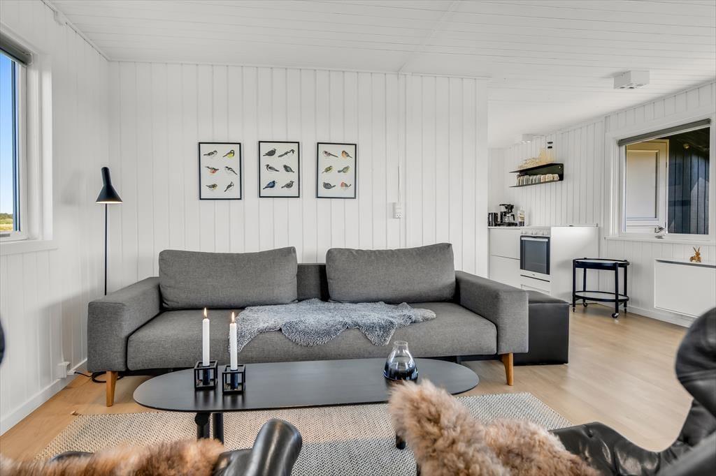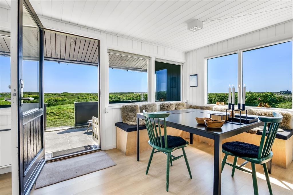 Vil du lege og spille havespil med din familie, grille på terrassen eller nyde en tilbagelænet stund med en god bog i liggestolen? Det hele kan lade sig gøre på den store naturgrund, så det er helt op til dig, hvordan feriedagen skal forløbe i det fri. Sommerhusets sydvendte terrasse er delvist overdækket og helt aflukket – sidstnævnte er måske især en dejlig detalje, hvis du har en hund eller helt små børn med på ferie. Vender du hjem fra en kølig dukkert i Vesterhavet, kan du varme dig i læ fra hybenbuskene, og bagefter er det bare spørgsmålet, om du vil blive her indtil solnedgang, eller om du vil ud igen for at udforske det naturskønne landskab.