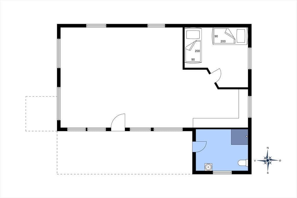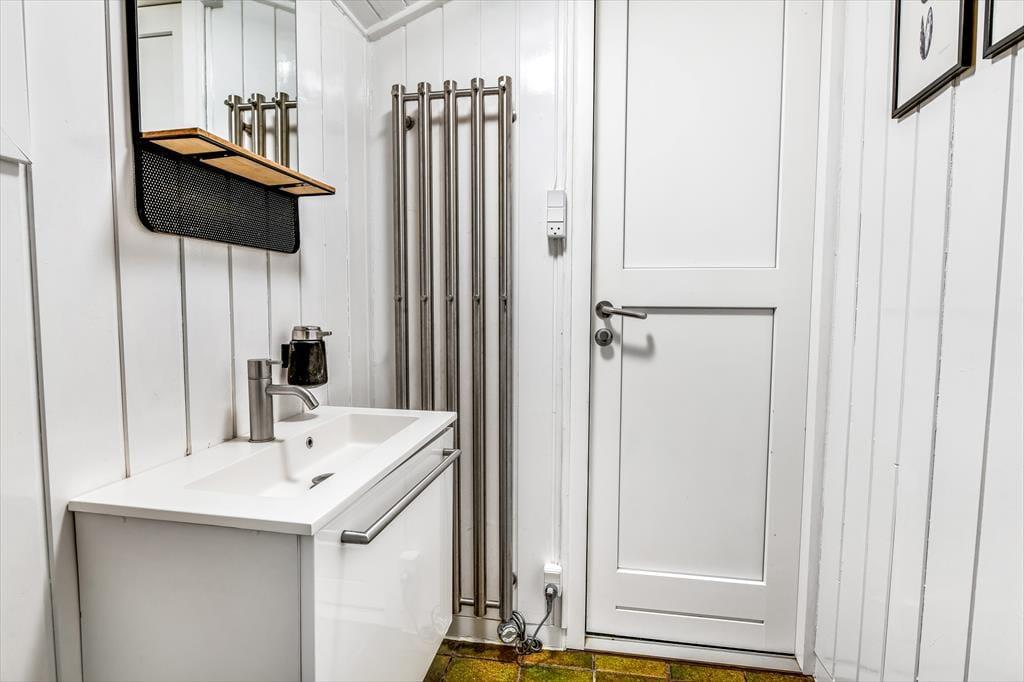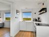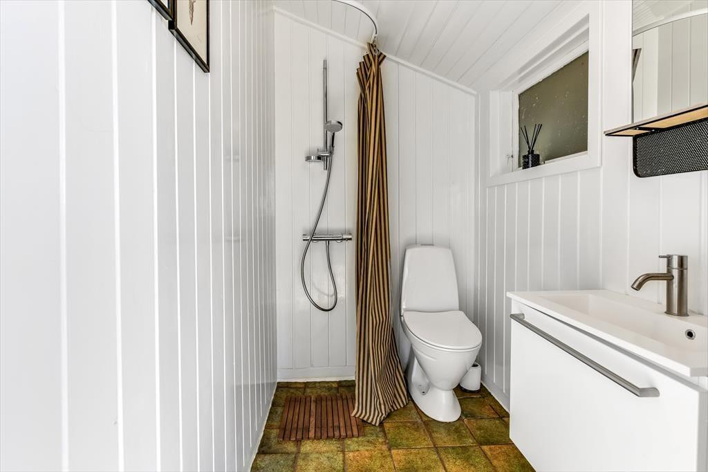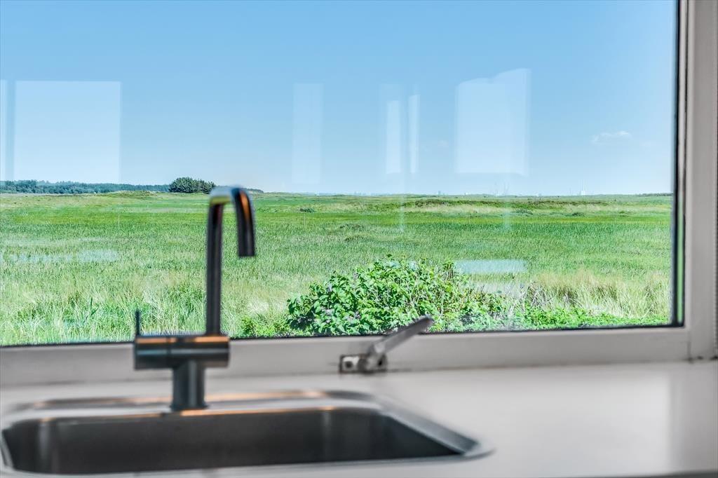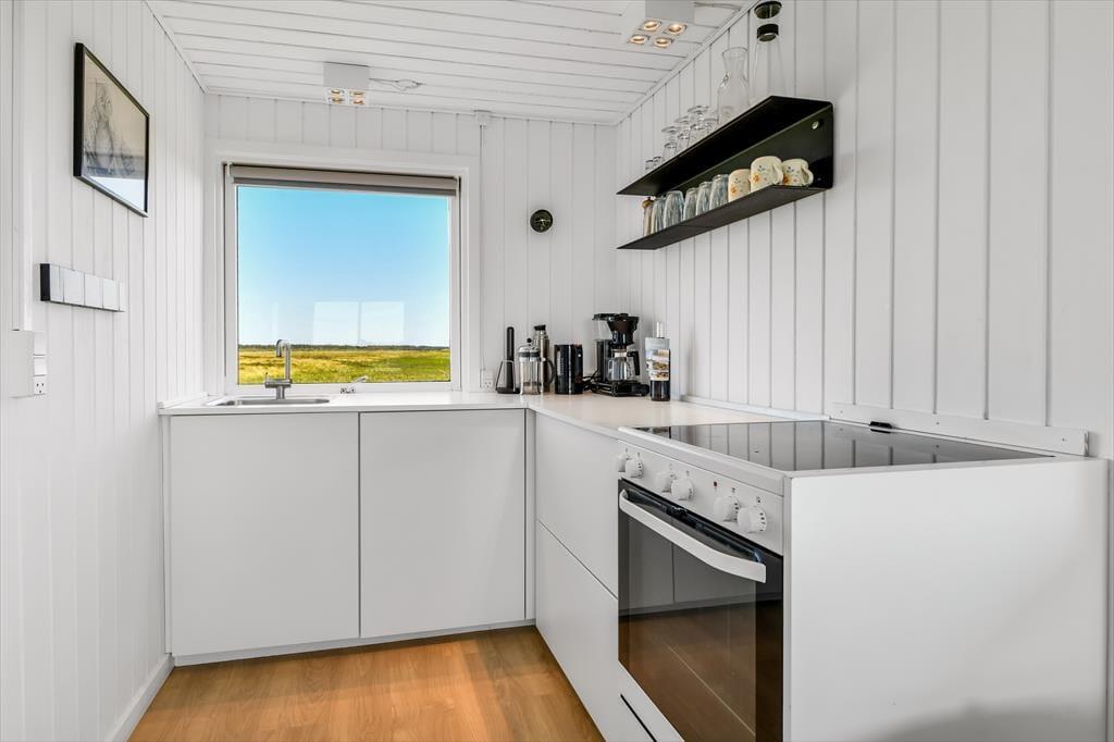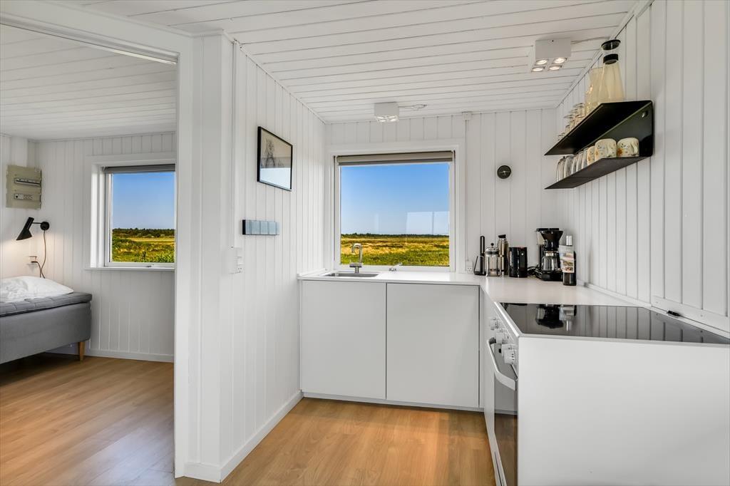 Der er lagt op til en klassisk sommerhusferie her på adressen, men dog i en moderniseret udgave, for det lille træhus er blevet renoveret, så alle rum fremstår lyse, lette og luftige. På gammeldags manér ligger badeværelset for sig, så du skal ud på den overdækkede terrasse, når du vil i bad – det er dog bare en god undskyldning for lige at trække frisk luft og mærke efter, om morgenkaffen skal indtages ud i det fri. Både fra spisepladsen og det åbne køkken har du en skøn udsigt over det åbne landskab, så uanset om du skræller kartofler eller sidder helt roligt med avisen, kan du mærke nærheden til naturen.