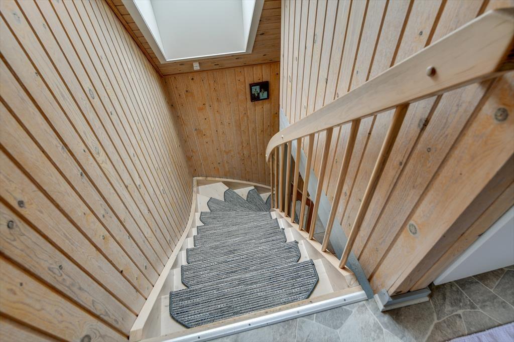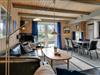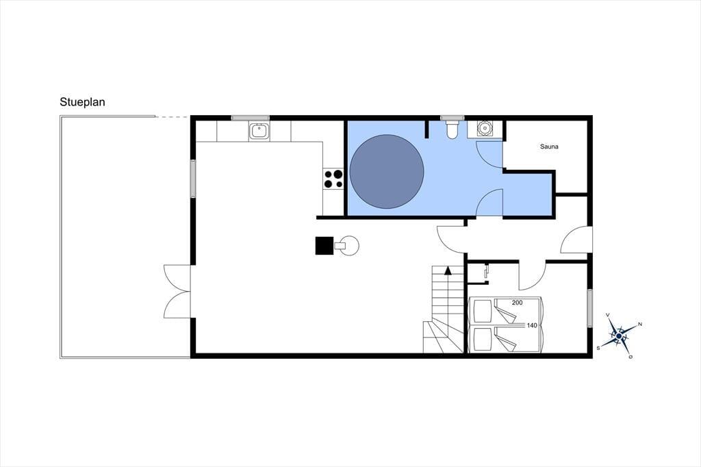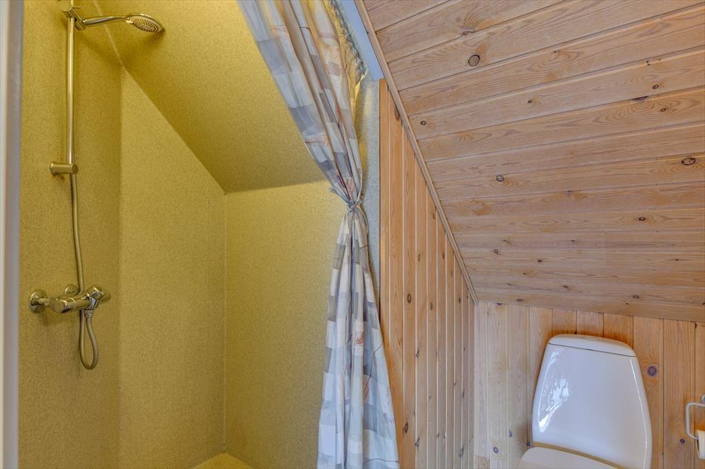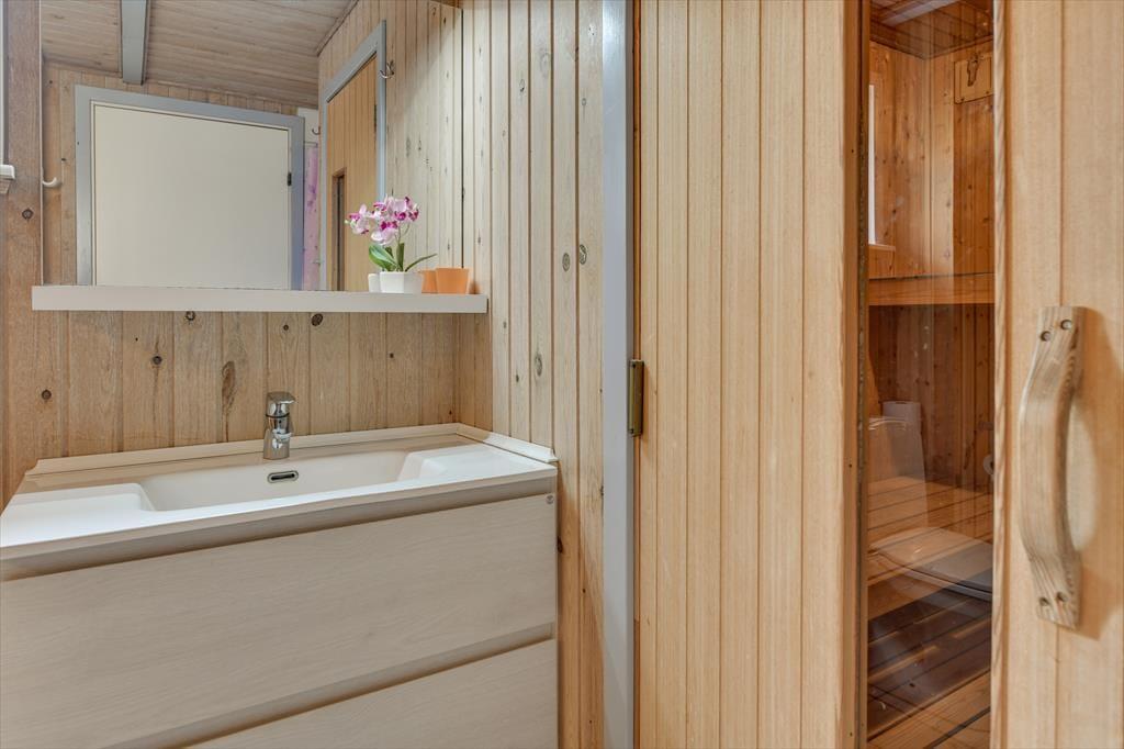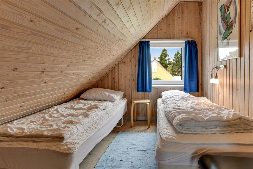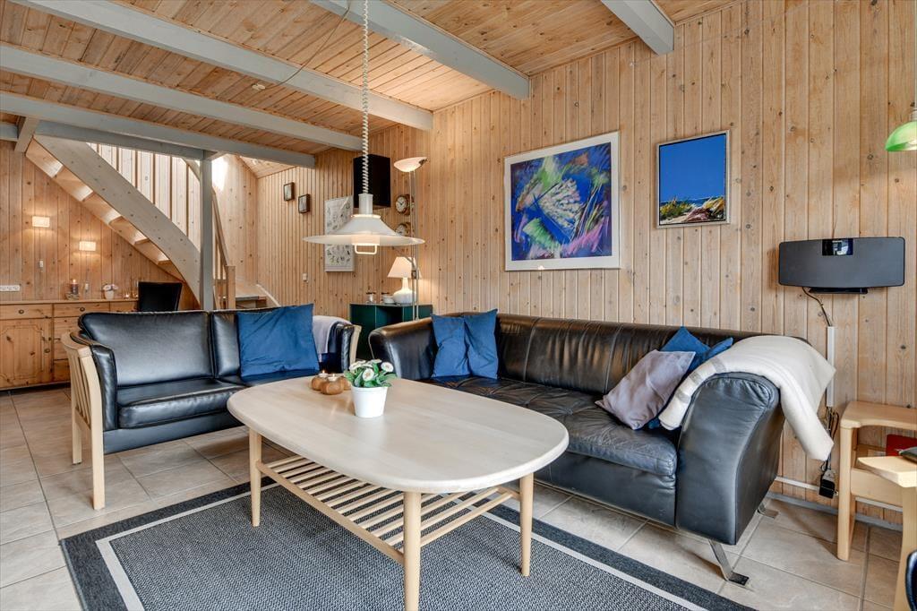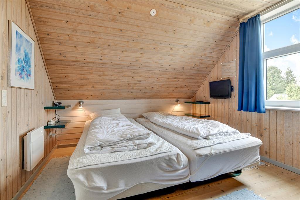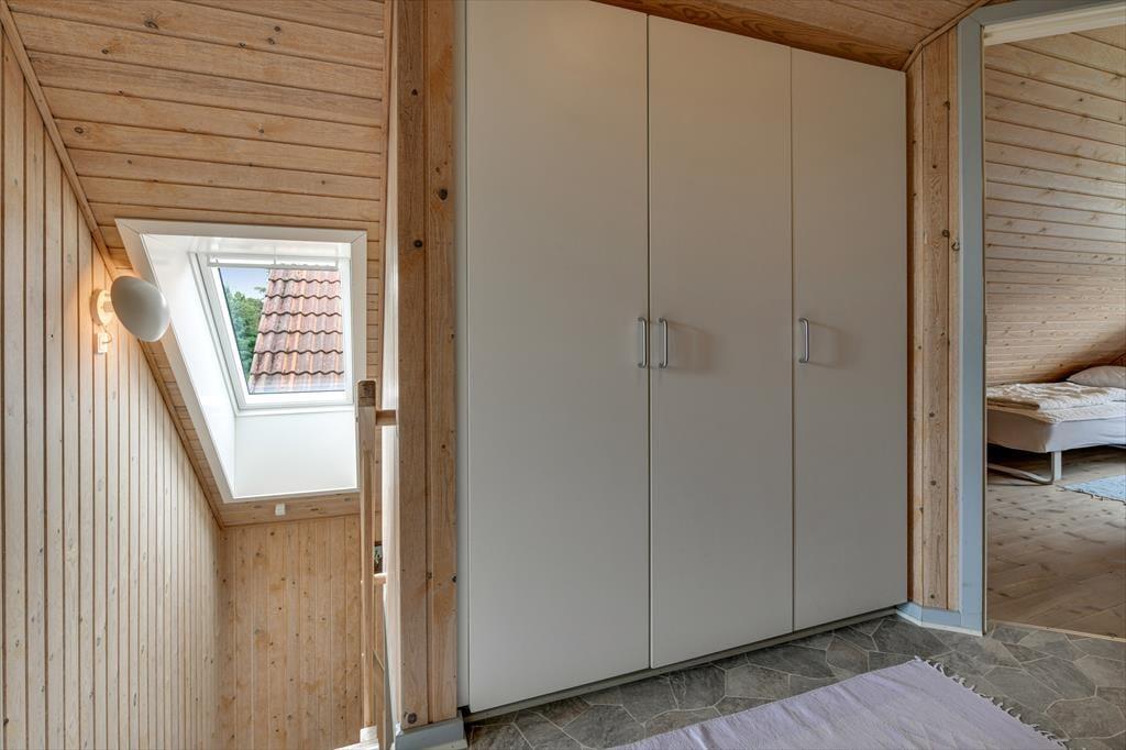 Vil du gerne nyde feriedagene i nærværet fra din familie eller med flere vennepar, kan det oplagt lade sig gøre her. Sommerhusets 109 m2 breder sig nemlig over to etager, og med fire soveværelser og to badeværelser giver planløsningen plads til otte personer. Badeværelset i stueplan er det største, og det er her, du finder både spabadet og saunaen – så du kan allerede nu begynder at glæde dig til at slappe af med tilbagelænet wellness. Stuen indbyder også til ren afslapning og livsnydelse, for her er der komfortable siddemøbler og brændeovn, og havedøren gør det nemt at rykke ud på terrassen, hvis solskinsvejret bliver for fristende.