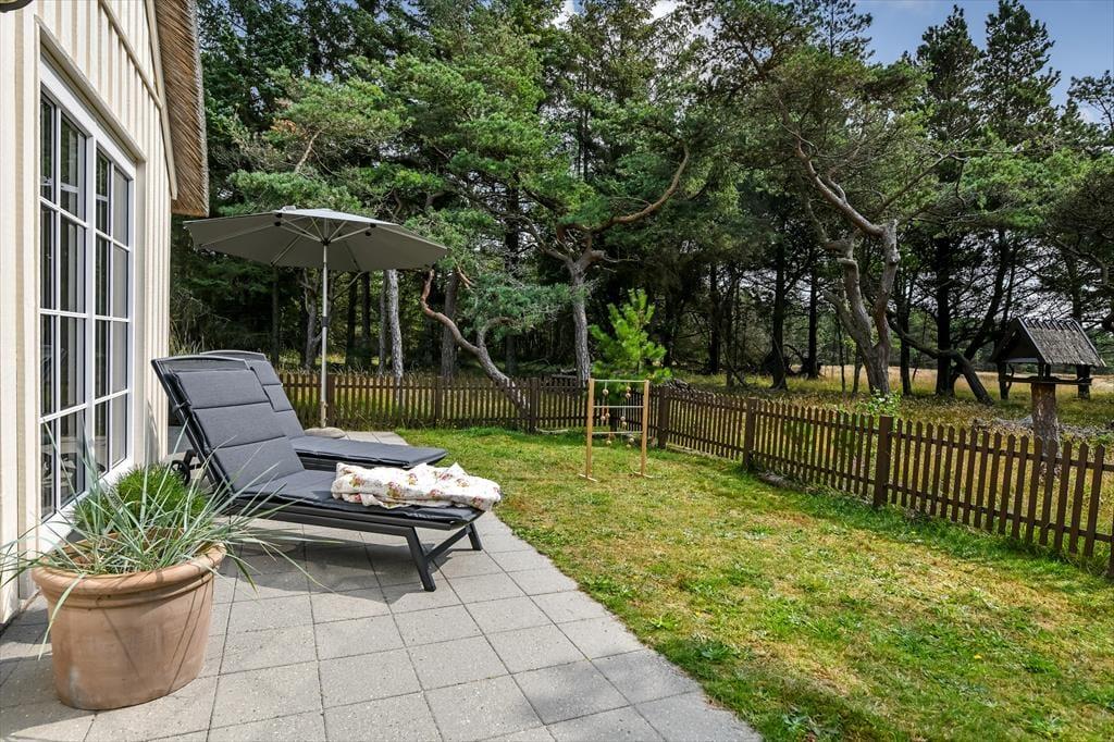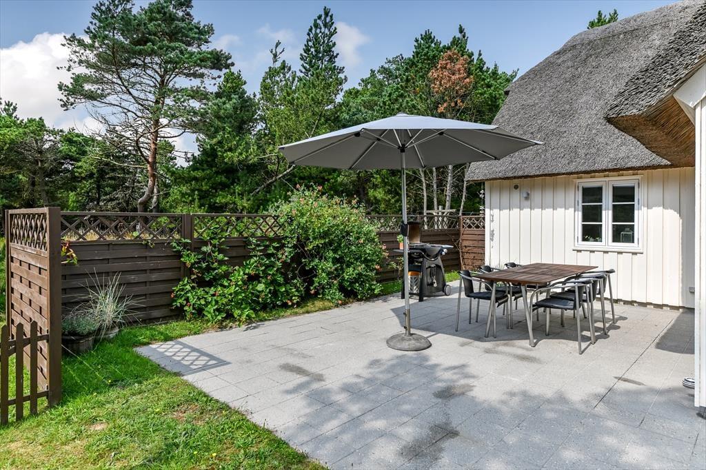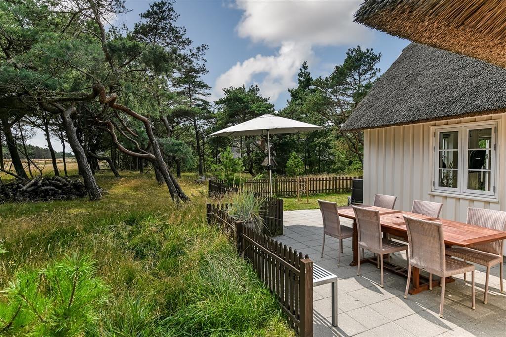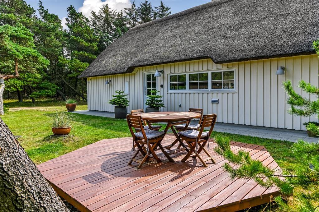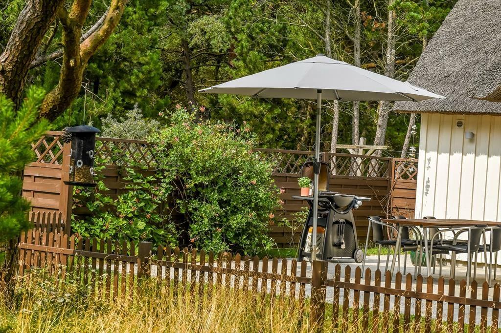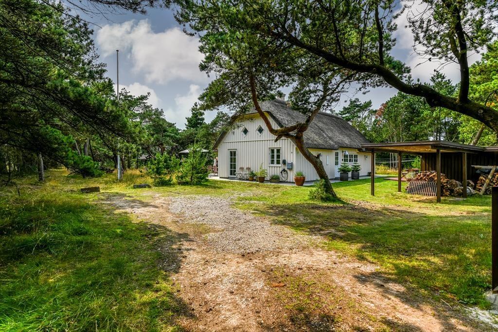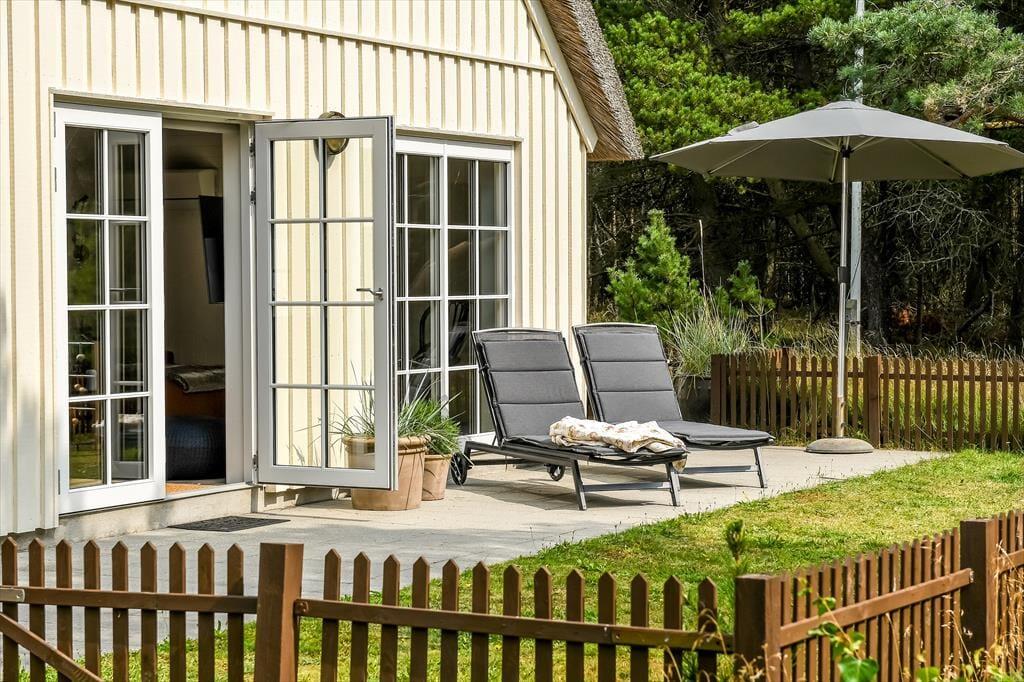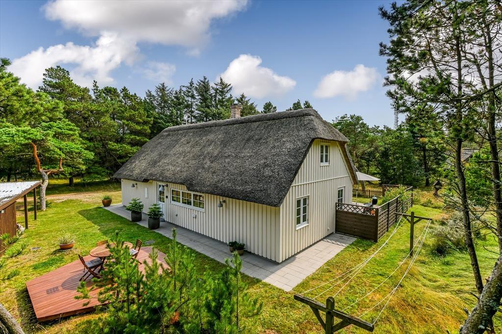 Hvis man slår ordet ’ferieidyl’ op i en ordbog, burde det være et foto af dette stråtækte træsommerhus, der dukkede op. Her på Contortavej 3 i Blåvand får du nemlig hyggestemning og fredfyldt natur for alle pengene – og så ligger det endda i bekvem gåafstand til både stranden og bymidten.