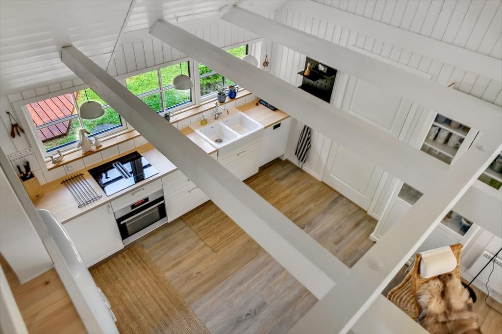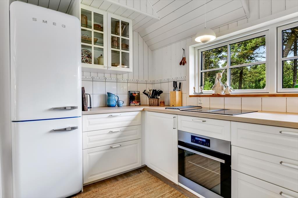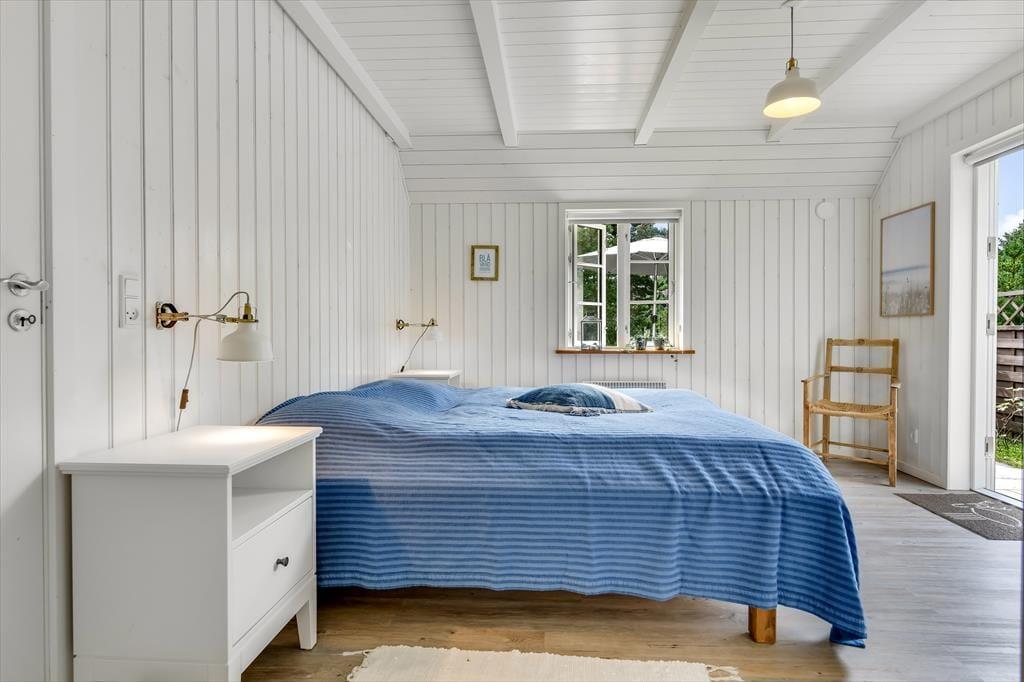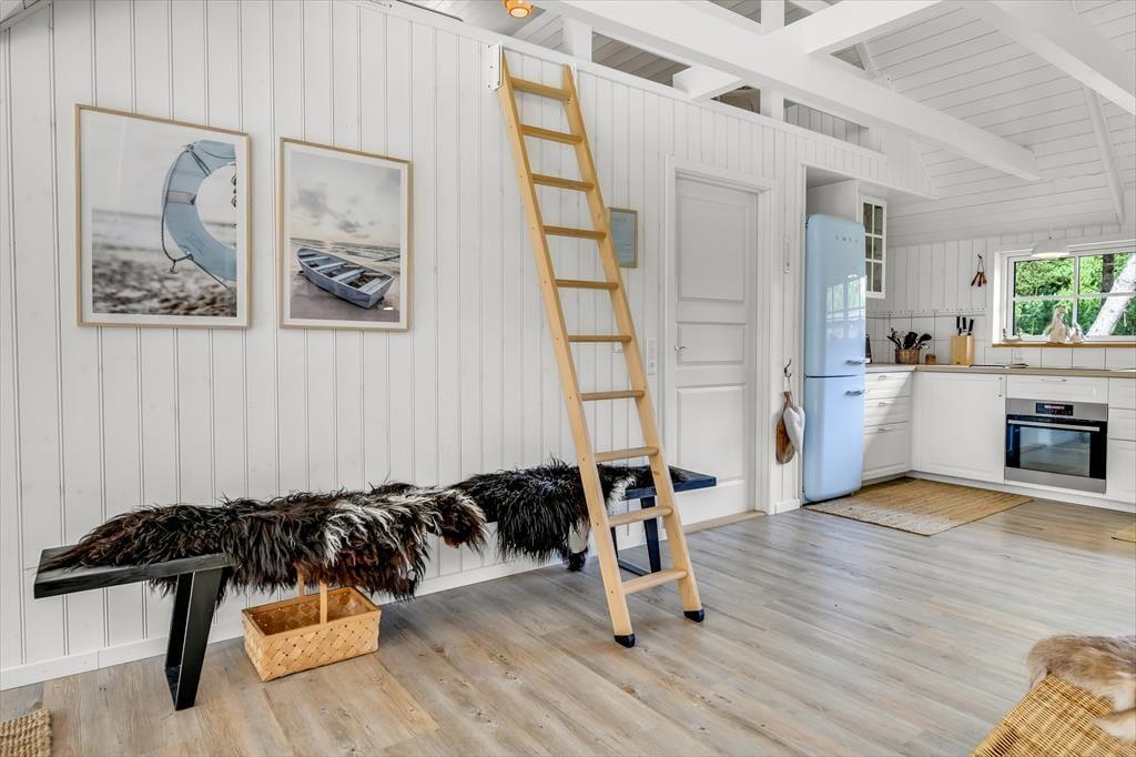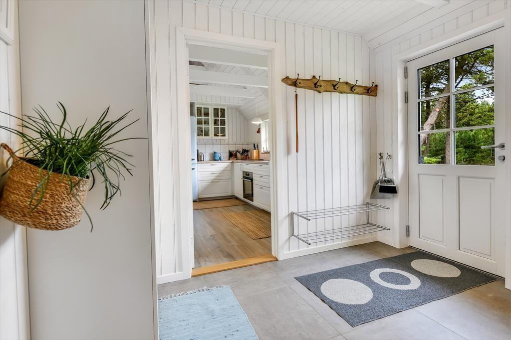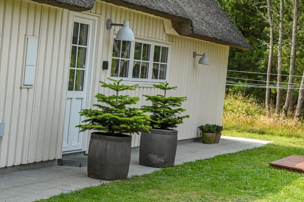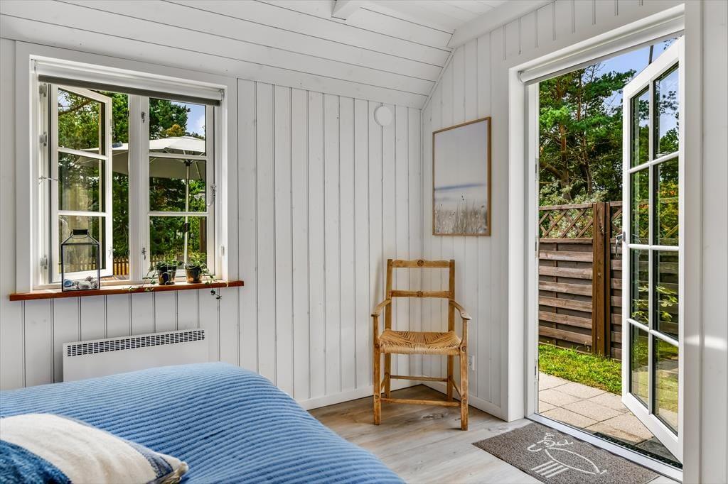 Med sit smukke stråtag og sin hvide træfacade er arkitekturen klassisk, men det 133 m2 store sommerhus har nu kun stået her på naturgrunden siden 2015. Inden døre byder indretningen på en velfungerende blanding af det tidsløse og det mere moderne, så du er sikker på at bo komfortabelt og samtidig i særdeles stemningsfulde rammer. Med to lækre badeværelser, tre gode soveværelser og en stor hems med ekstra sovepladser kan du nemt invitere familie eller venner med på ferien – og I kan alle glæde jer til at samles til leg, hygge og afslapning i det flotte opholdsrum. Her er der brændeovn til eventuelle kølige dage og et åbent køkken, hvor I kan trylle alle jeres favoritretter frem, og gennem vinduerne kan I nyde det smukke lysindfald og se lige ud på de naturskønne omgivelser.