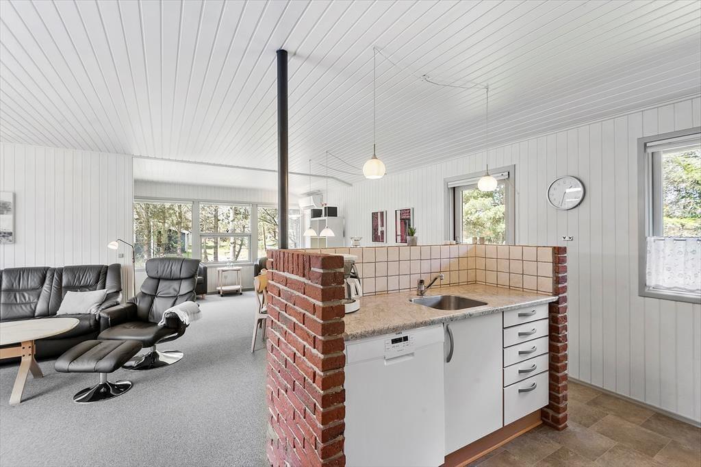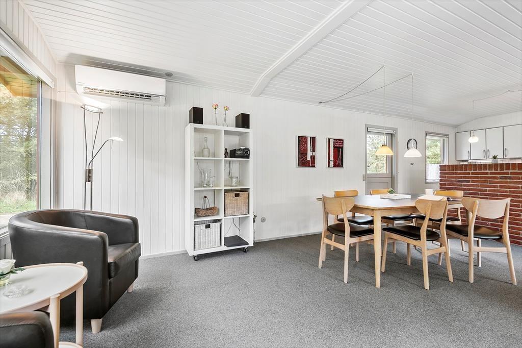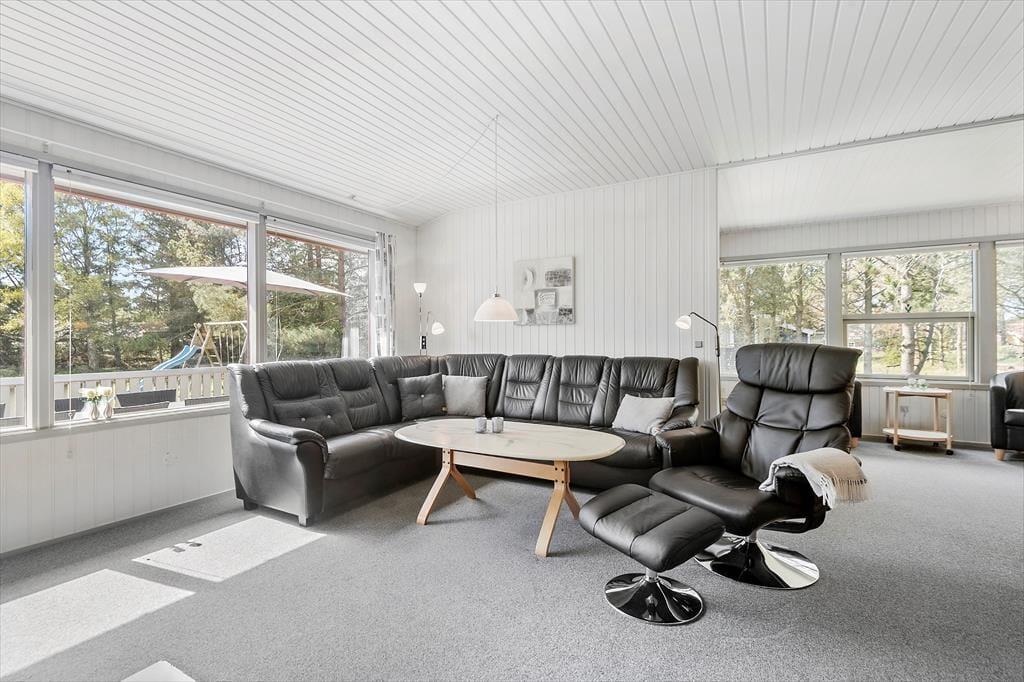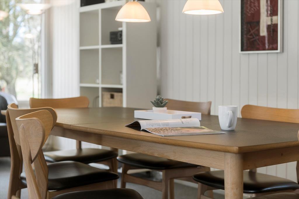 Sommerhuset er et oplagt valg, hvis du vil have kvalitetstid med din familie i hyggelige rammer. Der er tre soveværelser, et badeværelse og et gæstetoilet at gøre godt med, så der er plads til seks personer – og derfor kan bedsteforældrene eller gode venner måske også inviteres med. Badeværelset er for øvrigt udstyret med både spabad og sauna, så efter en dag fyldt med oplevelser og udflugter er det et herligt sted at slappe af. Husets stue indbyder til fælles hyggestunder og socialt samvær: Find jeres brætspil frem og slå jer ned ved spisebordet, eller sæt jer sammen i sofaen nær den knitrende brændeovn med gode bøger eller en film på fladskærms-tv’et. Hvis det er dig, der har madtjansen om aftenen, kan du smutte hen i det åbne køkken for at kokkerere, mens I fortsætter hyggesnakken og mærker duften sprede sig.