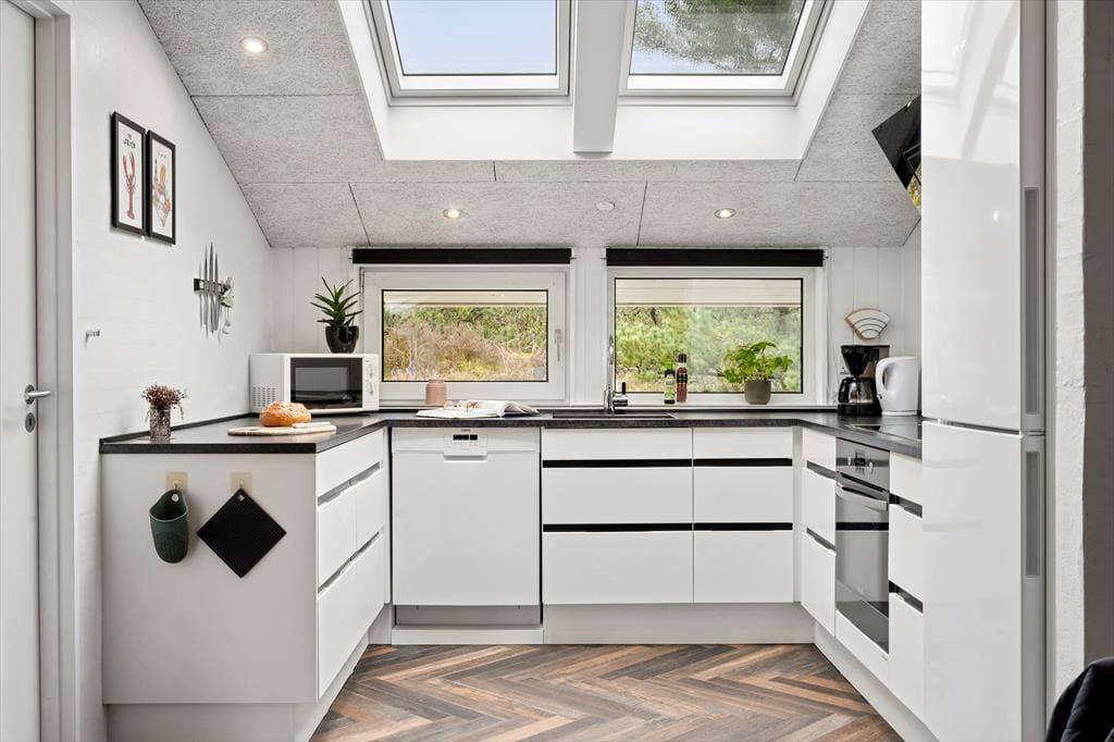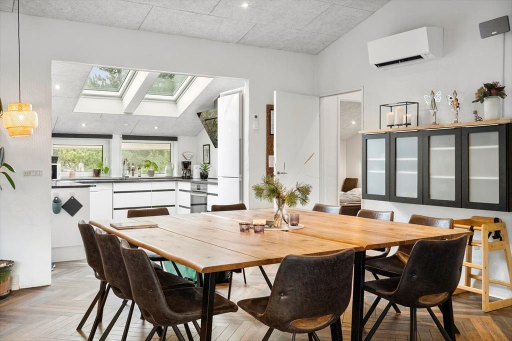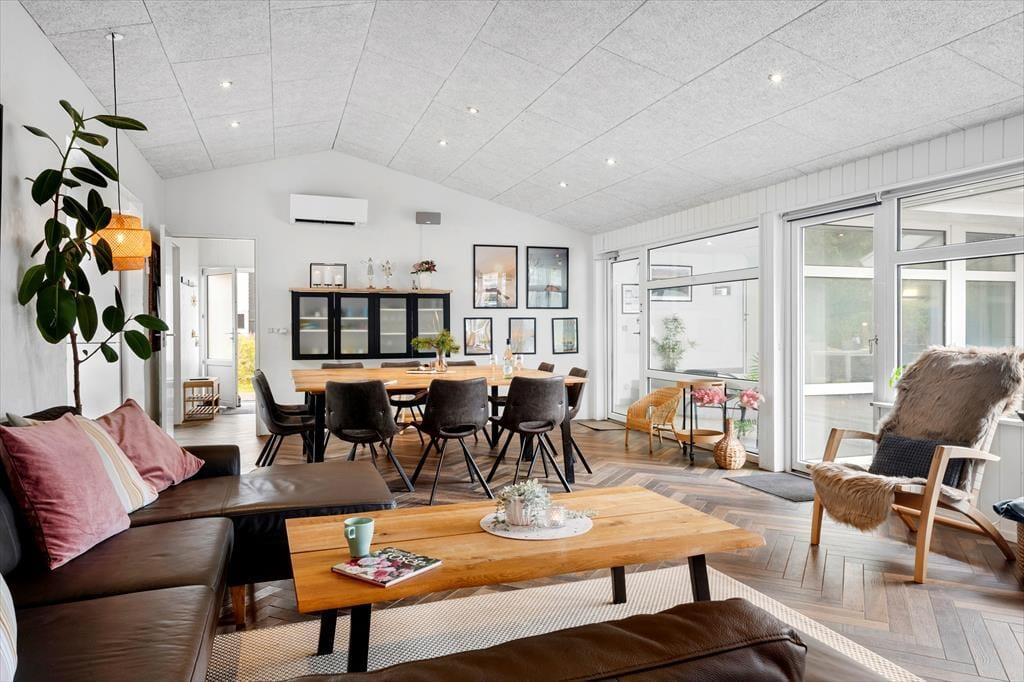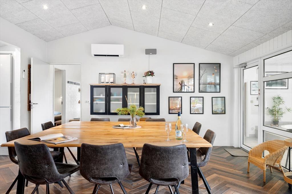 Hvis du er i gang med at planlægge en ferie for to børnefamilier eller gerne vil invitere bedsteforældre og søskende med, er huset et rigtigt godt valg. Inden døre har I nemlig 176 m2 at brede jer på, og med fem soveværelser, to badeværelser og et ekstra toilet er det muligt at være op til 10 personer. Det ene badeværelse ligger i forbindelse med poolafdelingen, som er et herligt sted for alle – uanset om I vil lege og svømme i swimmingpoolen, eller om I er mere til tilbagelænet wellness i form af varme spabade og saunature. Centralt i huset ligger opholdsrummet, og her er det næsten også garanteret, at du og dine kære kommer til at hygge jer: Det lyse rum er lækkert indrettet med brændeovn, komfortable siddemøbler, en moderne køkkenafdeling, stort fladskærms-tv, SONOS og meget mere, der forsøder ferielivet.