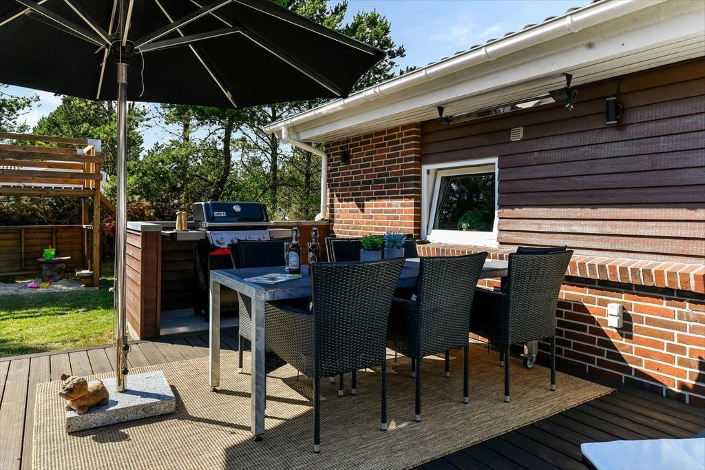 Hele familien kan se frem til at holde en skøn ferie på Solsiden 46 i Blåvand. Her på adressen finder du og dine kære nemlig et stort og velindrettet sommerhus, der byder på hele fem soveværelser med hver deres TV, en lækker poolafdeling og et skønt terrassemiljø– og så ligger hele herligheden roligt placeret i bunden af en lukket vej.