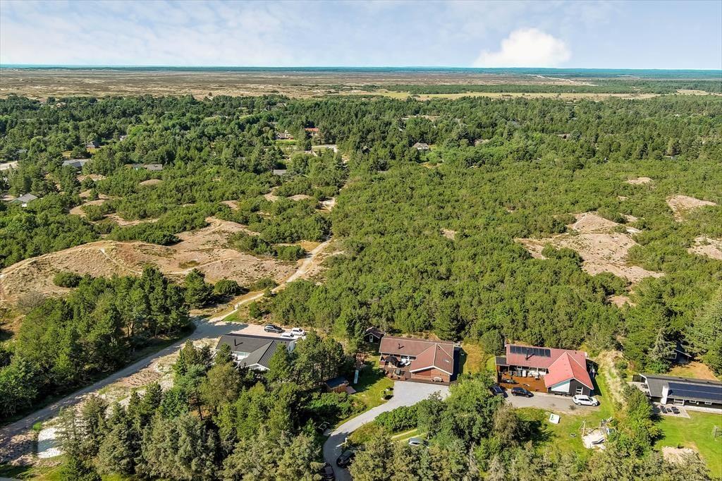 Sommerhuset har en attraktiv beliggenhed i bunden af den fredelige grusvej Solsiden. Lige nord for naturgrunden breder et fredet areal sig, og her kan du gå ud, hvis du vil strække benene på en lille tur – eller følge stierne hele vejen til for eksempel Tirpitz-museet. I Blåvands bymidte kan du tage på restaurant og købe ind i de hyggelige specialbutikker hele året rundt, og når vejret indbyder til det, vil et slag minigolf eller en isvaffel på en bænk måske også friste. Isen kan også indtages nede ved Blåvand Strand, der lokker med fint, hvidt sand og klart badevand. Og hvis du vil se Vesterhavet lidt fra oven, skal du sætte kursen mod Blåvandshuk Fyr og gå helt til tops i tårnet.