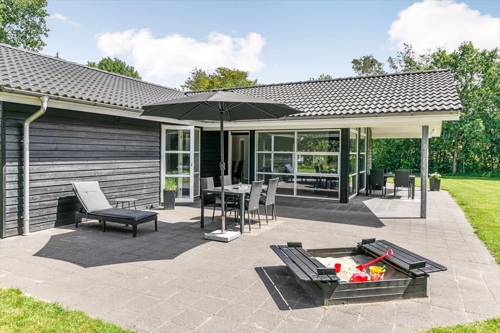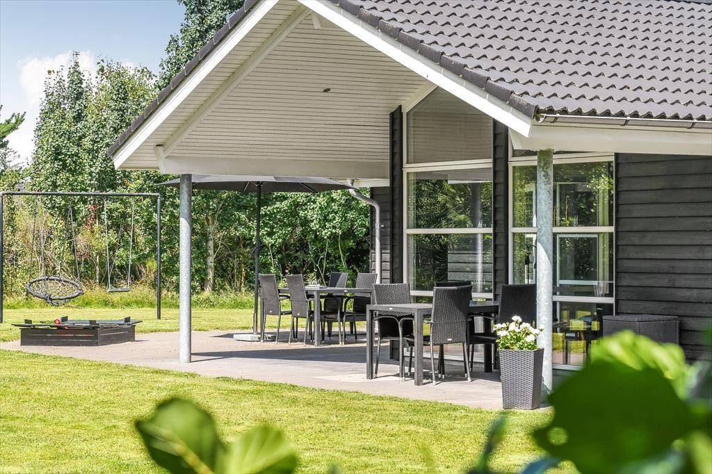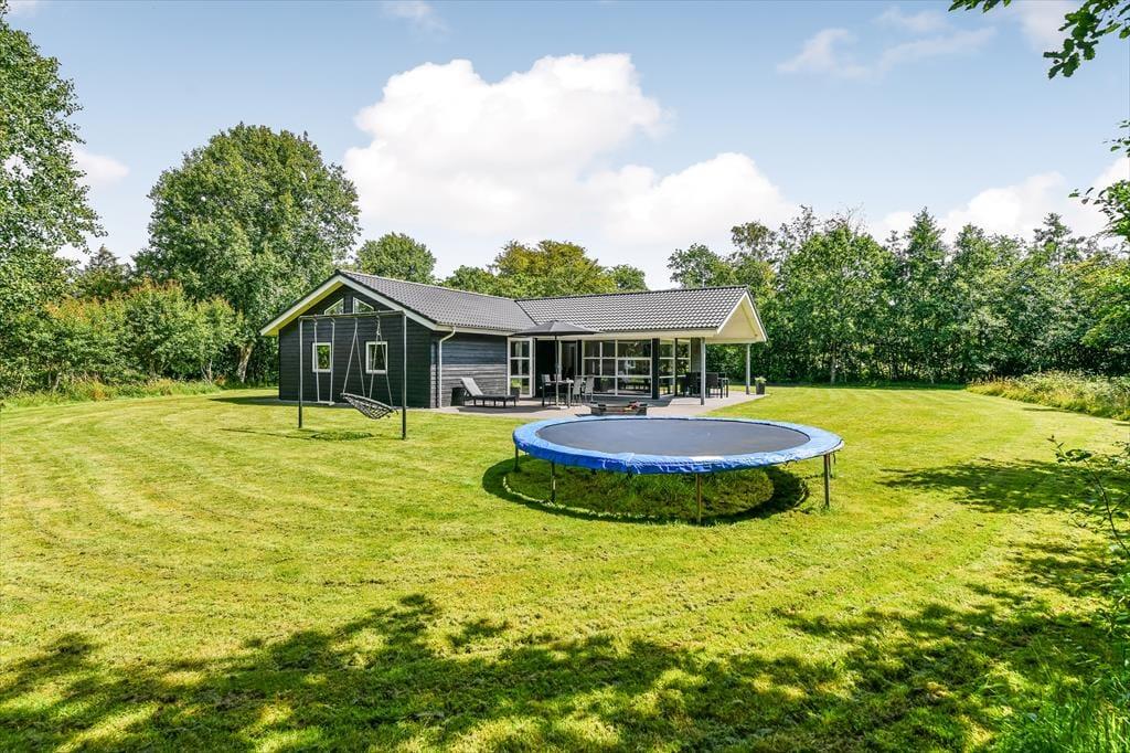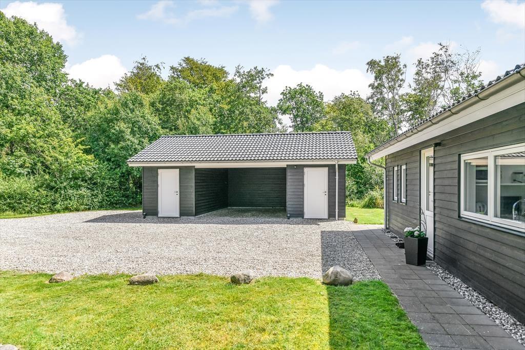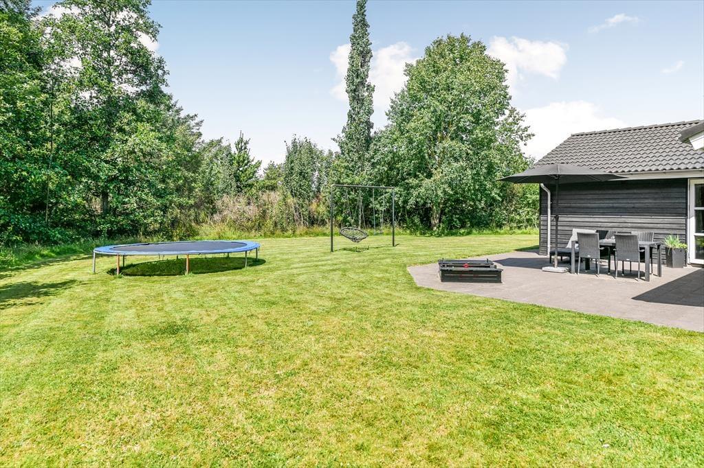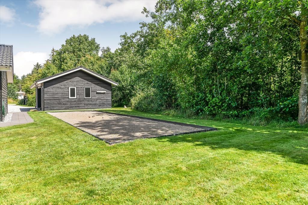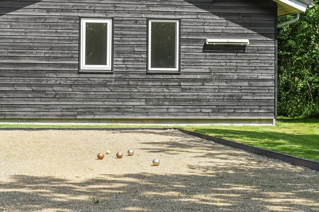 Det er svært at forestille sig, at du og familien løber tør for aktivitetsmuligheder, når vejret lokker jer udenfor, for den store naturgrund har en dejligt stor græsplæne at lege på, og der er både petanquebane, trampolin, gynge og sandkasse til rådighed. Når solen skinner over Blåvand, kan det selvfølgelig også være fristende at nyde det gode vejr på mere afslappet vis, og så gælder det bare om at slænge sig i liggestolene på terrassen eller at samles omkring havebordet til en god frokost under åben himmel. Ved indkørslen er der en carport til bilen, og hvis I har medbragt cykler, er der plads til dem i redskabsrummet. Ydermere har husejer også installeret en elbil-lader.