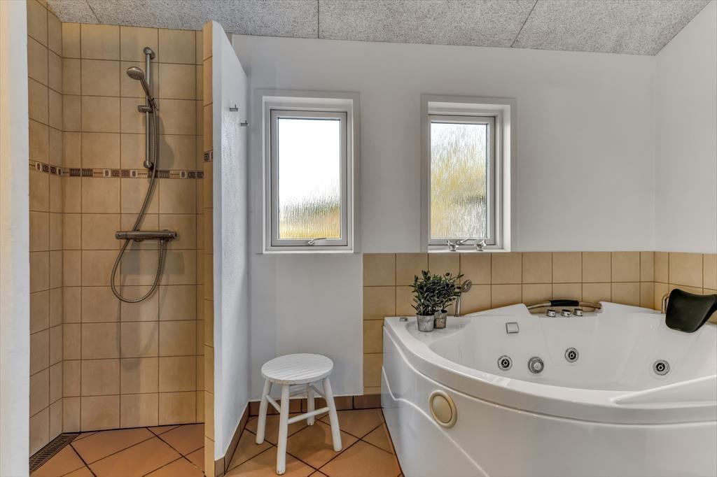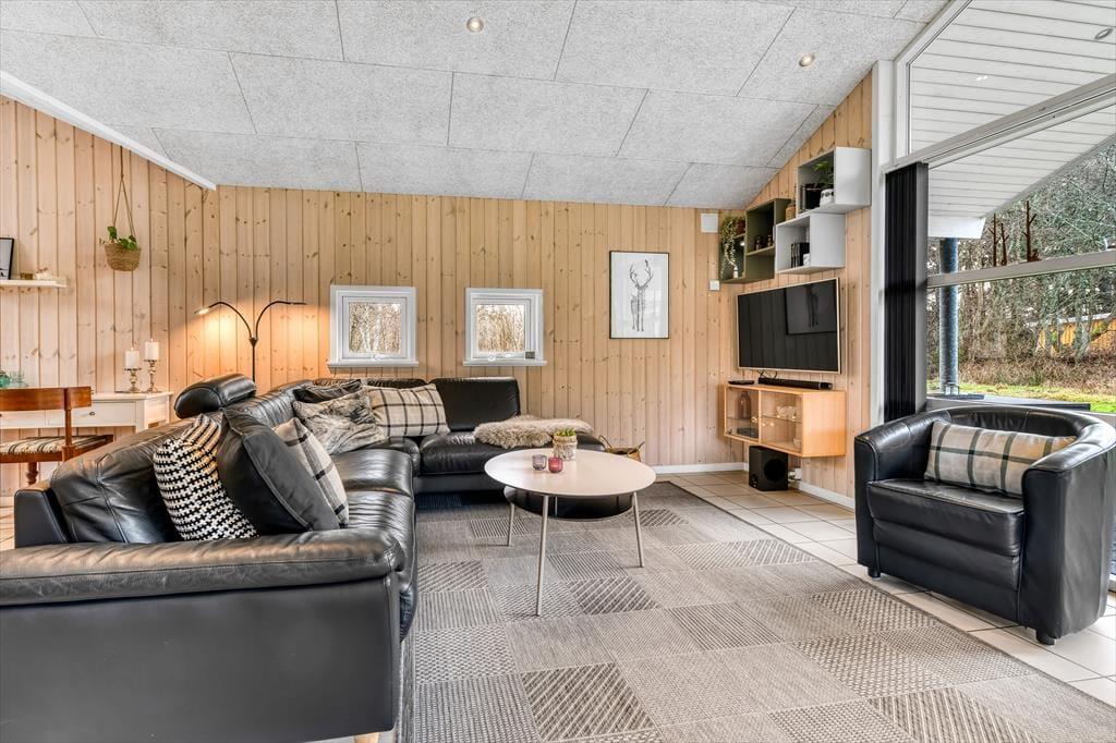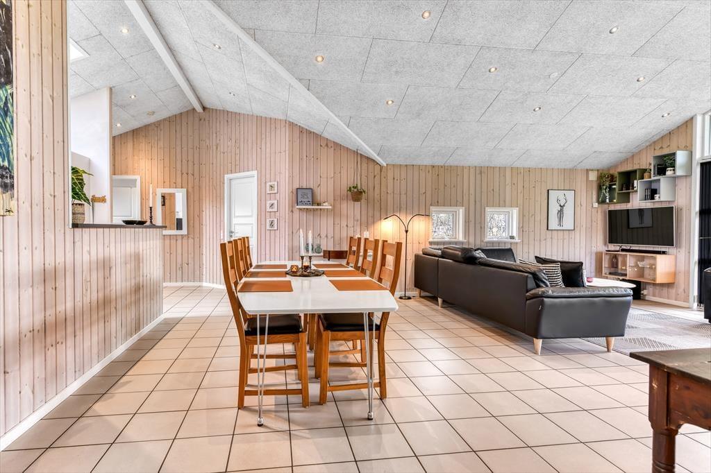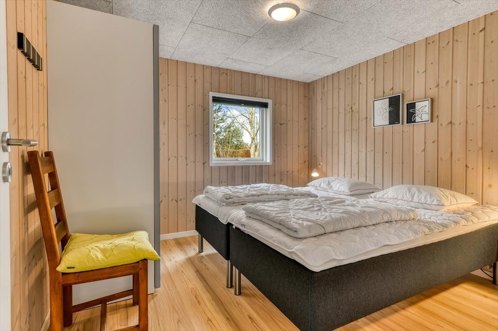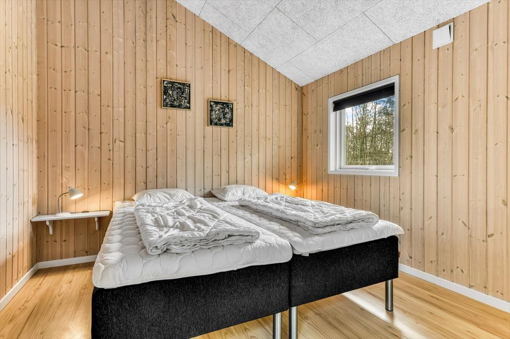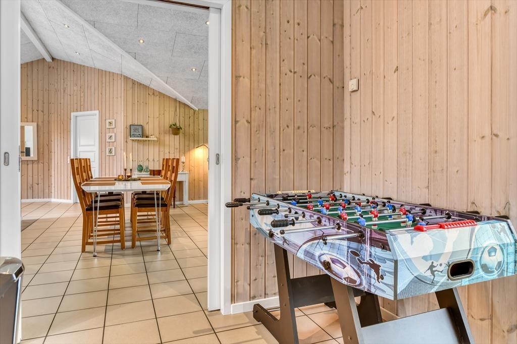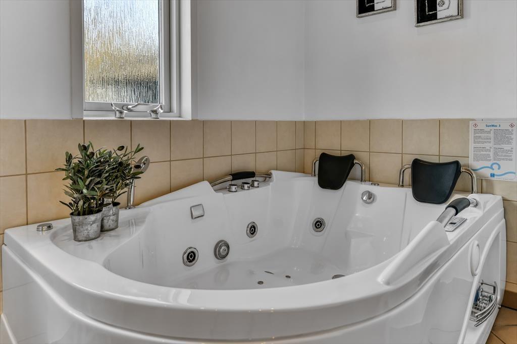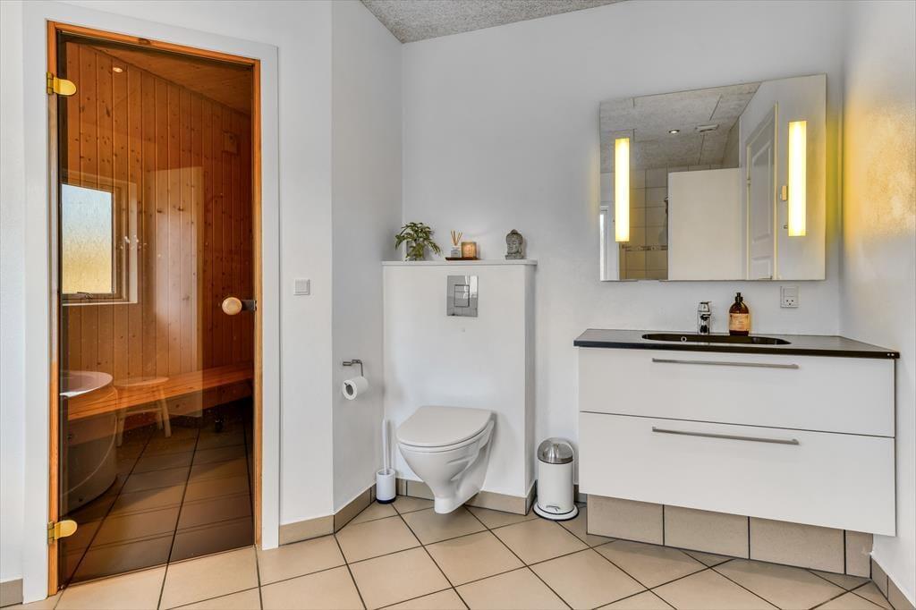 Med tre soveværelser, en god hems og to dejlige badeværelser kan sommerhuset nemt rumme seks voksne og to børn, og planløsningen passer med andre ord også glimrende til to familier. Alle husets senge er fra 2025. På det ene badeværelse er der både spabad og sauna til de dage, hvor du drømmer om at nyde ferielivet i helt tilbagelænet tempo. Efter sådan en wellness-stund kan du fortsætte driverlivet i stuens sofaafdeling, og hvis der skal være lidt mere gang i den, kan du udfordre de andre i for eksempel pool eller bordfodbold i aktivitetsrummet. Både indretning og de store vinduer er med til at give huset en lys og luftig atmosfære, og så er det for øvrigt værd at nævne, at huset er energivenligt og strømforbruget lavt takket være jordvarme.