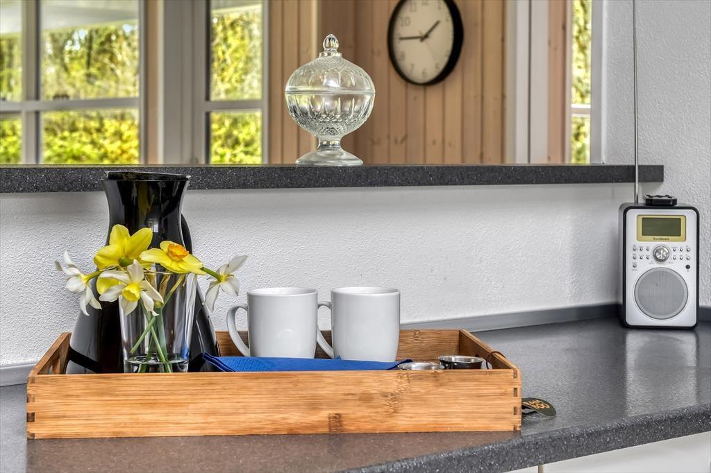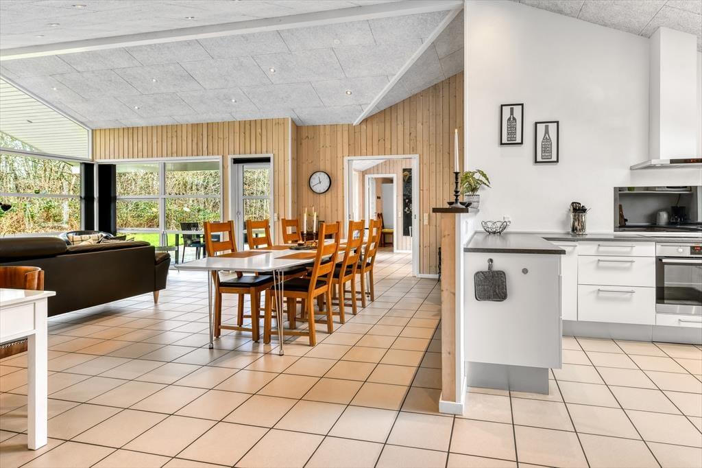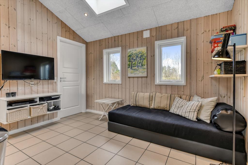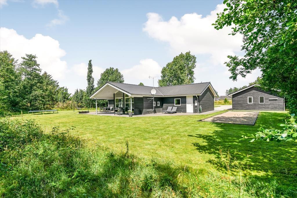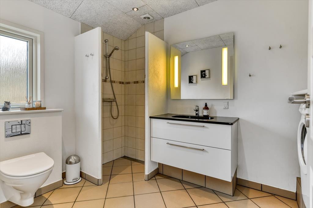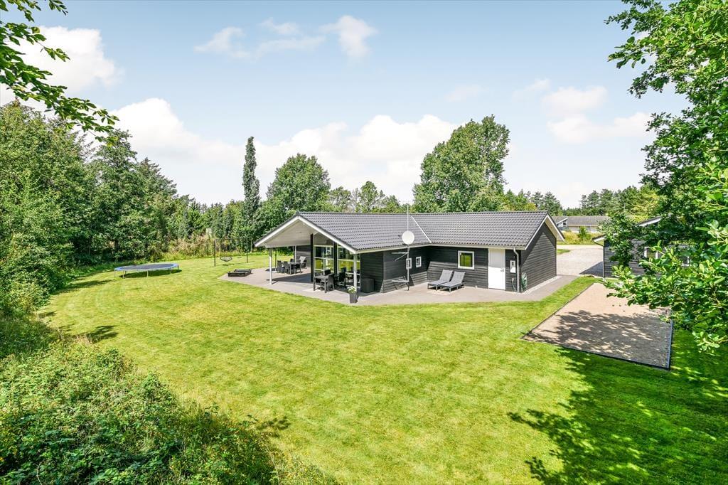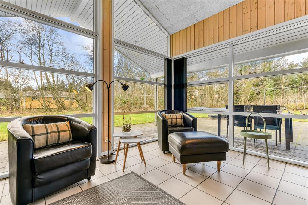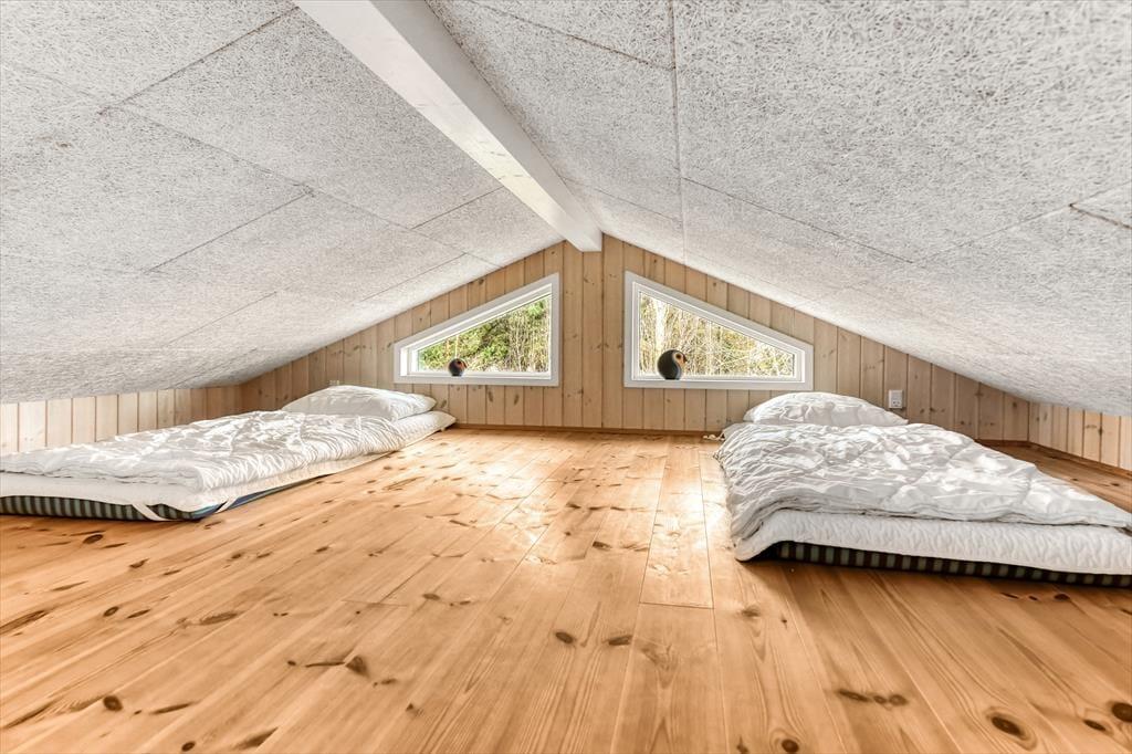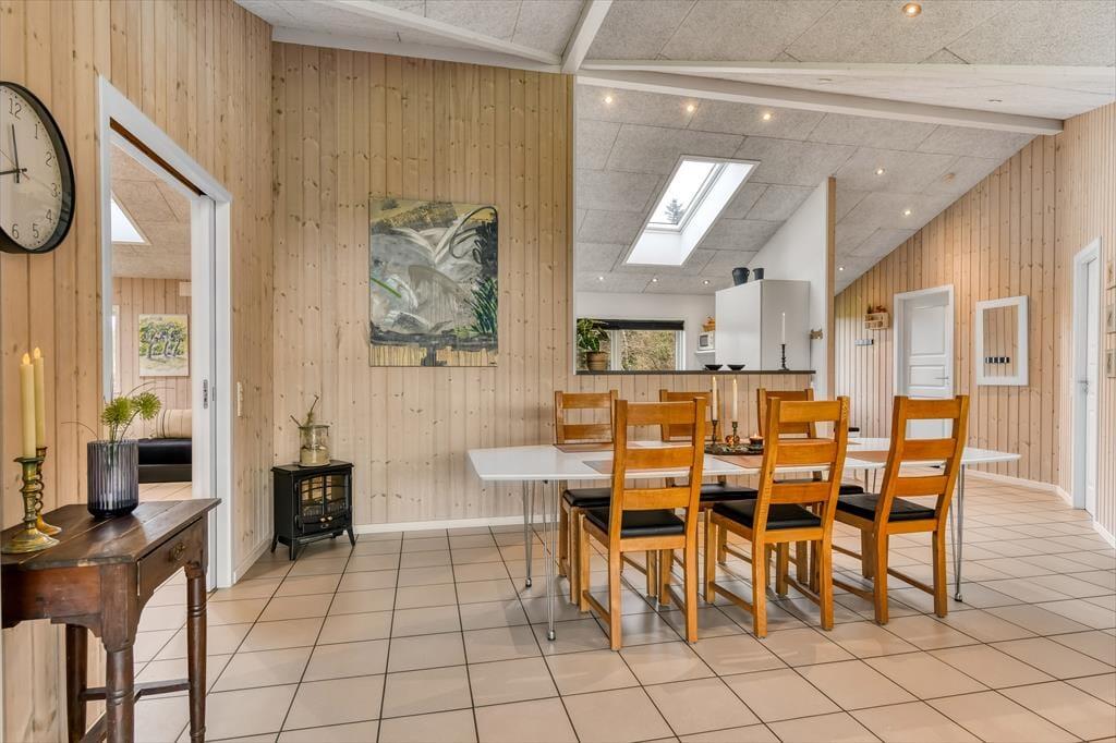 Med tre soveværelser, en god hems og to dejlige badeværelser kan sommerhuset nemt rumme seks voksne og to børn, og planløsningen passer med andre ord også glimrende til to familier. Alle husets senge er fra 2025. På det ene badeværelse er der både spabad og sauna til de dage, hvor du drømmer om at nyde ferielivet i helt tilbagelænet tempo. Efter sådan en wellness-stund kan du fortsætte driverlivet i stuens sofaafdeling, og hvis der skal være lidt mere gang i den, kan du udfordre de andre i for eksempel pool eller bordfodbold i aktivitetsrummet. Både indretning og de store vinduer er med til at give huset en lys og luftig atmosfære, og så er det for øvrigt værd at nævne, at huset er energivenligt og strømforbruget lavt takket være jordvarme.