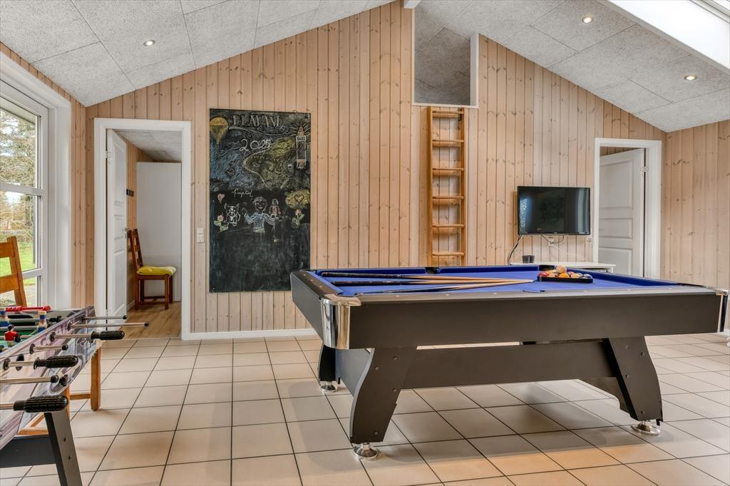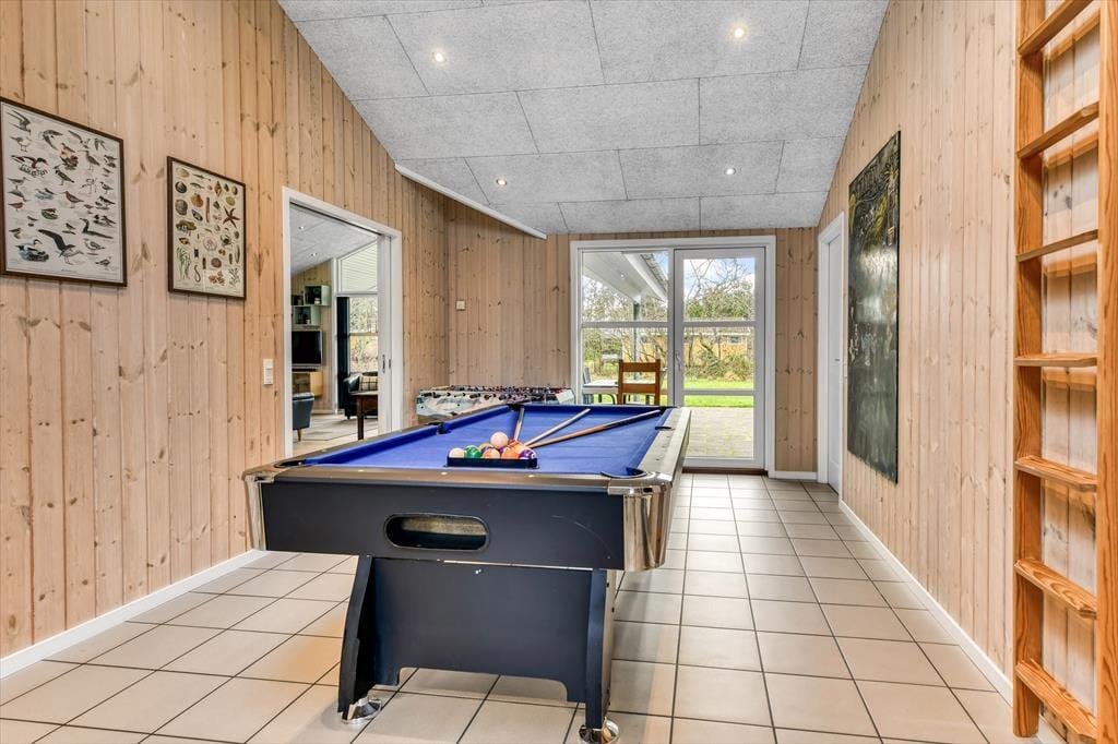 Hele familien kan se frem til at fylde ferien med både sjov, hygge og afslapning på Gammel Mælkevej 24 i Blåvand. Dette lækre sommerhus er nemlig udstyret med alskens skønne faciliteter – lige fra et poolbord i aktivitetsrummet og et spabad på det ene badeværelse til en petanquebane og en trampolin på naturgrunden. Selv familiens hund vil elske omgivelserne, for huset ligger i et roligt hjørne af Blåvand, meget tæt på Bordrup Klitplantage og den lokale hundeskov.
