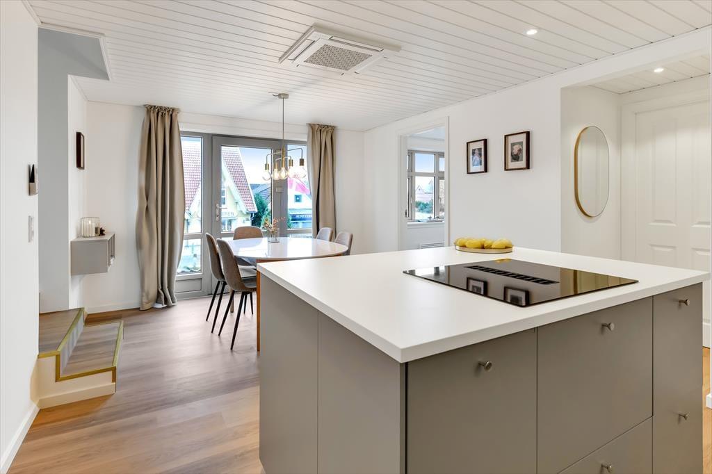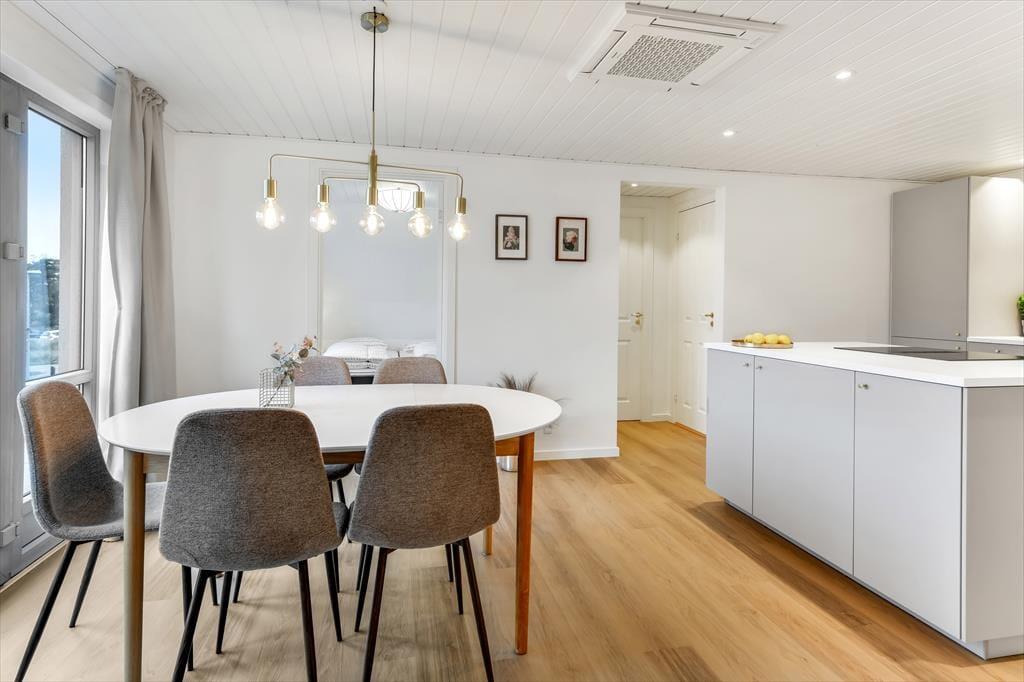 Lejlighed i Blåvand Strand og By, Vestjylland, med plads til 5 voksne og 1 husdyr. Der er en hyggelig indretning, og du finder desuden vaskemaskine, opvaskemaskine og tørretumbler i boligen.