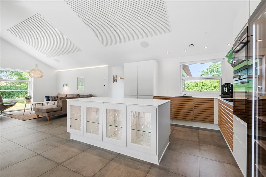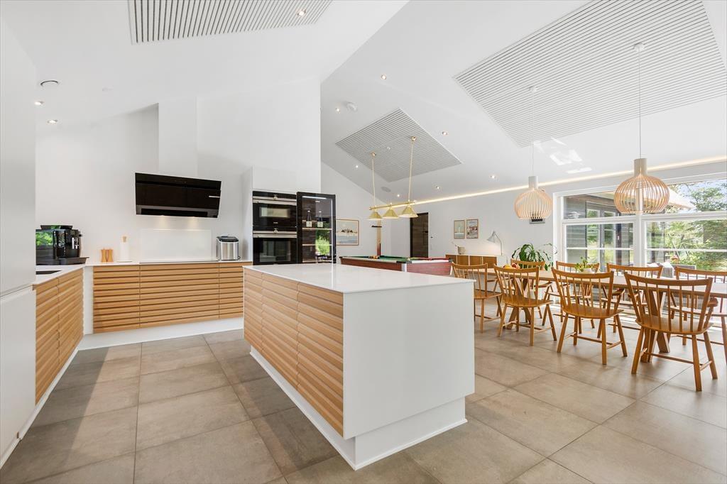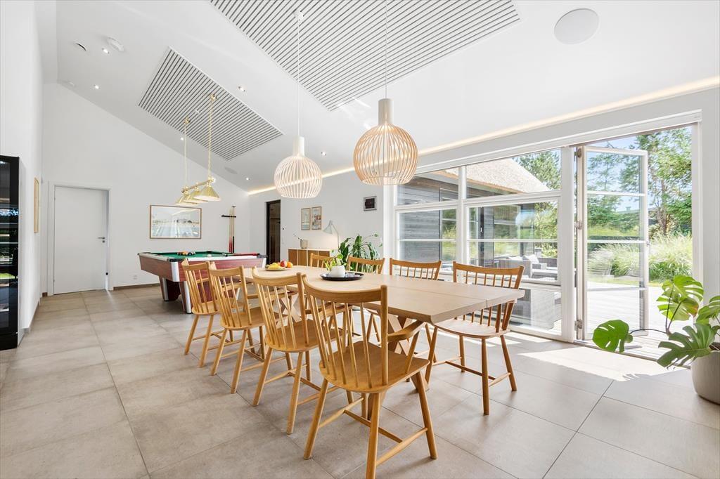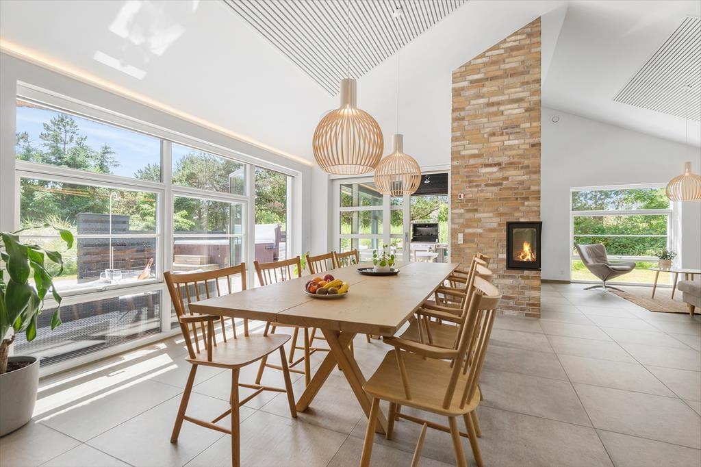 Dette moderne sommerhus byder dig velkommen med et væld af lækre faciliteter, der kan gøre enhver ferie uforglemmelig. I hjertet af huset finder du en dejlig stue med store vinduespartier, der lader sollyset strømme ind og skaber en lys og indbydende atmosfære. På kølige aftener kan du tænde op i brændeovnen og nyde varmen og hyggen sammen med dine nærmeste. For dem, der elsker wellness, er der både en stor, indbydende pool, hvor både børn og voksne kan boltre sig i timevis. Derudover har afdelingen også en sauna og en dampkabine, som inviterer til ultimativ afslapning. Har I lyst til at dyste lidt, er der et stort poolbord i stuen, som I kan muntre jer med. Og når dagen går på hæld, kan du nyde en god nats søvn i et af husets komfortable soveværelser.