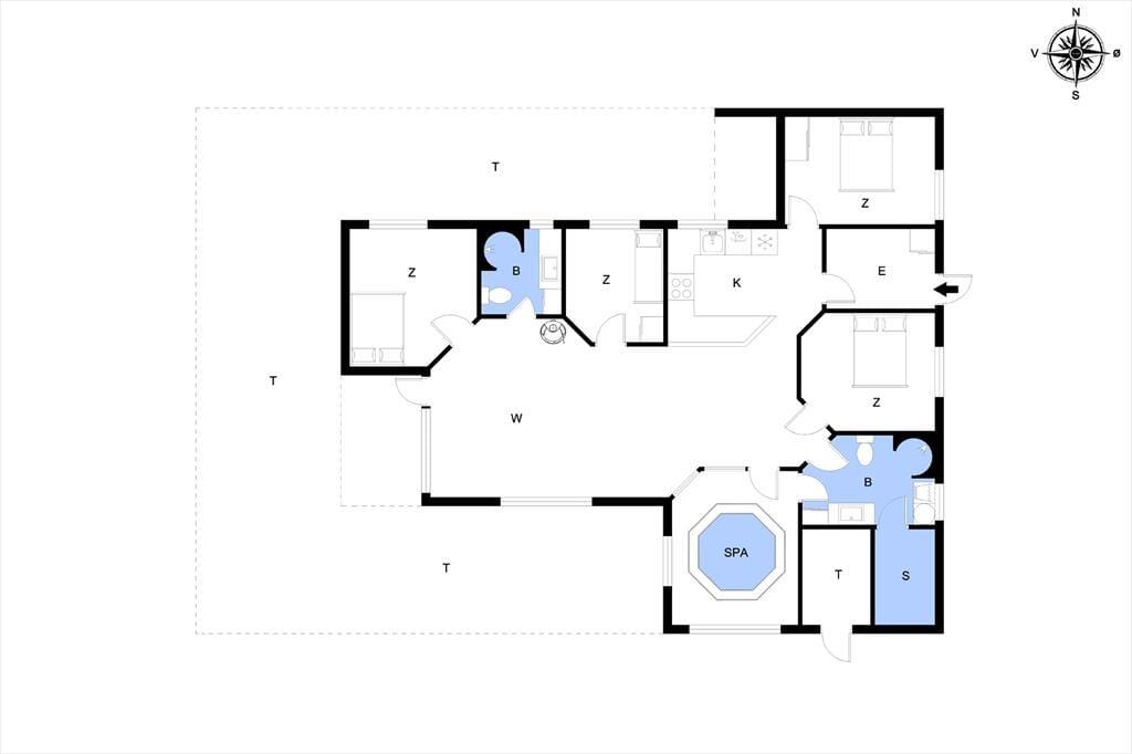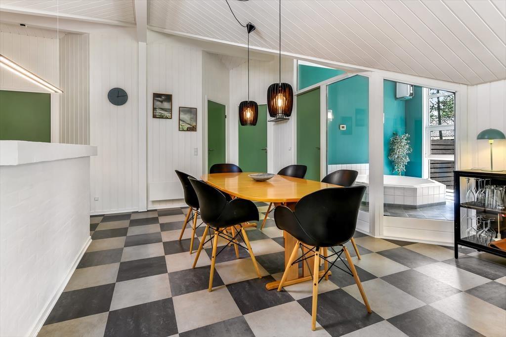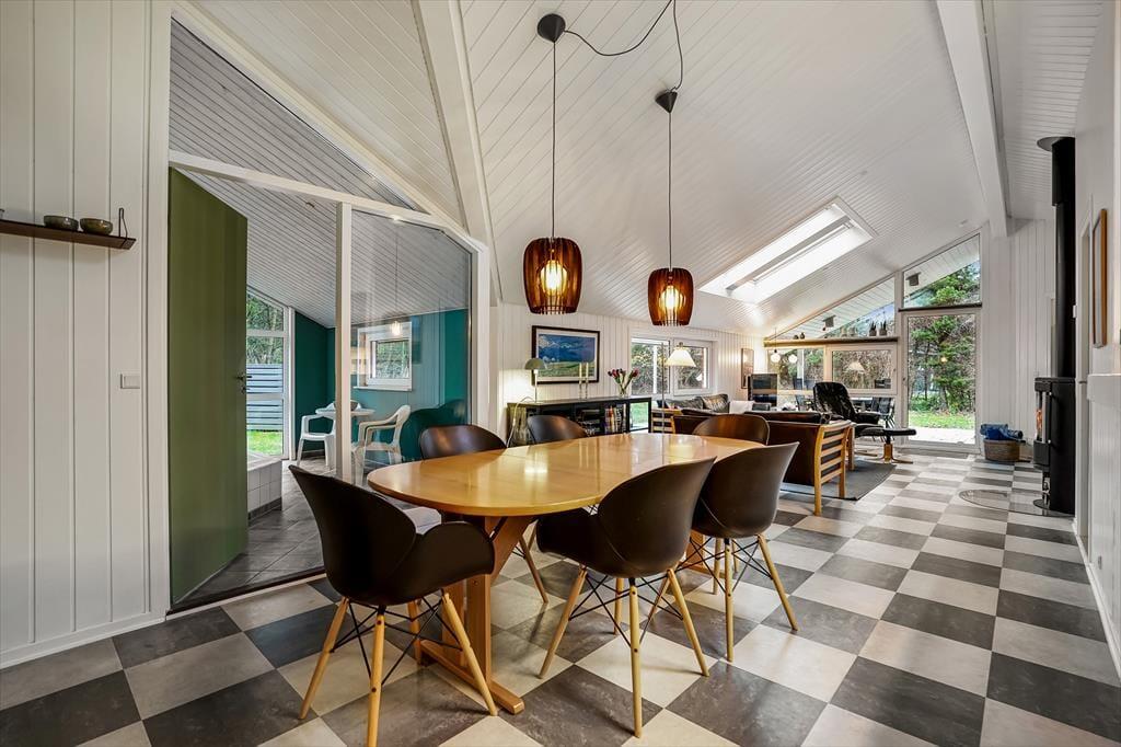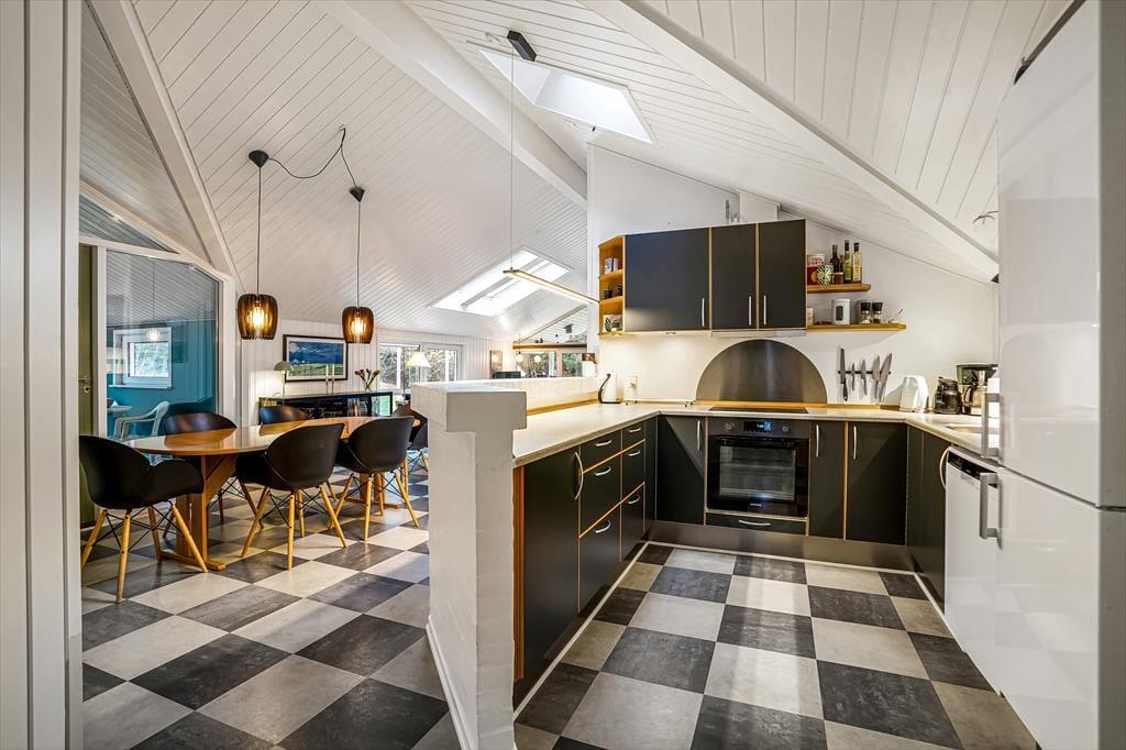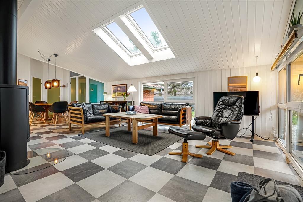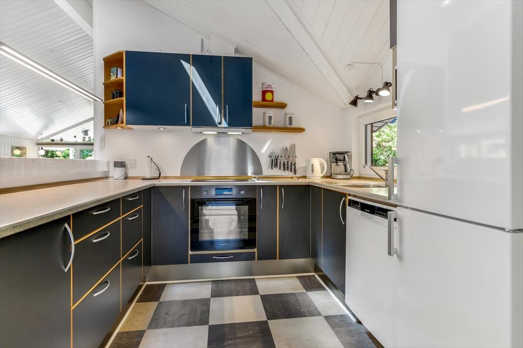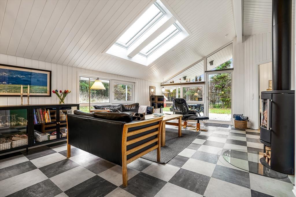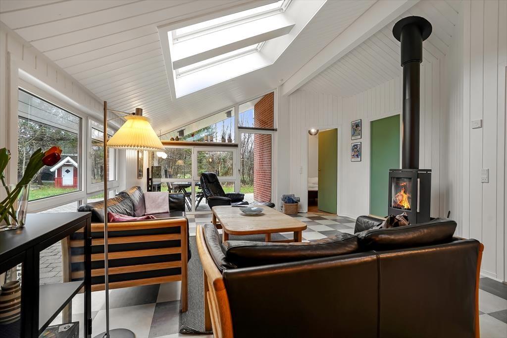 Sommerhuset byder dig velkommen med en lys og rummelig indretning, hvor moderne komfort og hyggelige detaljer går hånd i hånd. De store vinduespartier lader solens stråler strømme ind og skaber en indbydende atmosfære i stuen, hvor du kan tænde op i brændeovnen og nyde flammernes spil, når aftenen falder på. Køkkenet er veludstyret og ligger i åben forbindelse med stuen, så du kan lave mad og samtidig være en del af feriehyggen. Spabad og sauna med adgang til badeværelset, hvor du kan nyde wellnes med varme fra spa og saune efter en dag i den friske havluft. Huset har desuden tre dejlige soveværelser, hvor du kan sove trygt og godt efter en oplevelsesrig dag.