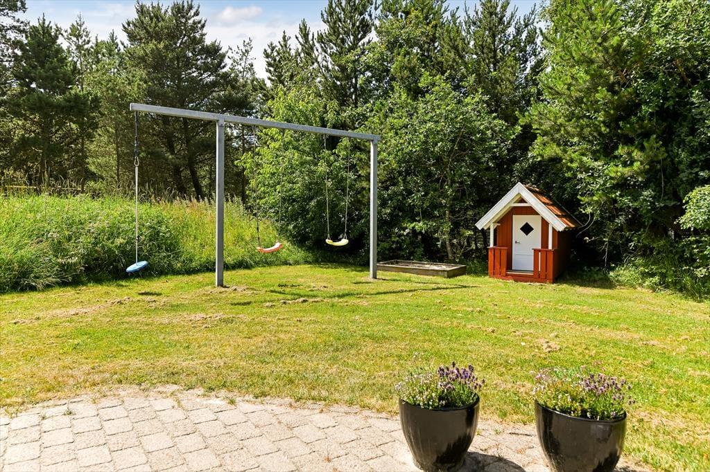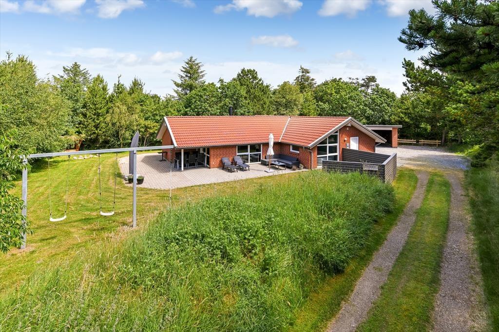 Sommerhuset ligger for enden af en lukket vej, hvilket sikrer dig en ugeneret ferie uden forstyrrelser. Den store terrasse indbyder til afslapning i havemøblerne, hvor du kan nyde solen og den friske luft. Der er rigeligt med plads til udendørs aktiviteter på grunden, som er omkranset af frodig beplantning. Tag en kop kaffe med ud i morgenstunden og lyt til fuglenes sang, eller saml familien til en hyggelig grillaften under åben himmel. Her kan du virkelig læne dig tilbage og nyde livet i rolige omgivelser.