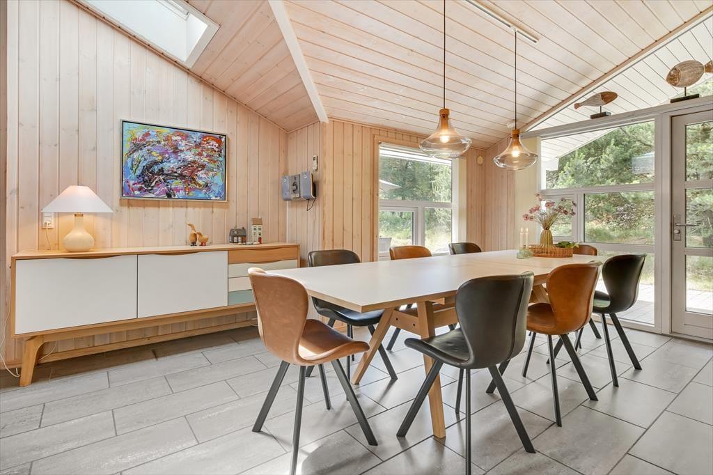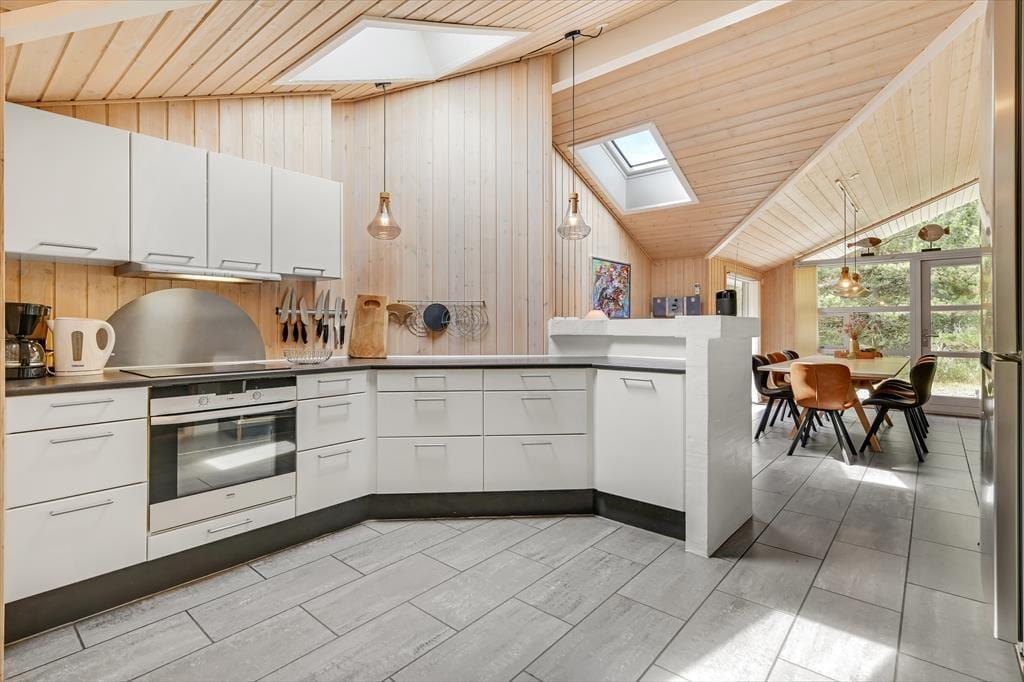Sommerhuset byder på en indbydende og hyggelig atmosfære, hvor du straks vil føle dig hjemme. Når du træder ind i huset, mødes du af en lys og rummelig stue med store vinduespartier, der giver et fantastisk lysindfald. Om aftenen kan du samle familien omkring brændeovnen og nyde varmen og hyggen. Køkkenet er moderne og godt udstyret, så du kan tilberede lækre måltider, som I kan nyde ved det store spisebord. Med fire rummelige soveværelser er der god plads til hele familien, og den lyse indretning skaber en rolig og behagelig atmosfære. Sommerhuset er ideelt til en afslappende ferie, hvor du kan lade op og nyde kvalitetstid med dine nærmeste.