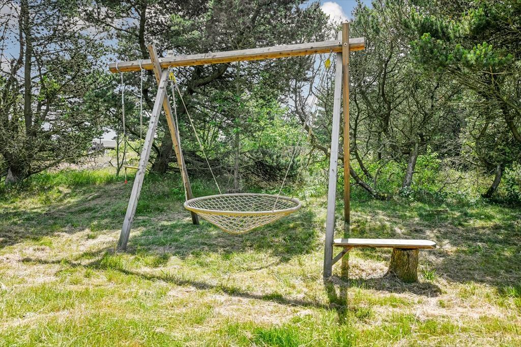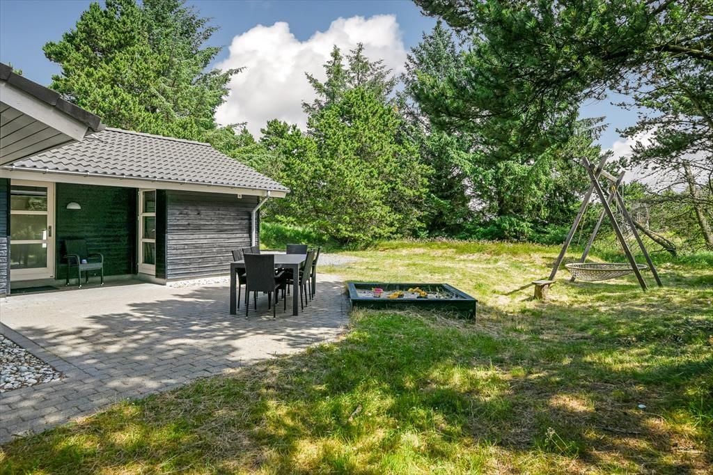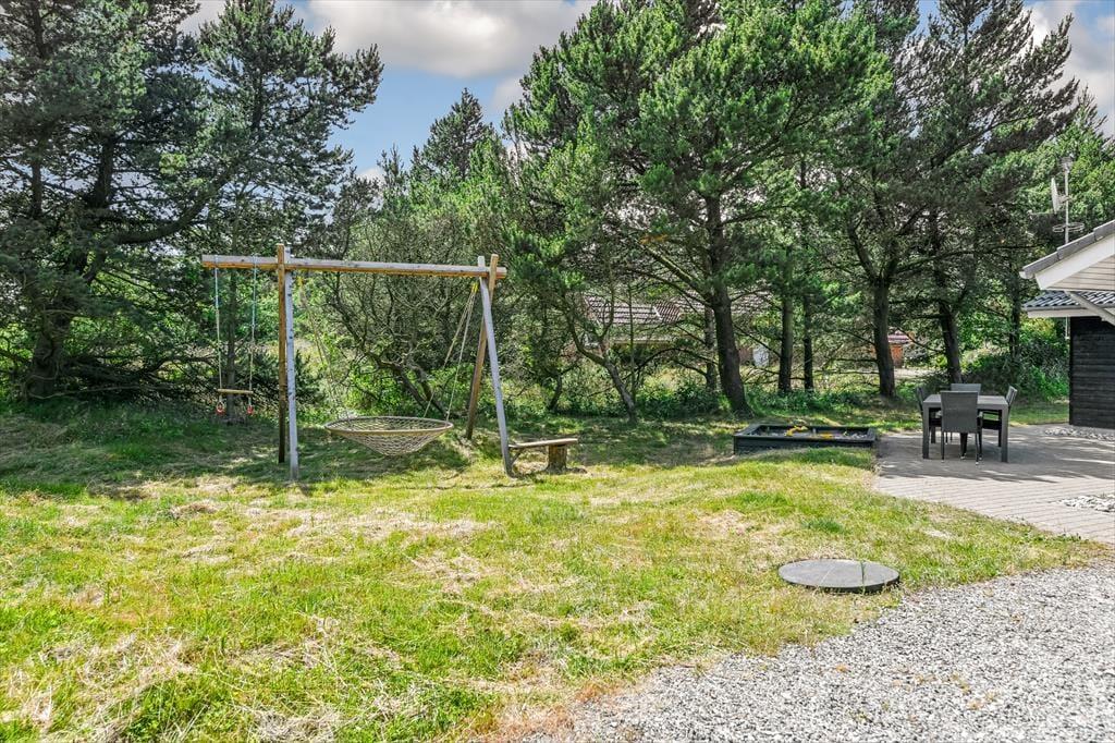 Sommerhusets store grund for enden af en blind vej sikrer fred og ro. Den skønne naturgrund er omkranset af grøn beplantning, hvilket skaber en privat oase, hvor du kan nyde solrige dage og lyse sommeraftener. Der er flere gode terrasser omkring huset, så du altid kan finde en hyggelig krog at slappe af i. Om morgenen kan du nyde din kaffe på den østvendte terrasse, mens du lytter til fuglenes kvidren, og om aftenen kan du grille og spise middag på den sydvestvendte terrasse. Børnene vil elske at lege i haven, og der er rig mulighed for boldspil og andre udendørs aktiviteter. Her kan hele familien virkelig nyde livet udenfor og skabe skønne ferieminder.