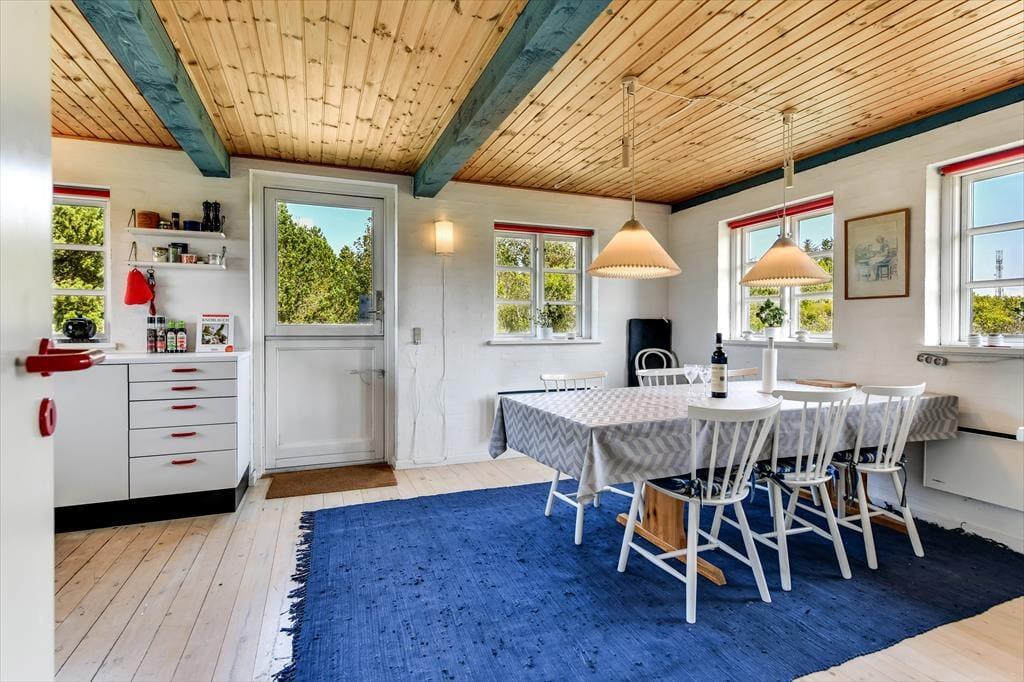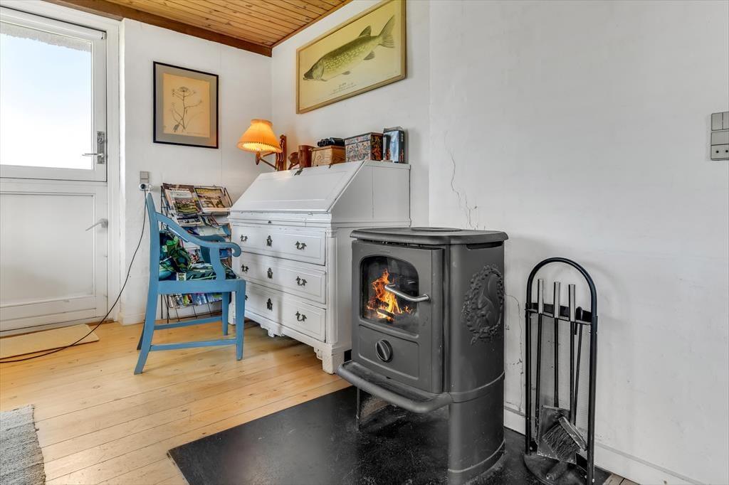 Indenfor byder sommerhuset på en venlig, autentisk atmosfære, der er perfekt til en afslappende ferie. De åbne rum inviterer til hygge, hvor du kan lade op efter en dag ude. Uanset om du slapper af i stuen eller tilbereder måltider i det funktionelle køkken, kan du nyde din ferie. Når du søger ro, kan du lade op ved brændeovnen, som skaber en hyggelig atmosfære på kølige aftener. Soverummene sikrer, at du får en god nats søvn, så du er klar til at udforske området næste dag.