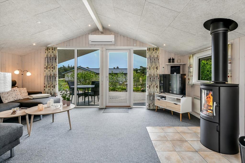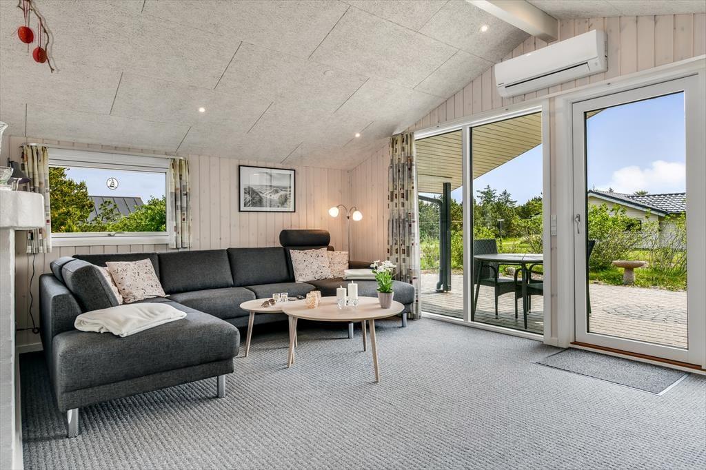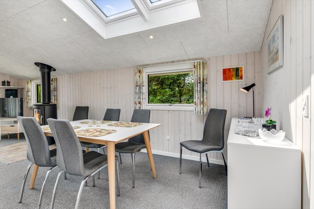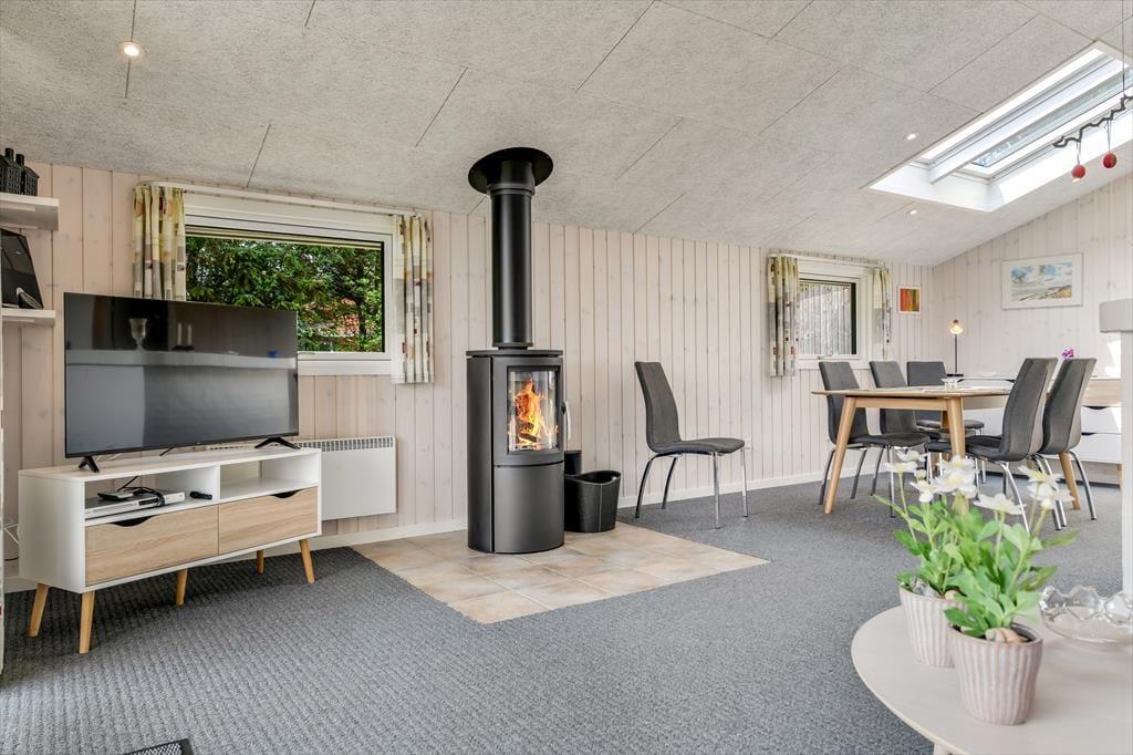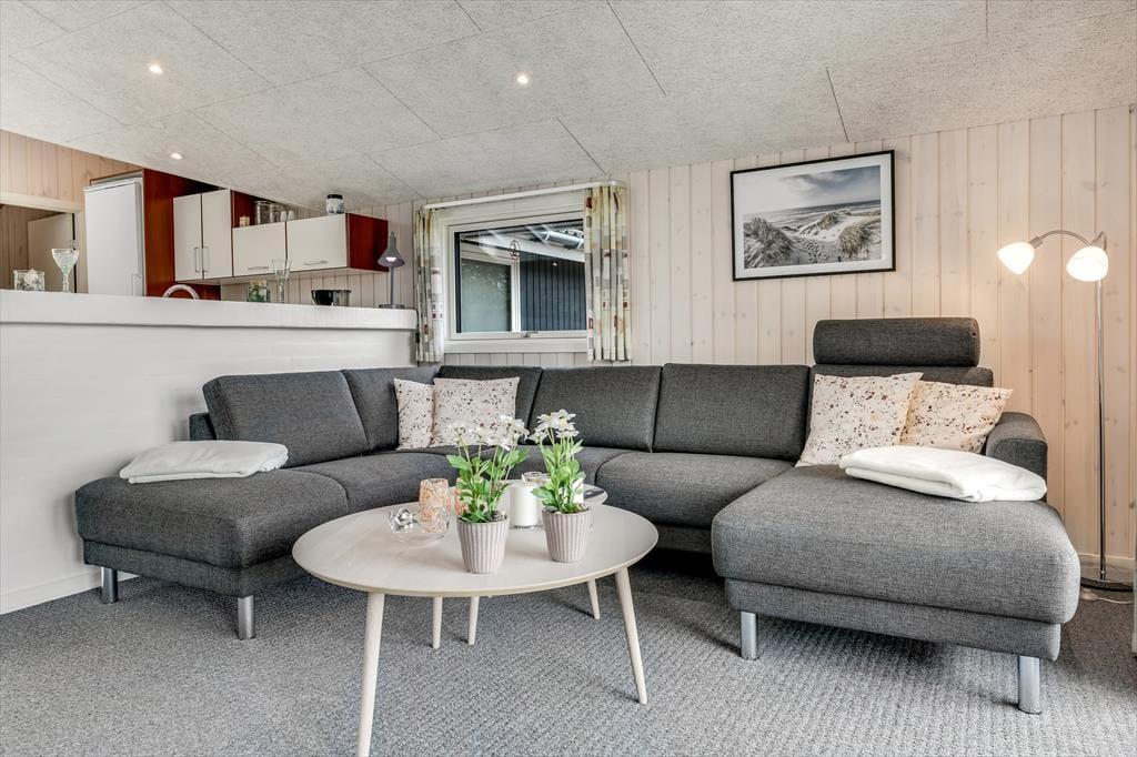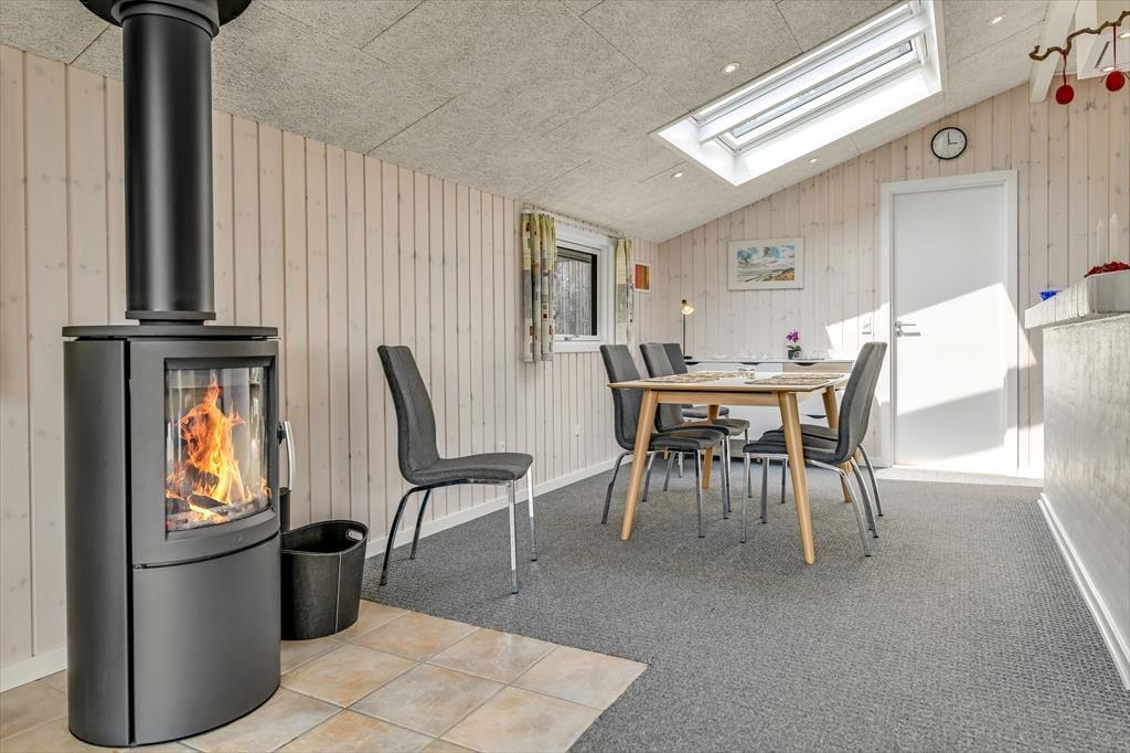 Der er en dejlig, afslappet atmosfære i sommerhuset på Grønnevænget 3 – præcis sådan, som man drømmer om, når man pakker bilen og kører mod vest. Indretningen emmer af feriestemning, og både stuen og spiseområdet indbyder til lange, rolige timer med brætspil, en god bog eller hyggelige samtaler over middagsbordet. Når det er koldt udenfor, er det skønt at tænde op i brændeovnen og mærke varmen brede sig i rummet, mens flammerne knitrer. En af husets helt store attraktioner er den fantastiske udestue, som hurtigt bliver et yndlingssted at opholde sig – uanset om solen bager, eller regnen trommer let mod taget, kan du nyde udsigten til haven i fred og ro. Badeværelset er indrettet med sauna, så du kan forkæle dig selv med lidt ekstra wellness midt i ferien, og når mørket falder på, er det rart at kunne trække sig tilbage til et af sommerhusets gode soveværelser.