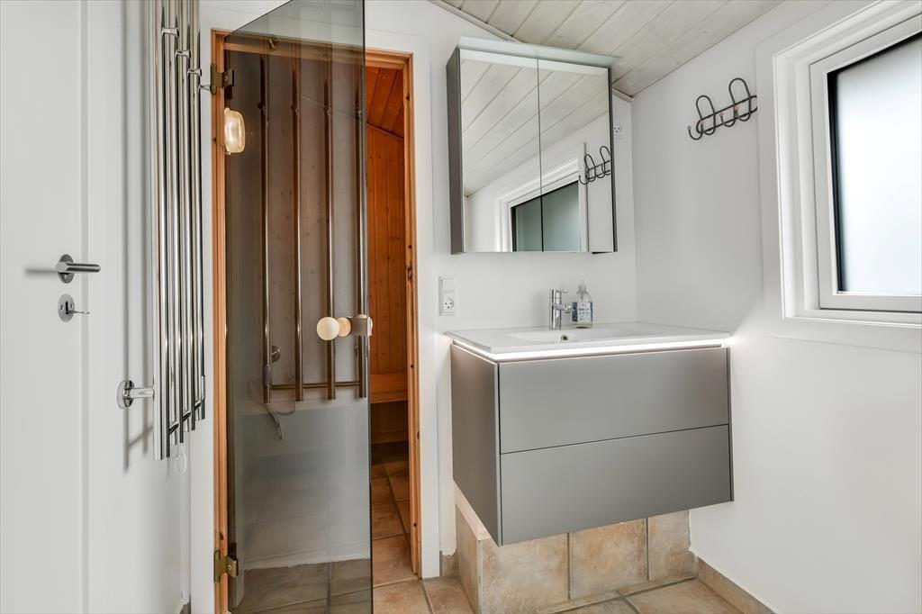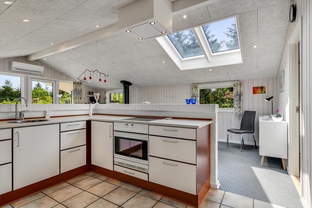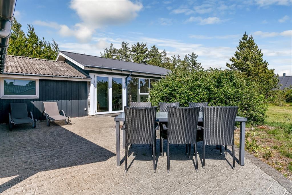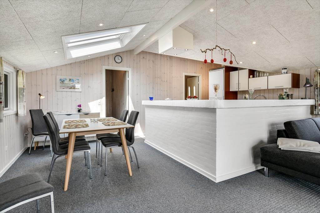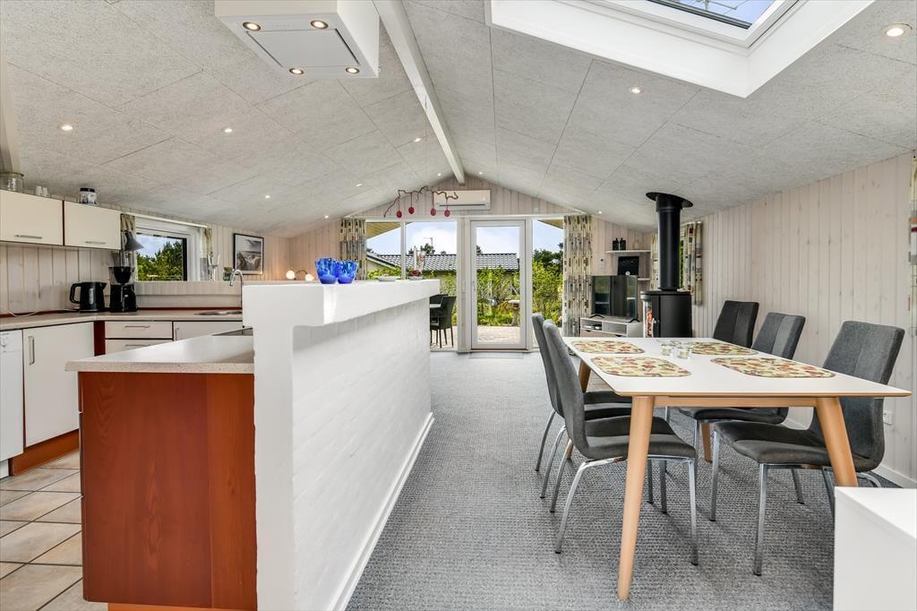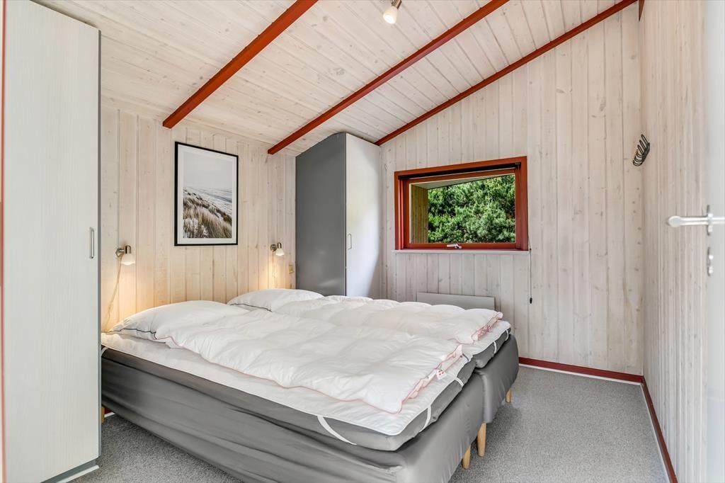 Der er en dejlig, afslappet atmosfære i sommerhuset på Grønnevænget 3 – præcis sådan, som man drømmer om, når man pakker bilen og kører mod vest. Indretningen emmer af feriestemning, og både stuen og spiseområdet indbyder til lange, rolige timer med brætspil, en god bog eller hyggelige samtaler over middagsbordet. Når det er koldt udenfor, er det skønt at tænde op i brændeovnen og mærke varmen brede sig i rummet, mens flammerne knitrer. En af husets helt store attraktioner er den fantastiske udestue, som hurtigt bliver et yndlingssted at opholde sig – uanset om solen bager, eller regnen trommer let mod taget, kan du nyde udsigten til haven i fred og ro. Badeværelset er indrettet med sauna, så du kan forkæle dig selv med lidt ekstra wellness midt i ferien, og når mørket falder på, er det rart at kunne trække sig tilbage til et af sommerhusets gode soveværelser.