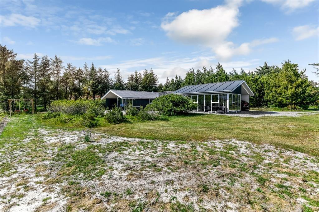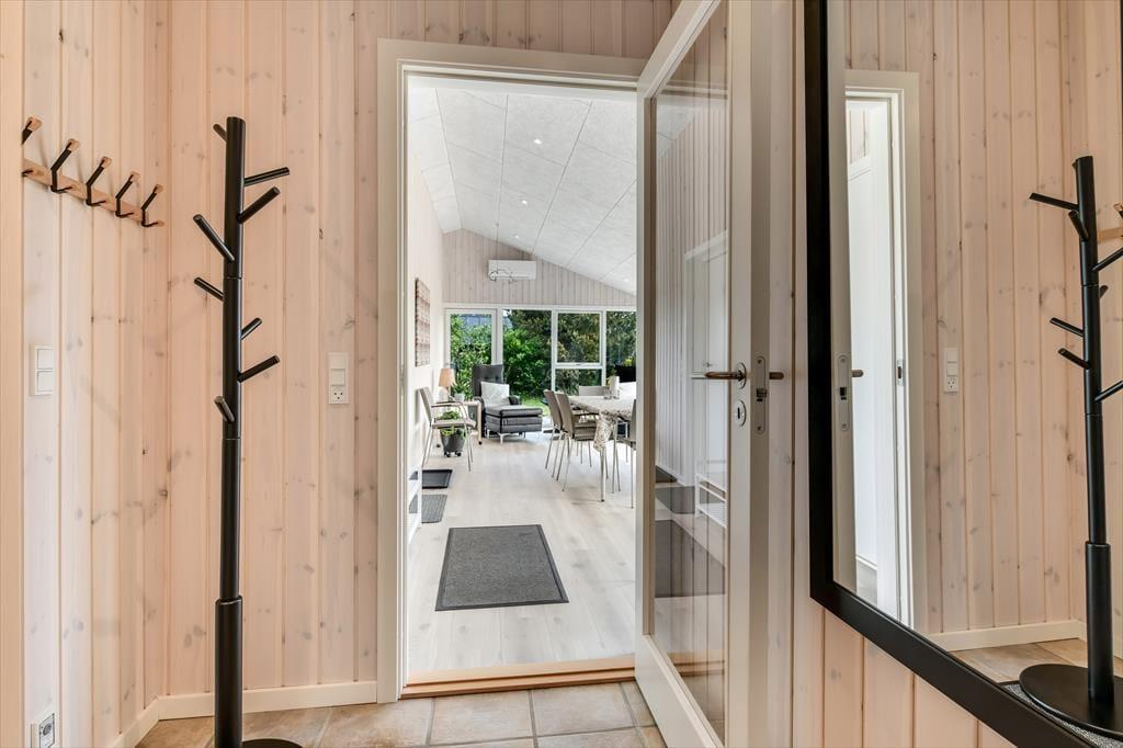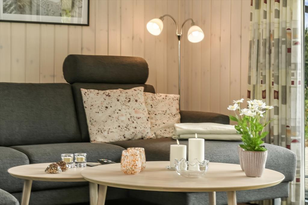 Haven omkring sommerhuset er en grøn oase med masser af privatliv og gode muligheder for at nyde livet i det fri. Den sydvendte terrasse er perfekt til solrige eftermiddage med kolde drikke og grillmad, og der er god plads til, at børnene kan lege på plænen, mens du læner dig tilbage i havestolen med en kop kaffe. Den smukke udestue skaber en glidende overgang mellem inde- og udeliv, så du kan nyde følelsen af at være i ét med naturen, selv når vejret ikke arter sig fra sin mest sommerlige side. Fra morgen til aften er haven og terrassen et ideelt sted at finde ro og lade batterierne op – og når solen går ned, er det oplagt at tænde stearinlys i udestuen og lade dagens sidste lys danne en fredfyldt ramme om aftenens samtaler.