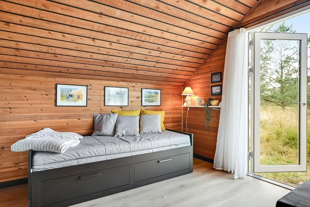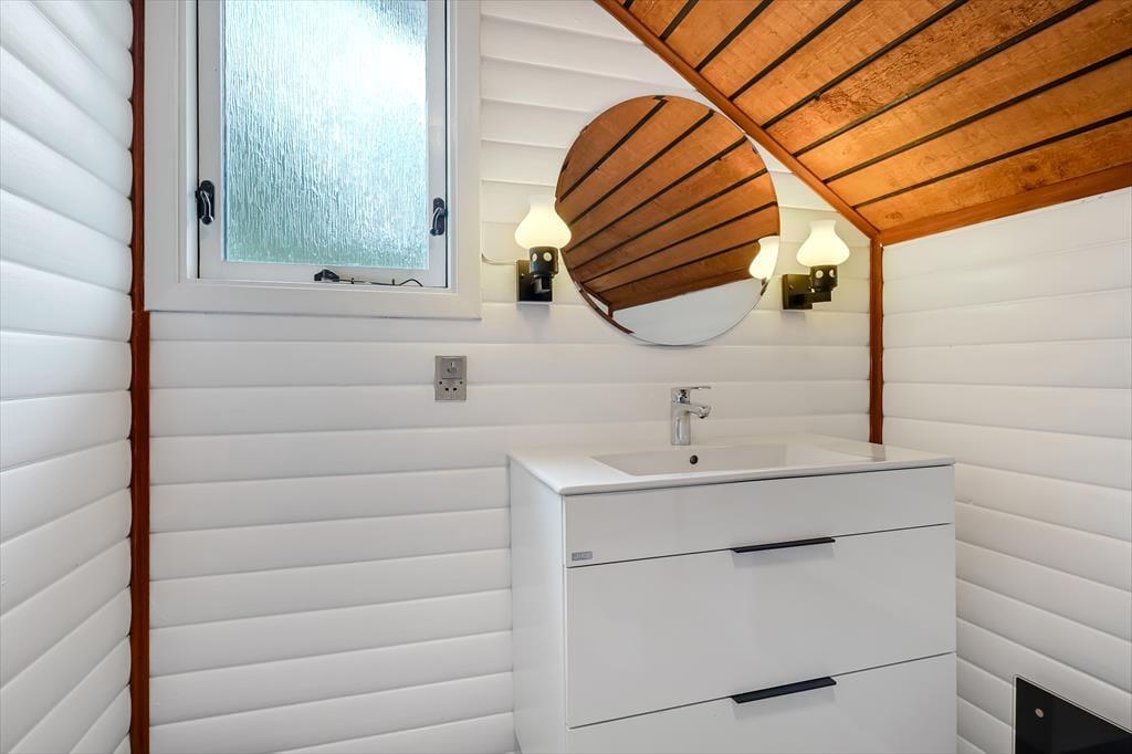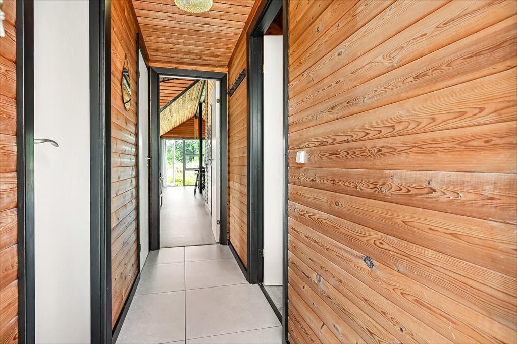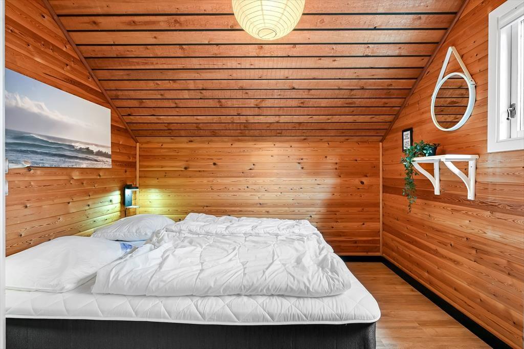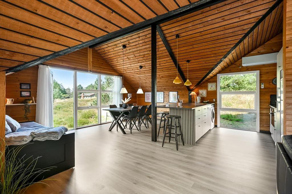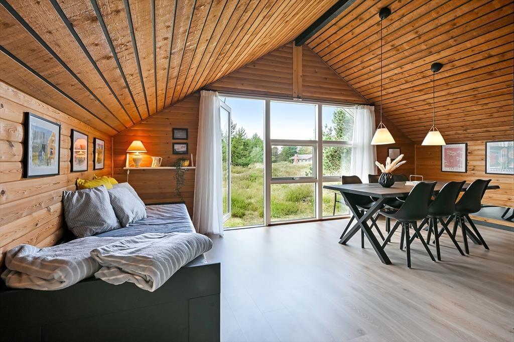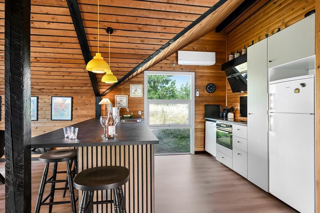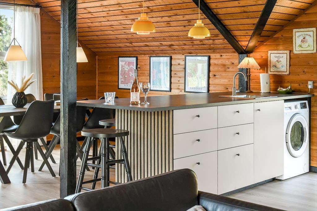 Sommerhuset er et ældre, men moderniseret hus, som kombinerer nostalgi og nutidens komfort på fineste vis. Indenfor mødes du af en varm og indbydende stemning, hvor træbeklædte vægge og lofter giver en klassisk sommerhuscharme, mens moderniseringen gør boligen både lys og nem at opholde sig i. Stuen er husets naturlige samlingspunkt – her kan du slå dig ned i sofaen med en god bog, mens ilden knitrer i brændeovnen, og vinduerne inviterer naturens farver og lys indenfor. Måltiderne tilberedes nemt i det åbne køkken, hvor du har god plads og kan være en del af snakken, mens der røres i gryderne. Når dagen går på hæld, kan du finde ro i soveværelserne, som indbyder til afslapning og lange, uforstyrrede nætter. Her er plads til at finde ferieformen – hvad end du søger hygge, samvær eller ro og fordybelse.