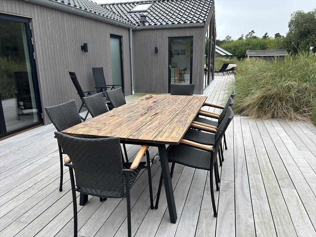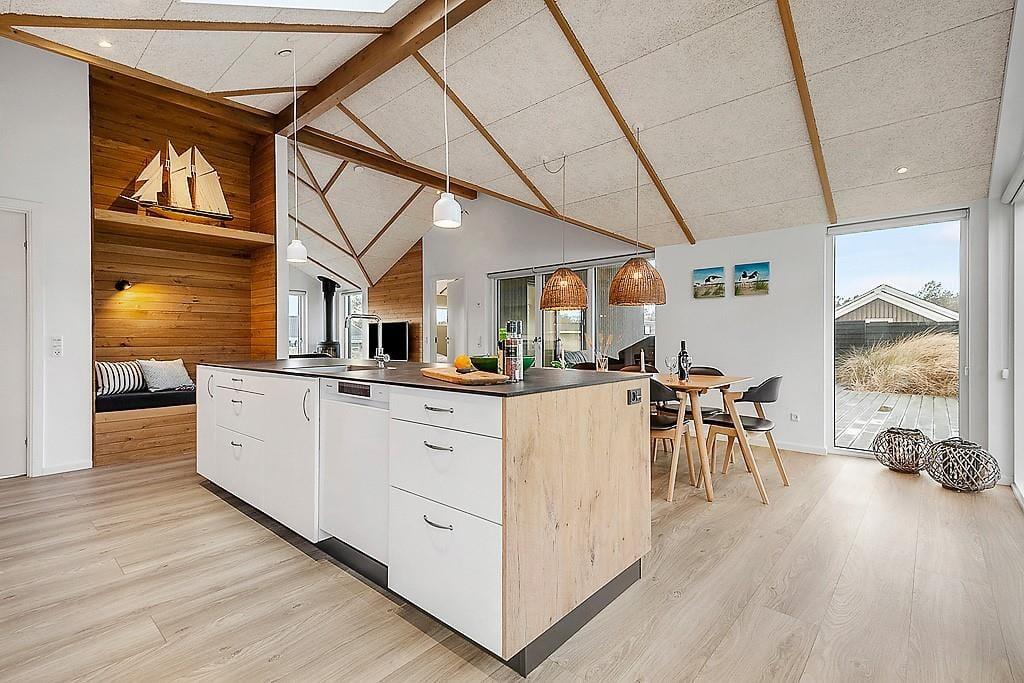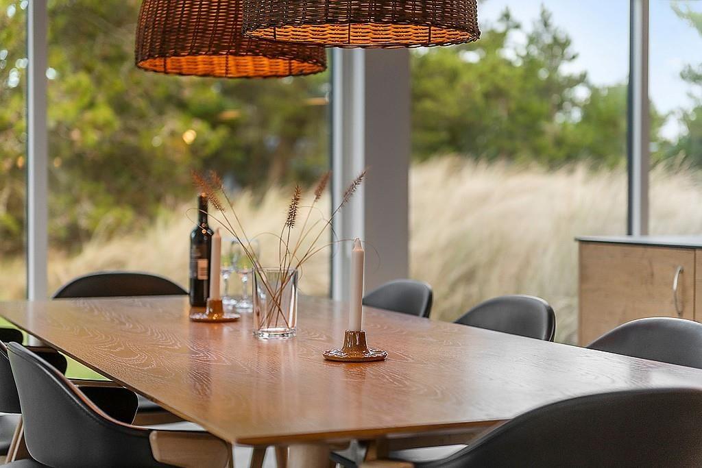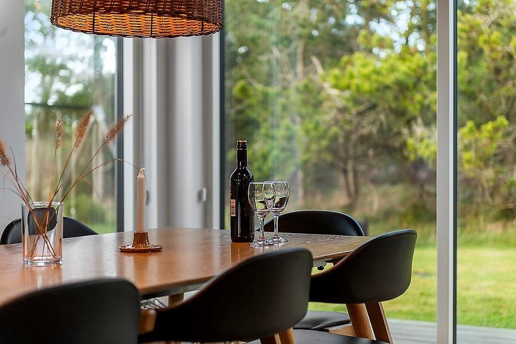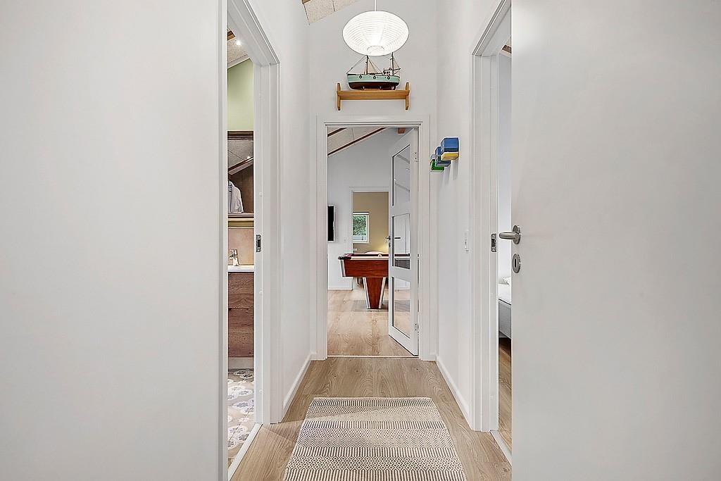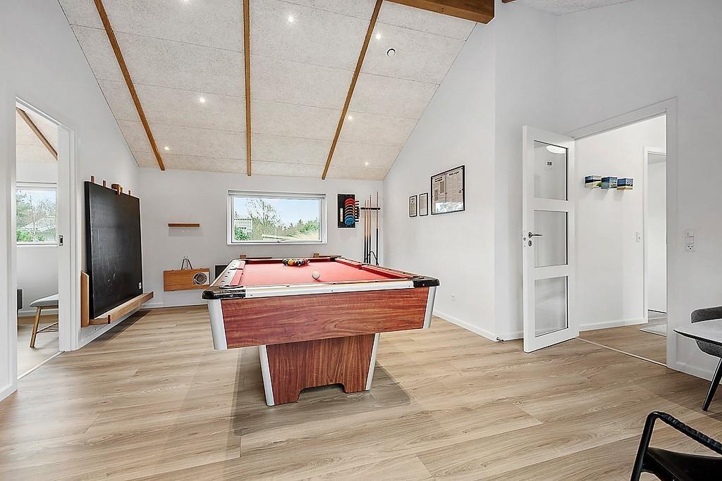 Indenfor mødes du af et sommerhus, hvor kvalitet, komfort og gennemtænkt indretning sætter rammen for ferielivet. De lyse materialer, de rolige farver og den rummelige indretning skaber en varm og behagelig atmosfære, hvor du hurtigt føler dig hjemme. Der er både brændeovn og en varmepumpe til at gøre huset lunt og hyggeligt. Her kan du starte dagen stille med duften af friskbrygget kaffe, mens morgensolen finder vej ind gennem vinduerne – eller samle familien til lange måltider, grin og gode samtaler rundt om spisebordet. De fire soveværelser gør, at der er plads til op til 8 personer og det er tydeligt, at værelserne er indrettet med fokus på ro og hvile, så du kan vågne udhvilet og klar til nye ferieoplevelser. Med to badeværelser er der god plads til alle, og hele huset udstråler den særlige ro, som gør det let at finde feriestemningen allerede fra første dag. Har du lyst til at udfordre konkurrencegenet, er der rig mulighed i aktivitetsrummet, hvor du finder både poolbord, bordtennis og shuffleboard.