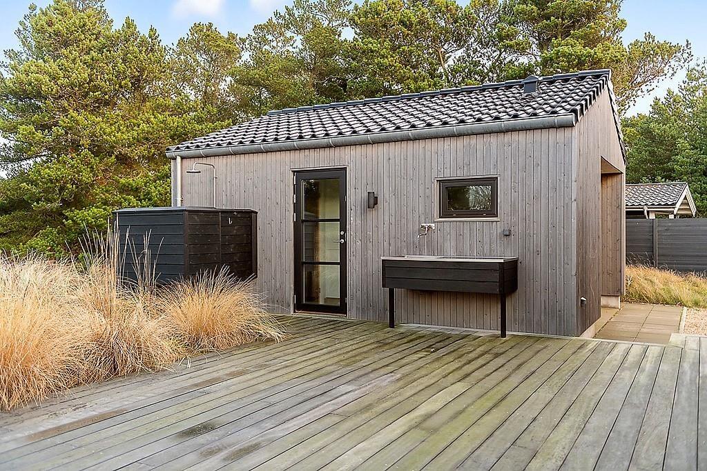 På Hedetoftvej 67 bliver udelivet en helt naturlig del af ferien. Den store naturgrund indbyder til både leg, fordybelse og stille stunder, hvor du kan lytte til vinden i bevoksningen og fuglenes kvidren. Terrassen er et skønt samlingspunkt – her kan du tænde grillen, lave mad i udekøkkenet og nyde måltider under åben himmel, mens aftensolen langsomt daler. Vil du forkæle dig selv lidt ekstra, kan du tage en tur i saunaen, hvor store vinduespartier giver udsigt til naturen, så afslapningen får en ekstra dimension. Efterfølgende kan du træde direkte ud under udebruseren og lade det friske vand skylle dagens indtryk af sig eller sætte dig og nyde en dejlig stund i udespaen. Her leves ferien i et tempo, hvor skuldrene sænkes, og tiden føles lidt mere generøs.