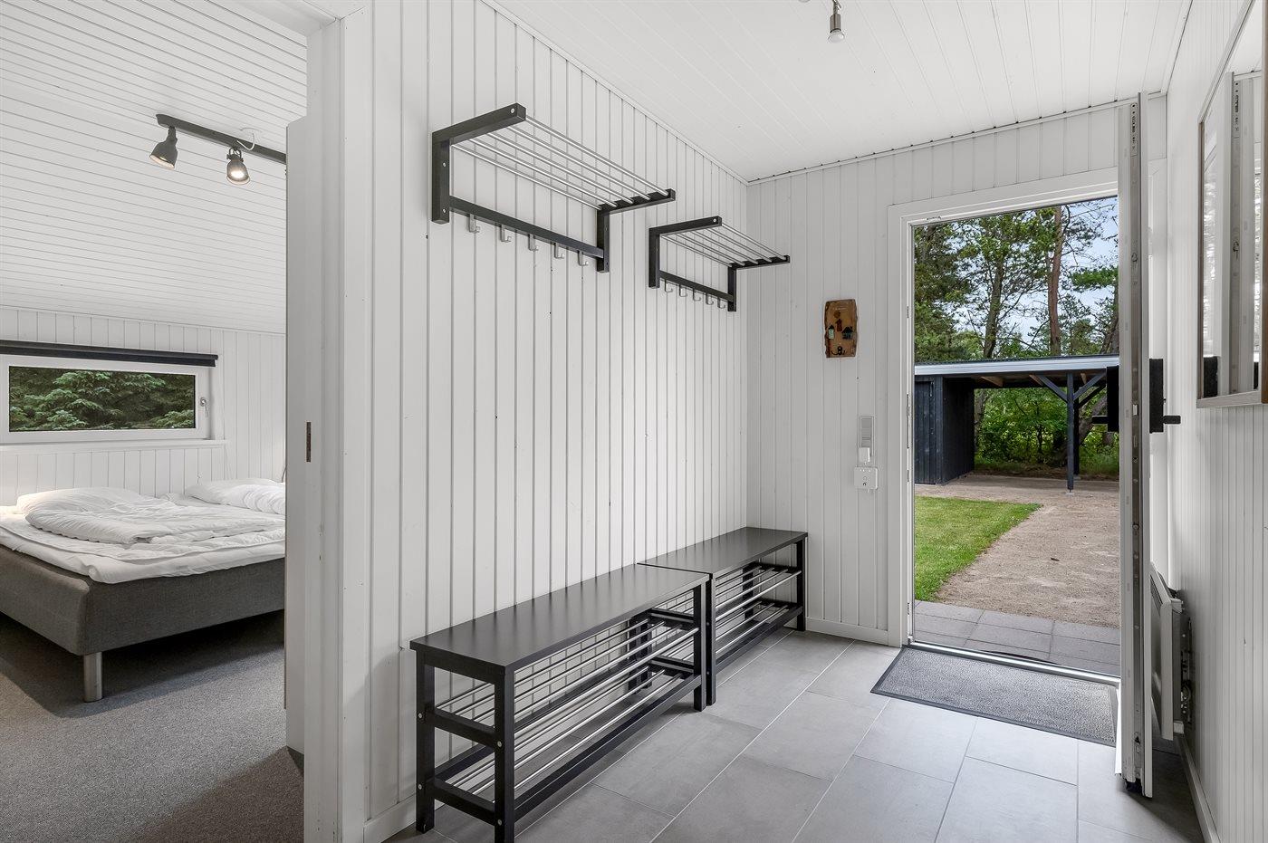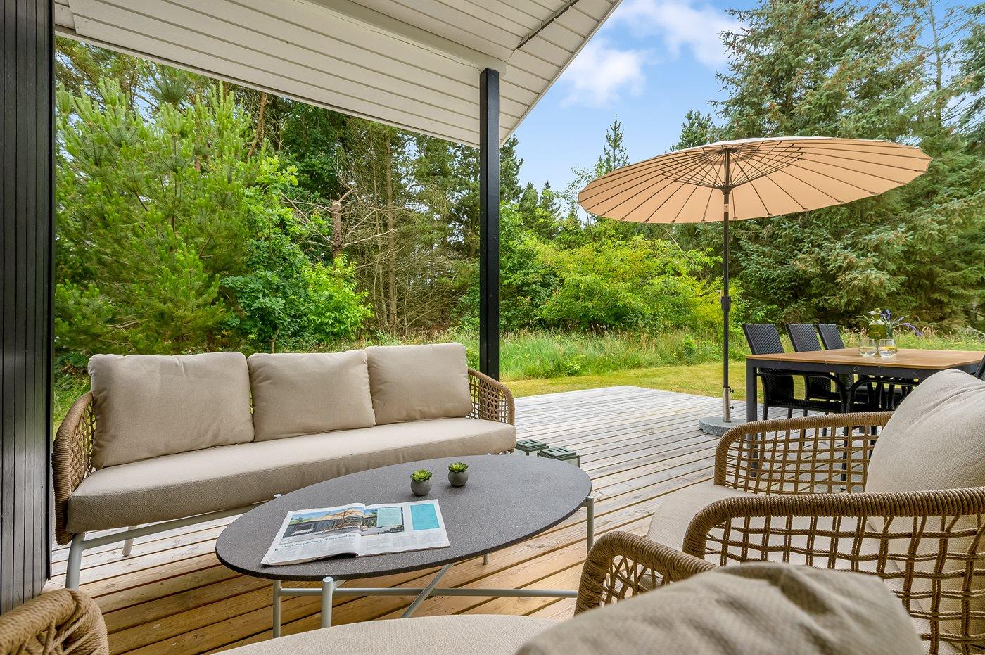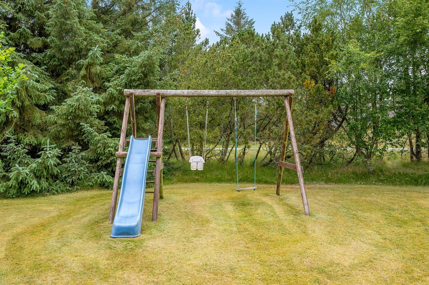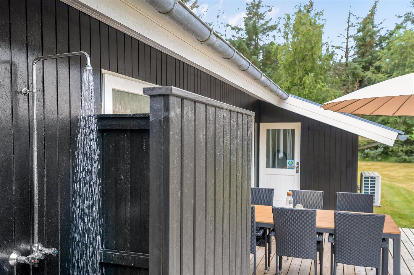 Ferieboligen er beliggende på en 2900 m² stor naturgrund. Der er 2500 m til havet. Nærmeste forretning er beliggende i en afstand af 2000 m. Til ferieboligen hører 45 m² terrasseareal. Desuden er der 8 m² overdækket terrasse. Ligeledes er der adgang til udestue. Der er redskabsrum. Gynge. Sandkasse. Trampolin. Bålsted. Grill til rådighed. Der er carport til rådighed.