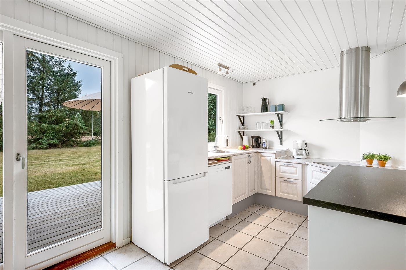 Køkkenet er udstyret med 1 køleskab. Der er 4 induktionskogeplader, varmluftovn, mikrobølgeovn samt opvaskemaskine.