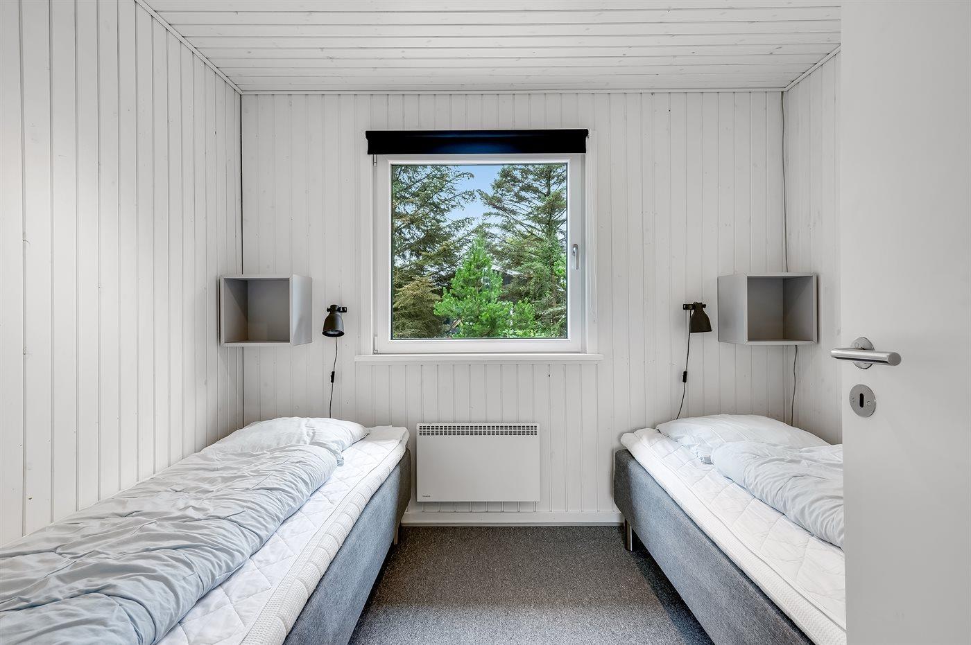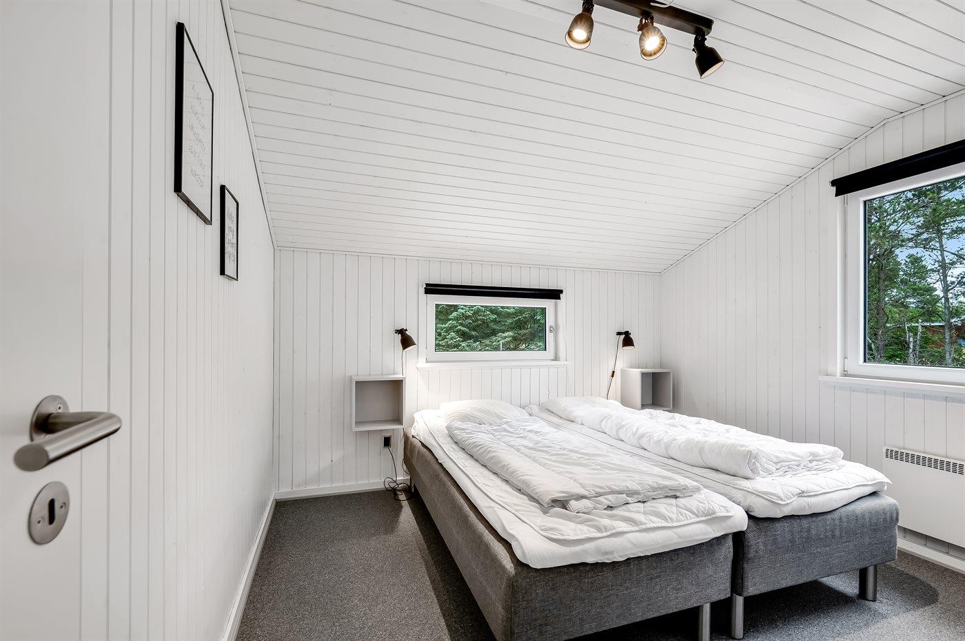 Der er i alt 3 soveværelser. Sovepladserne fordeler sig på: 4 sovepladser i dobbeltsenge. 2 sovepladser i enkeltsenge. Derudover er der 1 stk. barneseng.