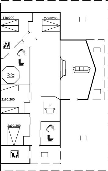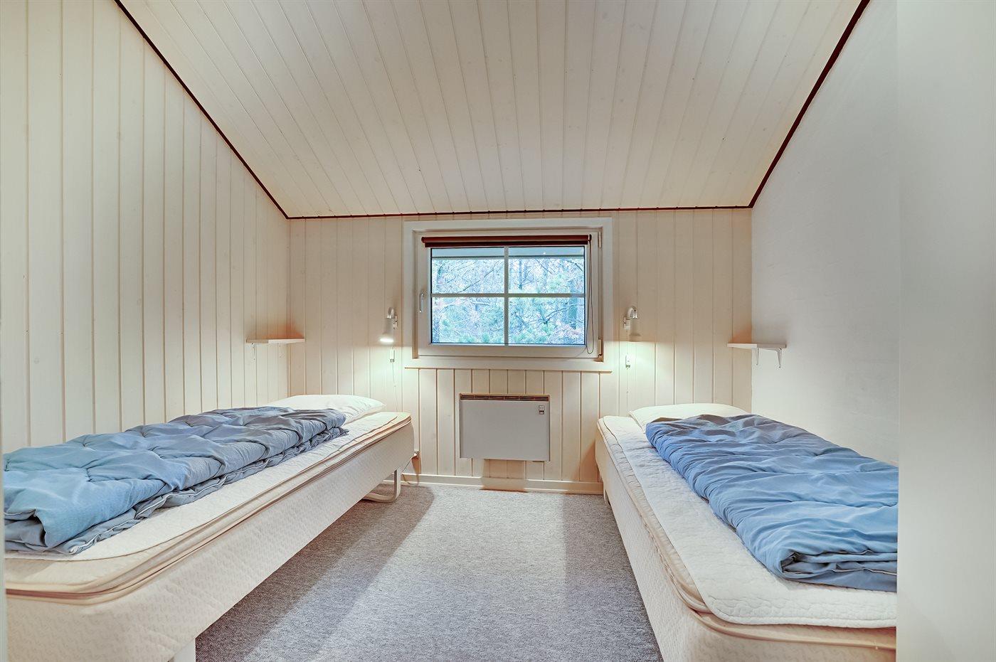Der er i alt 4 soveværelser. Sovepladserne fordeler sig på: 6 sovepladser i dobbeltsenge. 2 sovepladser i enkeltsenge. Derudover er der 1 stk. barneseng.