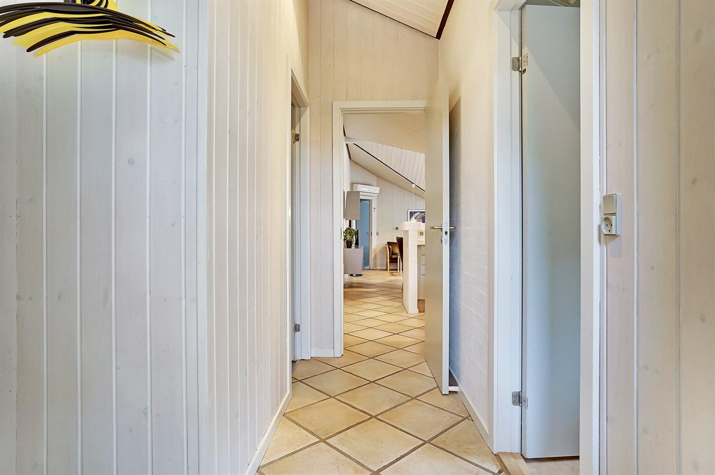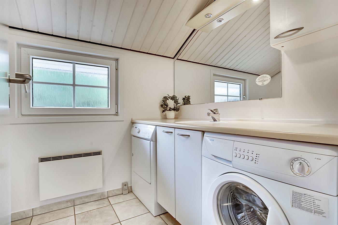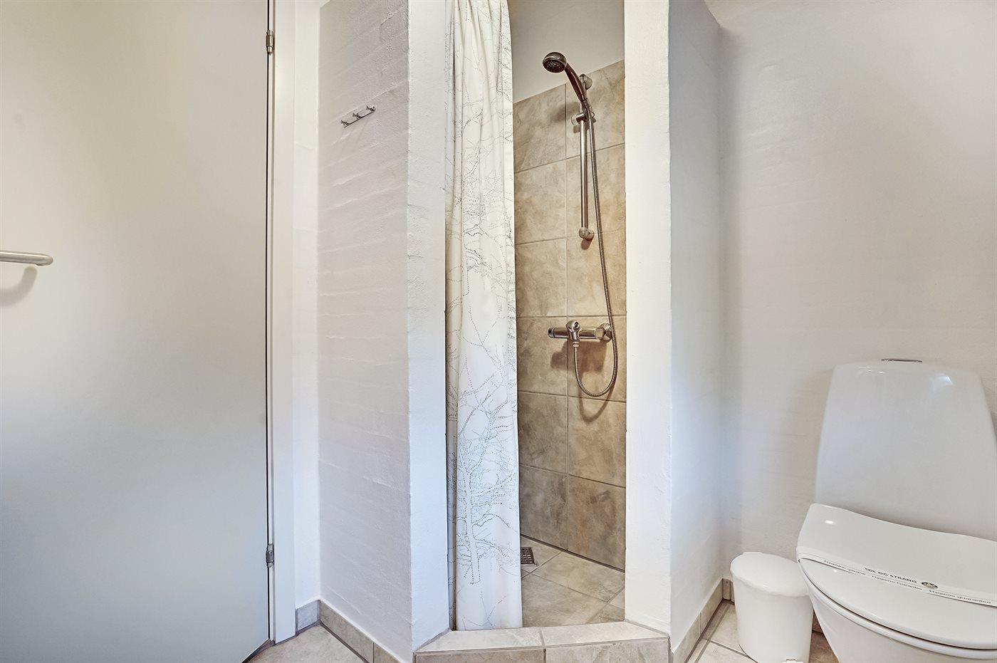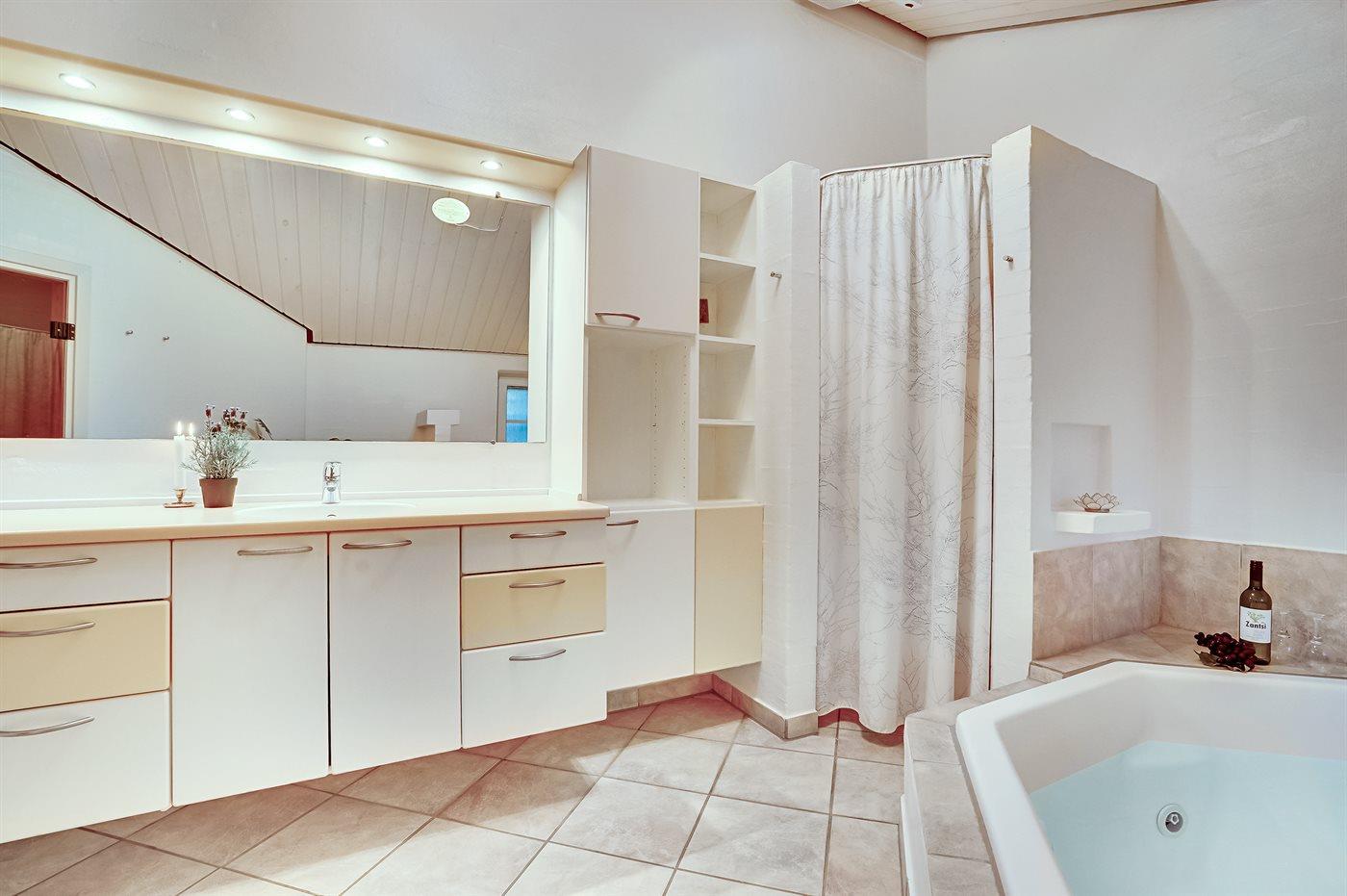 Der er 2 badeværelser med bruseniche og 2 toiletter. Der er gulvvarme på 2 badeværelser. I saunaen er der mulighed for afslapning.