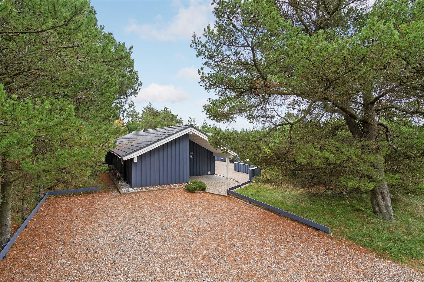 Dejligt sommerhus i Blåvand tæt på stranden med spa, sauna og stor terrasse på en ugenert naturgrund.