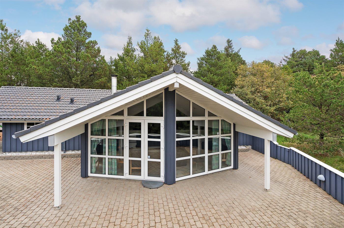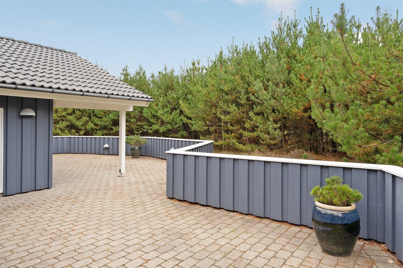 Ferieboligen er beliggende på en 1500 m² stor naturgrund. Der er 600 m til havet. Nærmeste forretning er beliggende i en afstand af 600 m. Til ferieboligen hører 100 m² terrasseareal. Desuden er der 15 m² overdækket terrasse. Der er redskabsrum. Gynge. Sandkasse. Parkering ved ferieboligen.
