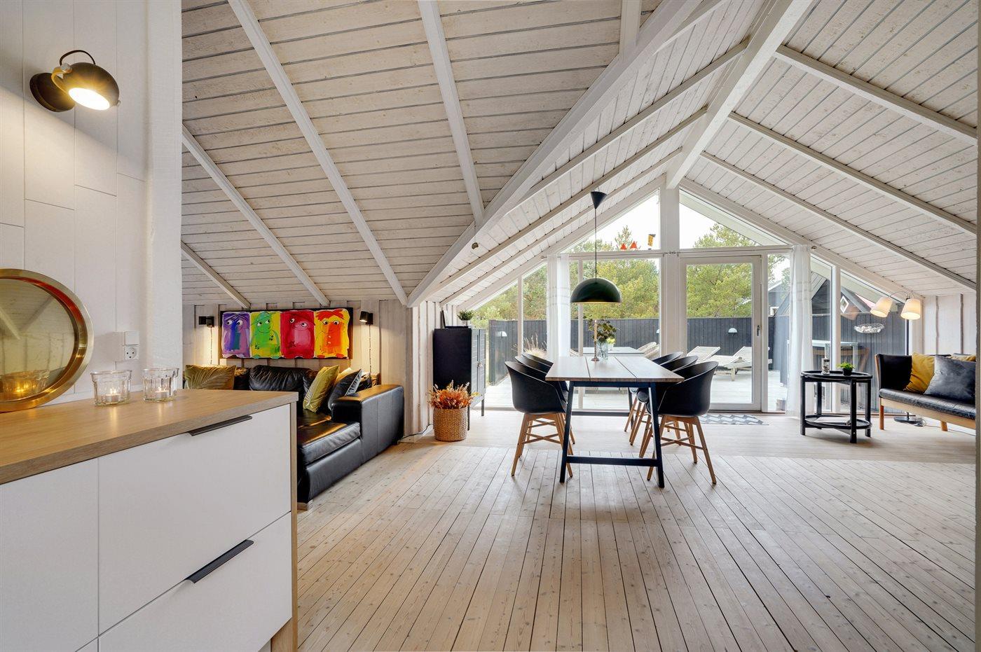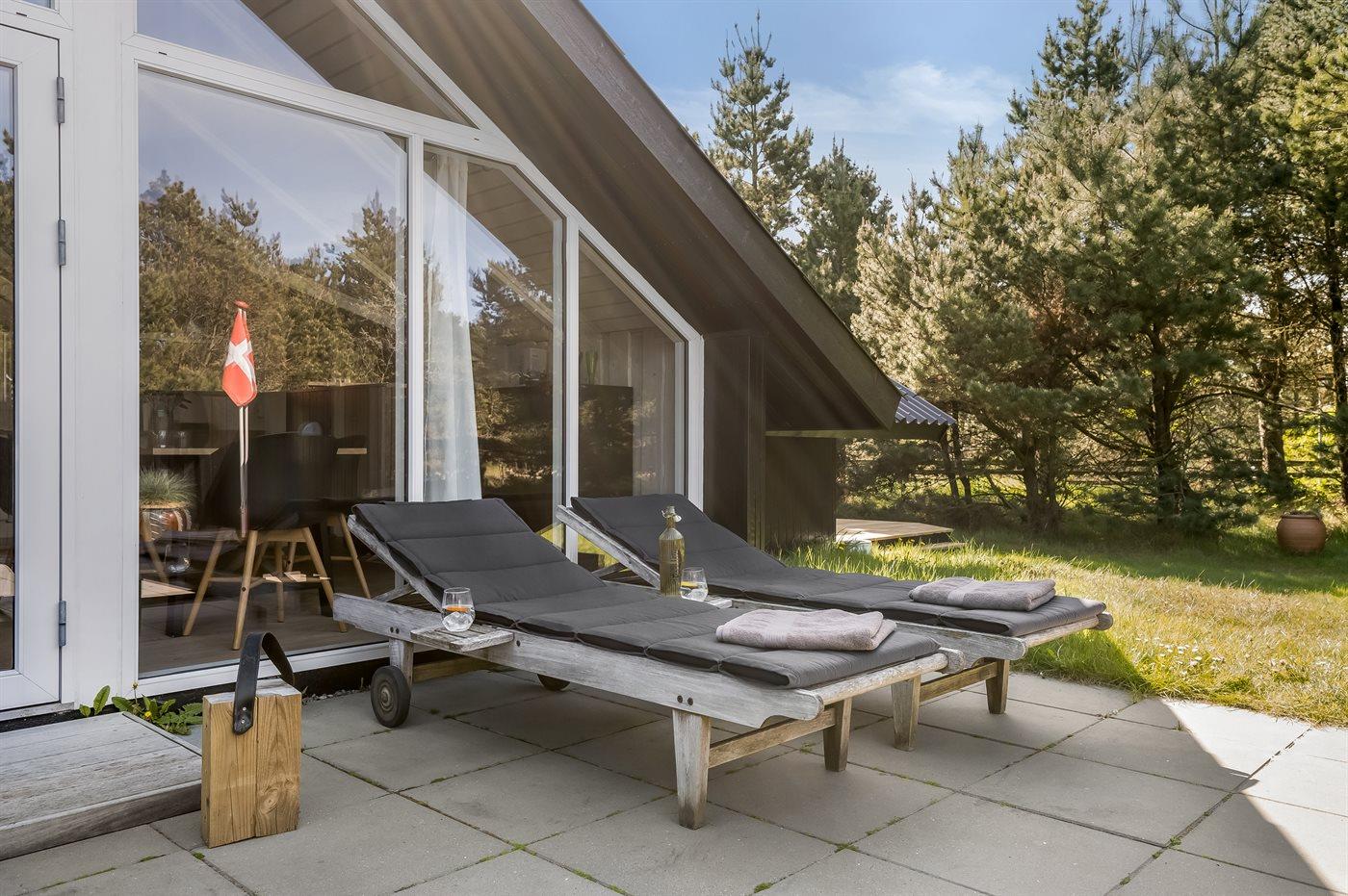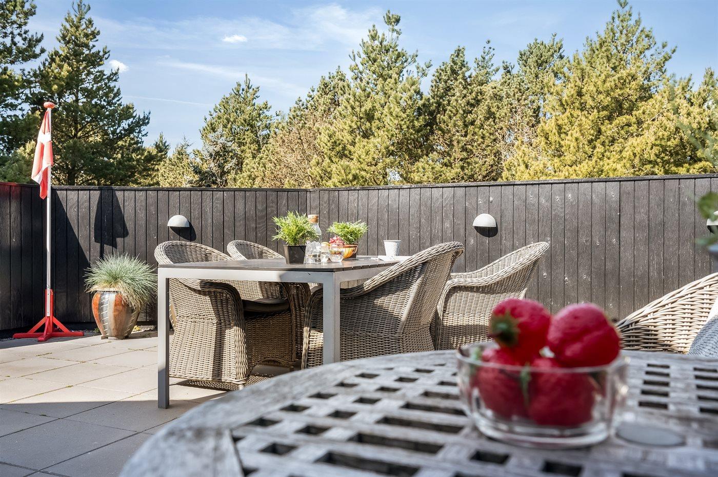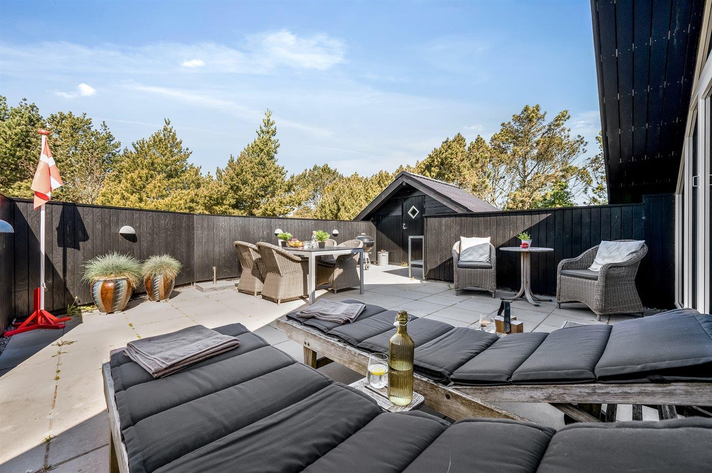 Hyggeligt træsommerhus i Blåvand med nyt køkken, stor terrasse og børnevenlige faciliteter nær havet.