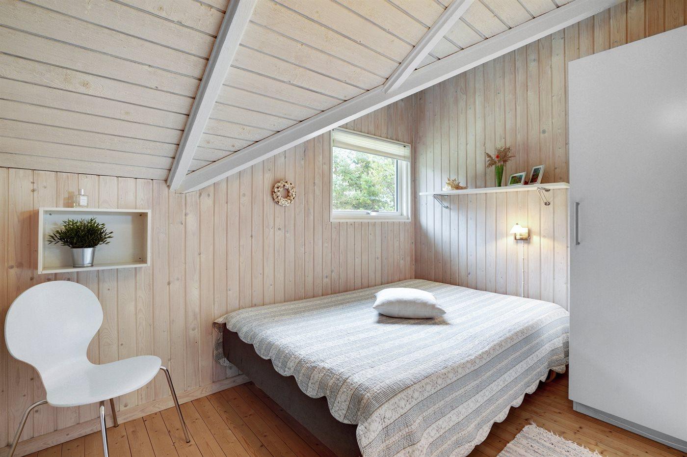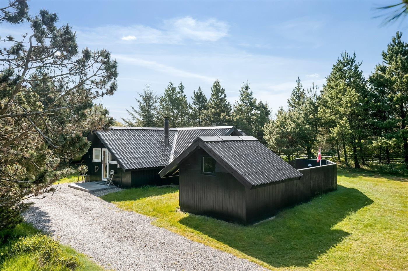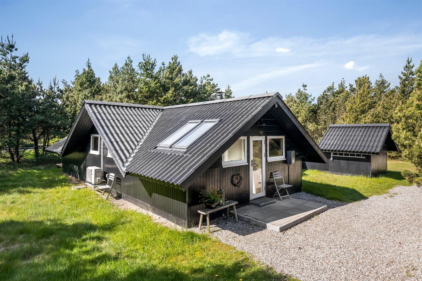Dette rigtig hyggelige, velplejede sommerhus i træ, er bygget i 1978 og løbende renoveret. Senest i 2022 er der etableret et nyt køkken. Huset befinder sig på en naturgrund med græs og fyrretræer. Til huset hører en stor syd-vestvendt terrasse med havemøbler samt sandkasse og gynge til børnene. Indvendig er der flotte trægulve, trævægge og trælofter med synlige bjælker. Det veludstyrede køkken (2022) indeholder bl.a. fryser, mikrobølgeovn og opvaskemaskine. I den hyggelige opholdsstue er der brændeovn og TV. Endvidere rummer huset et flot badeværelse med bruseniche, gulvvarme og vaskemaskine. 3 soveværelser; 2 med dobbeltseng og 1 med 1 enkeltseng. I redskabsrummet er der tørretumbler.