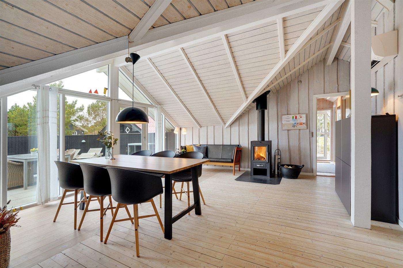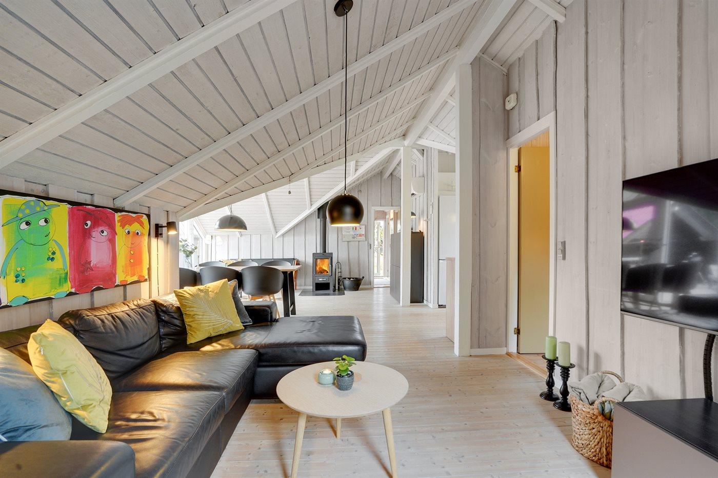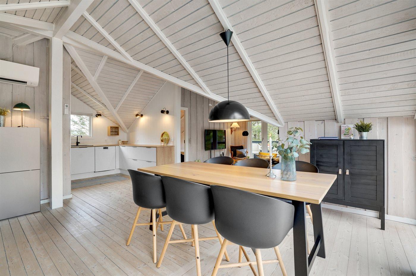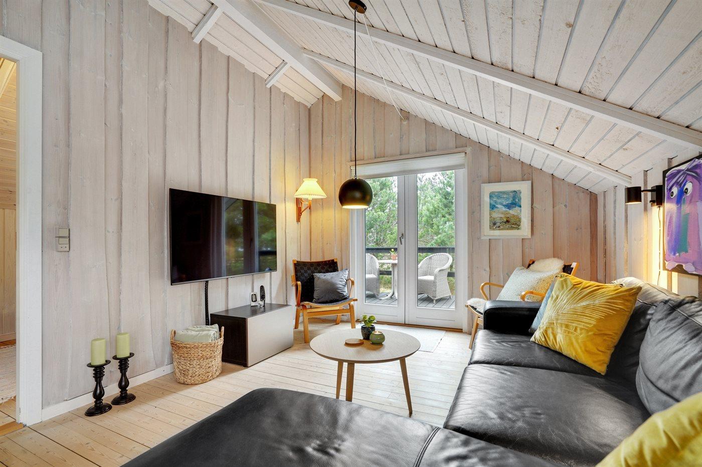 Dette rigtig hyggelige, velplejede sommerhus i træ, er bygget i 1978 og løbende renoveret. Senest i 2022 er der etableret et nyt køkken. Huset befinder sig på en naturgrund med græs og fyrretræer. Til huset hører en stor syd-vestvendt terrasse med havemøbler samt sandkasse og gynge til børnene. Indvendig er der flotte trægulve, trævægge og trælofter med synlige bjælker. Det veludstyrede køkken (2022) indeholder bl.a. fryser, mikrobølgeovn og opvaskemaskine. I den hyggelige opholdsstue er der brændeovn og TV. Endvidere rummer huset et flot badeværelse med bruseniche, gulvvarme og vaskemaskine. 3 soveværelser; 2 med dobbeltseng og 1 med 1 enkeltseng. I redskabsrummet er der tørretumbler.