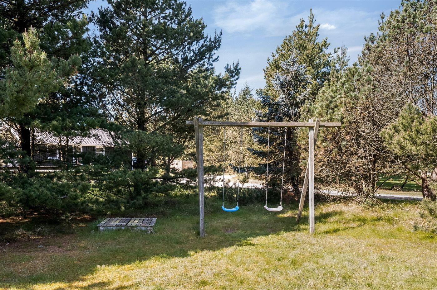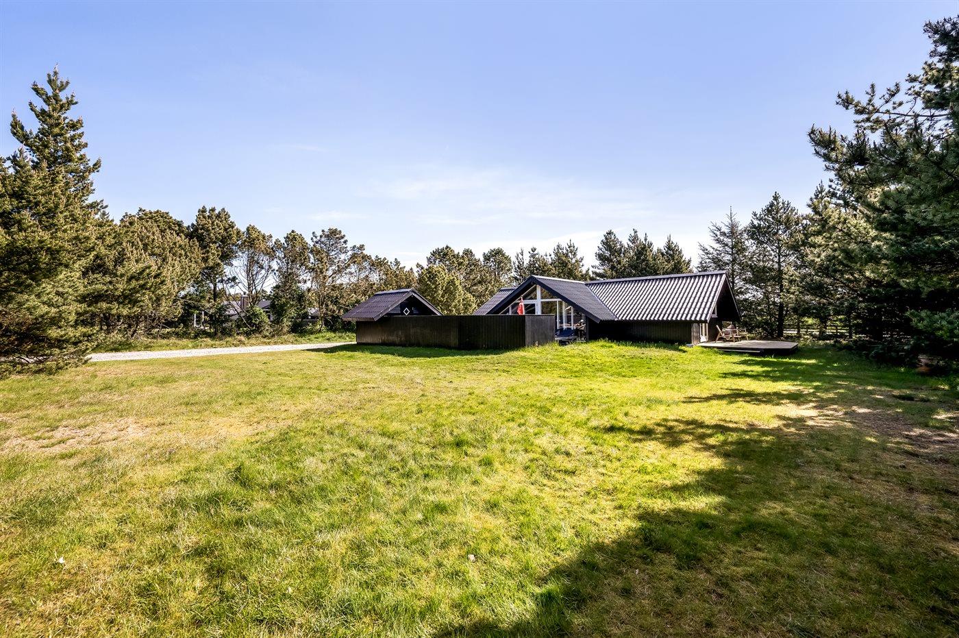 Ferieboligen er beliggende på en 2140 m² stor naturgrund. Der er 800 m til havet. Nærmeste forretning er beliggende i en afstand af 600 m. Til ferieboligen hører 25 m² terrasseareal. Desuden er der 10 m² overdækket terrasse. Der er redskabsrum. Gynge. Sandkasse. Parkering ved ferieboligen.
