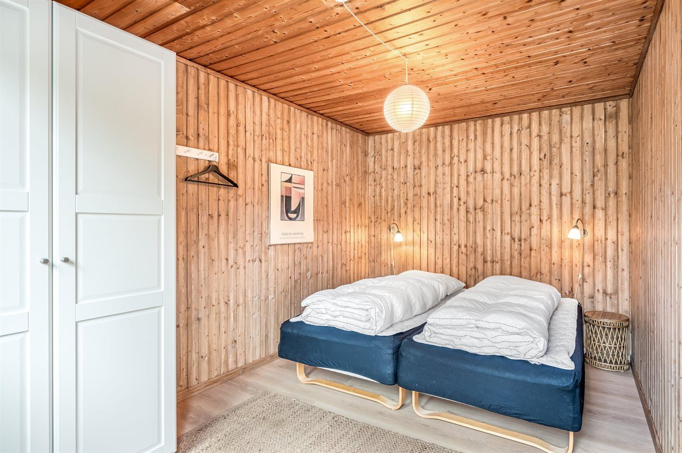Der er i alt 2 soveværelser. Sovepladserne fordeler sig på: 2 sovepladser i dobbeltseng. 2 sovepladser i enkeltsenge.