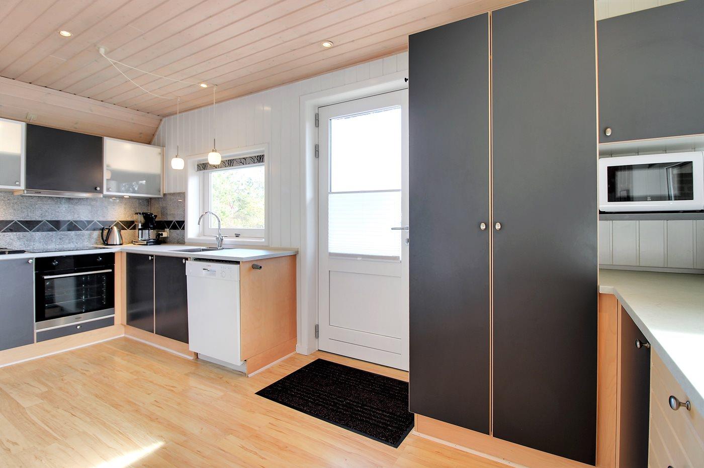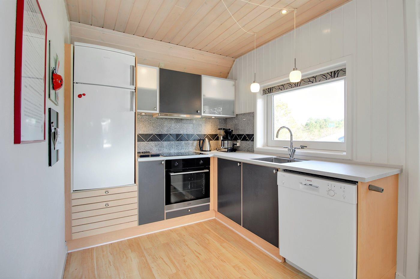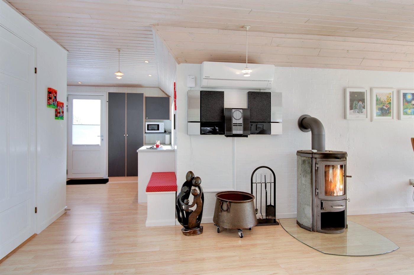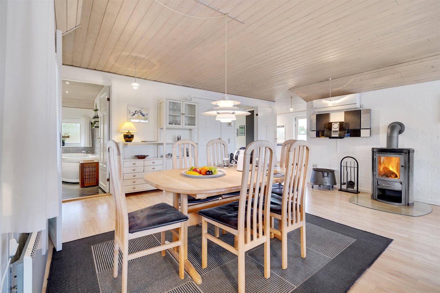400 m fra vandet og 400 m fra indkøbsmuligheder ligger dette dejlige sommerhus i sten med stråtag, bygget i 1986 og renoveret i 2006, på en naturgrund med græsplæne. Til huset hører store øst-, syd- og vestvendte terrasser med havemøbler. Indvendig er der trægulve, hvidmalede vægge og trælofter. Flot badeværelse med 1-pers. spa, bruseniche og opvarmet klinkegulv. Veludstyret køkkenafdeling med bl.a. komfur med induktionskogeplader, varmluftovn, fryser, opvaskemaskine og mikrobølgeovn. I den rummelige og hyggeligt indrettede opholdsstue er der varmepumpe, brændeovn, video, DVD-afspiller, CD-afspiller og fladskærms-TV med parabol (digital). Huset er desuden indrettet med 3 soverum; 1 med dobbeltseng og 2 med hver 2 enkeltsenge. Desuden gratis, trådløs internetforbindelse (computer skal medbringes), vaskemaskine og tørretumbler til rådighed. Til de mindste feriegæster findes der barneseng og høj barnestol samt gynge og lille sandkasse. Redskabsrum med 2 cykler.