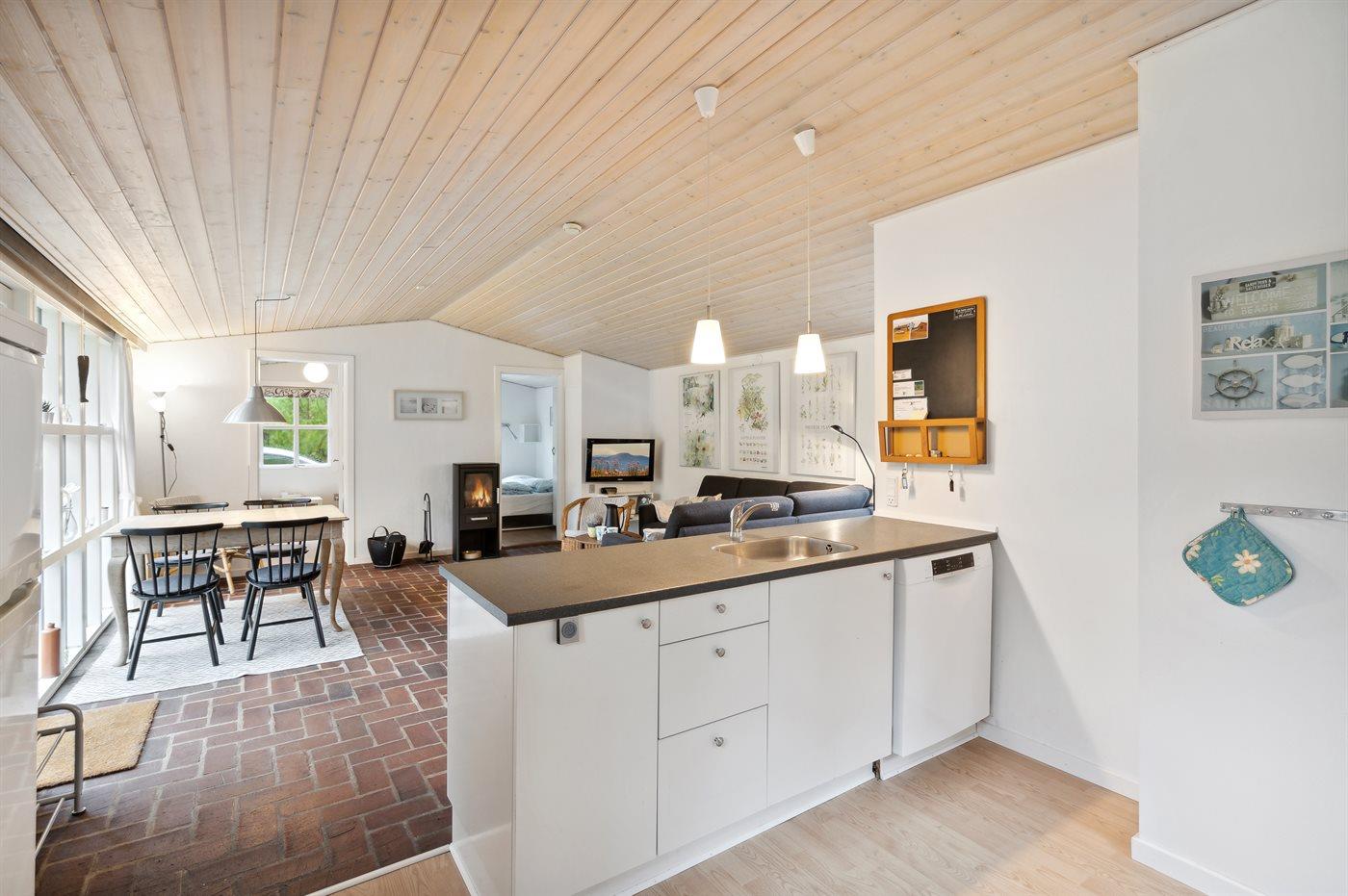 Køkkenet er udstyret med 1 køleskab. Der er 4 keramiske kogeplader, varmluftovn, mikrobølgeovn samt opvaskemaskine.