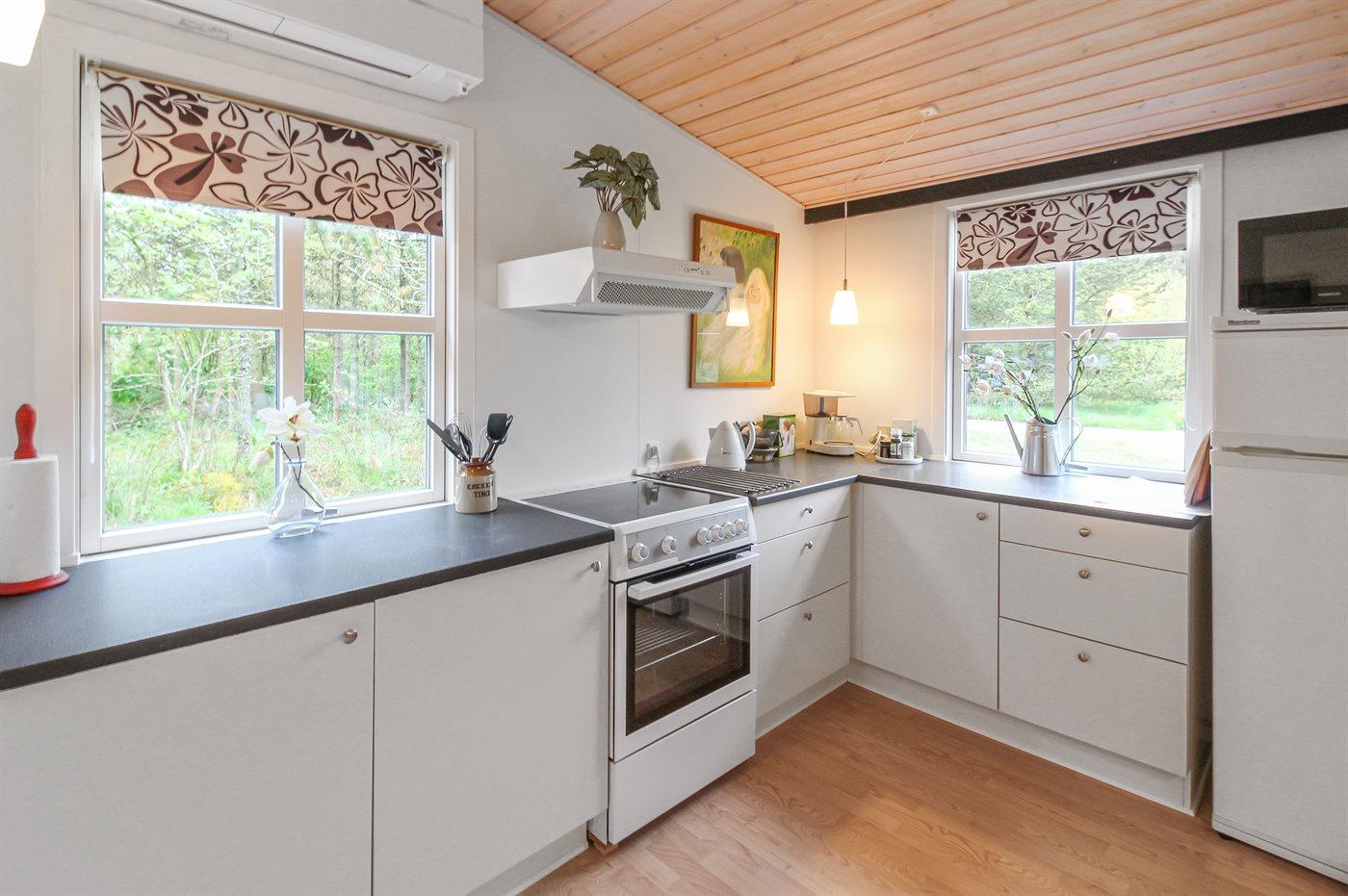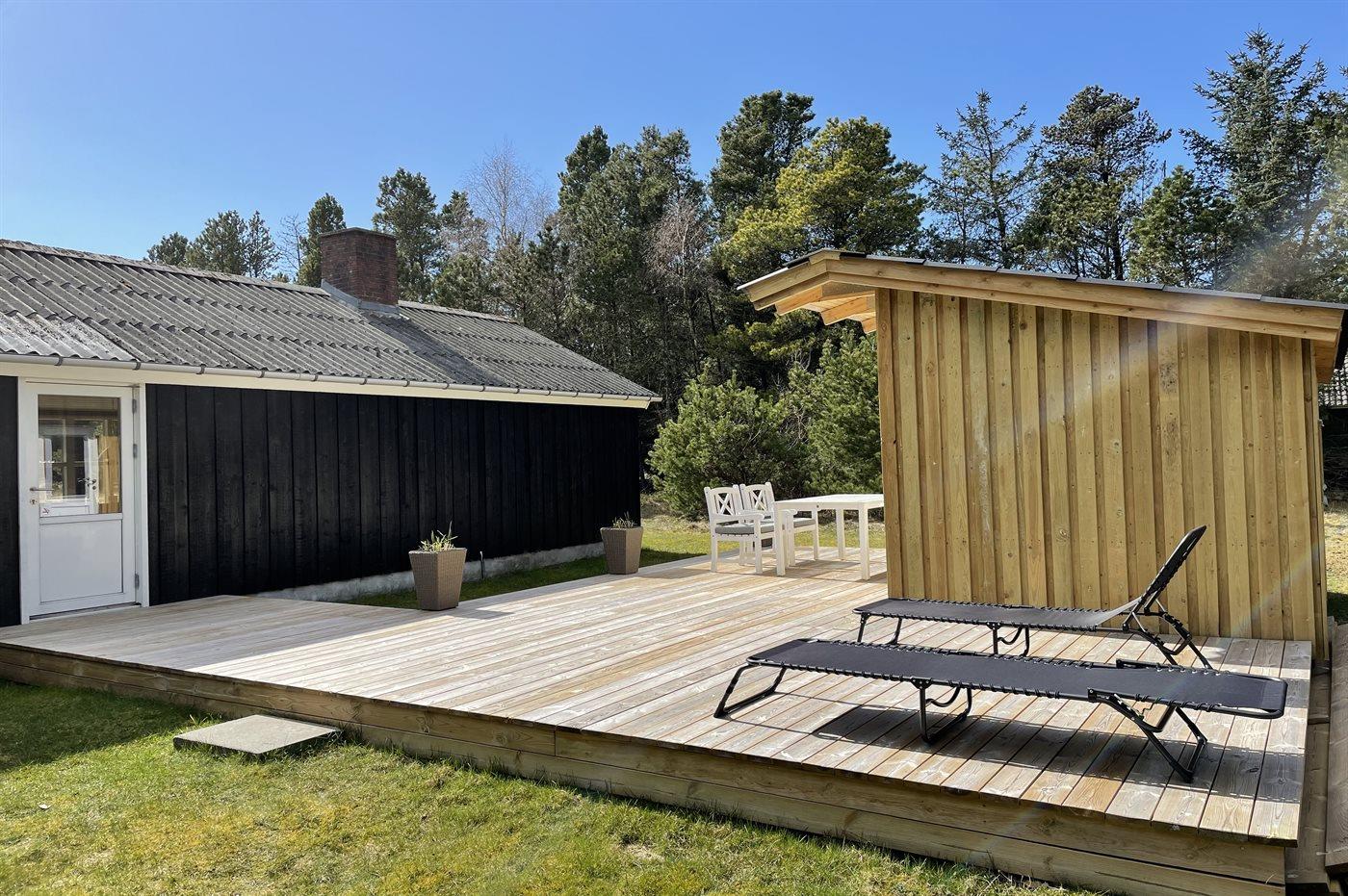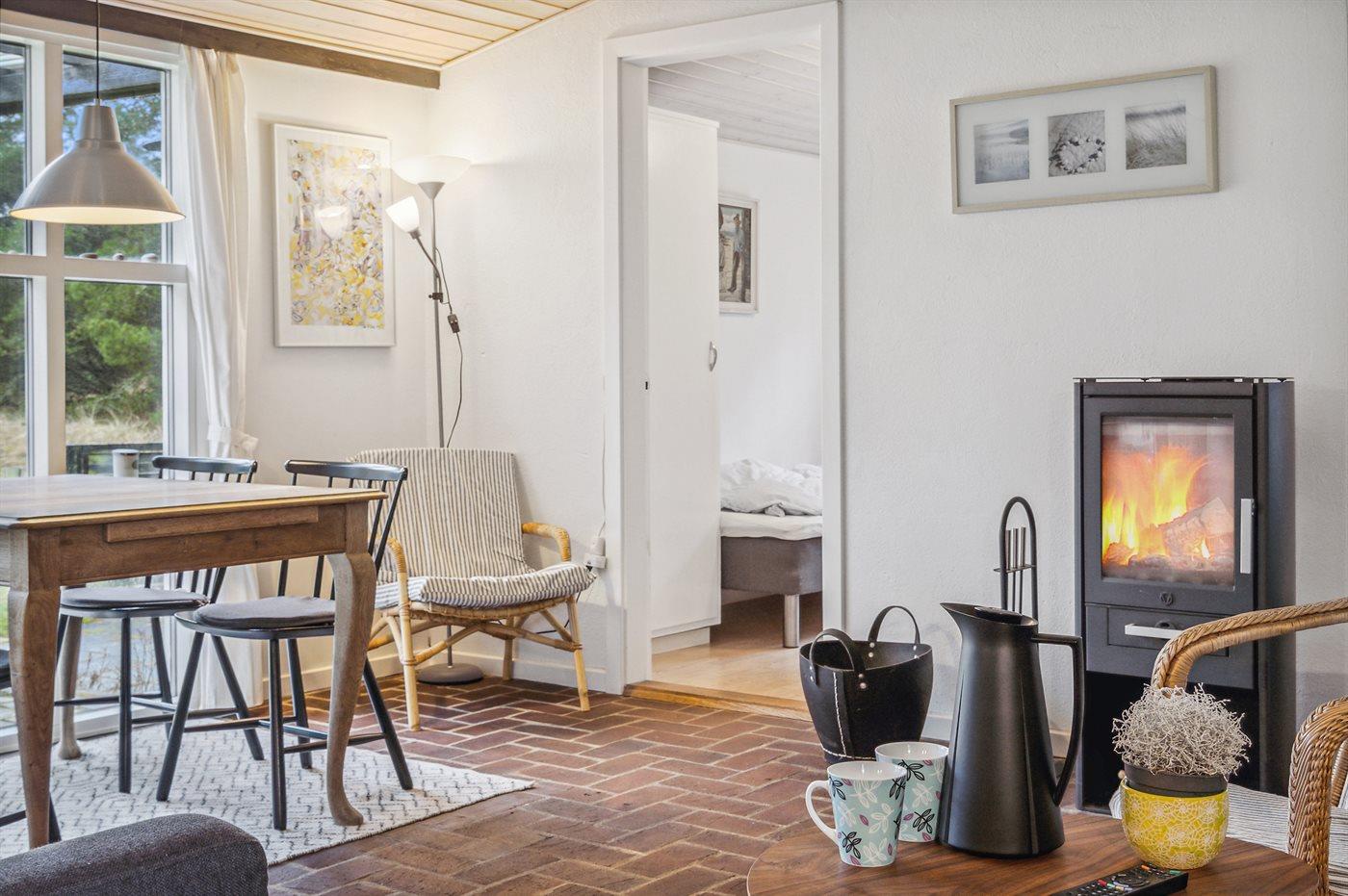 Et hyggeligt og velholdt sommerhus i træ, som i 2021 er renoveret indvendig med badeværelse, brændeovn og møbler i smagfuld stil, som passer til huset. Huset ligger på en skøn naturgrund med græs, omgivet af træer og med udsigt til det fredede område ved Heksebjerget. I uge 28 -32 kan man benytte sig af yderligere 2 sovepladser i et anneks. Til huset hører en delvis overdækket terrasse og en dejlig afskærmet solgård med havemøbler samt vildmarksbad. Alt i alt et godt sommerhus hvor ferien kan nydes hele året rundt.