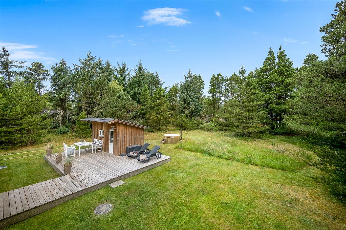 Ferieboligen er beliggende på en 2572 m² stor naturgrund. Der er 3000 m til havet. Nærmeste forretning er beliggende i en afstand af 2000 m. Til ferieboligen hører 61 m² terrasseareal. Desuden er der 10 m² overdækket terrasse. Der er redskabsrum. Sandkasse. Parkering ved ferieboligen.
