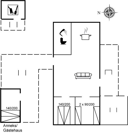 Der er i alt 2 soveværelser. Sovepladserne fordeler sig på: 2 sovepladser i dobbeltseng. 2 sovepladser i enkeltsenge.