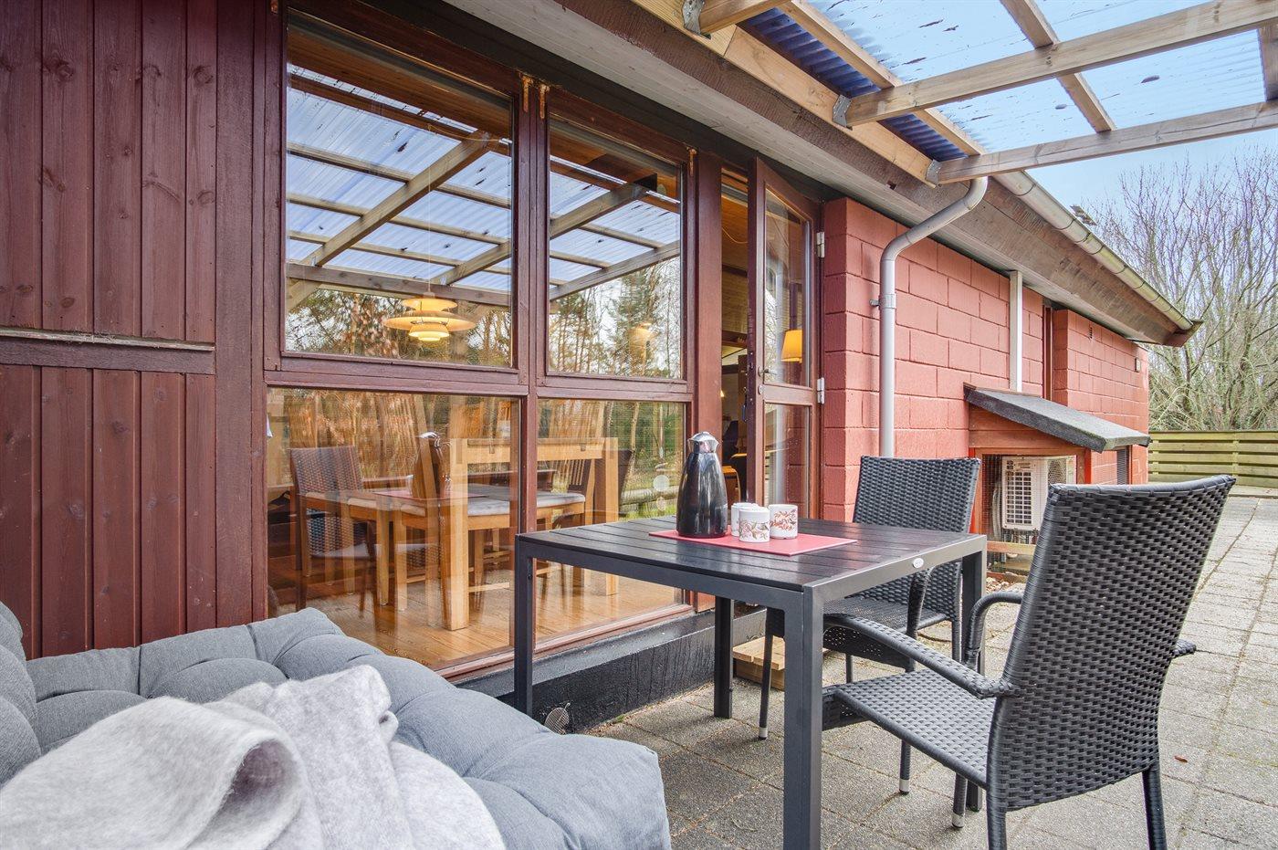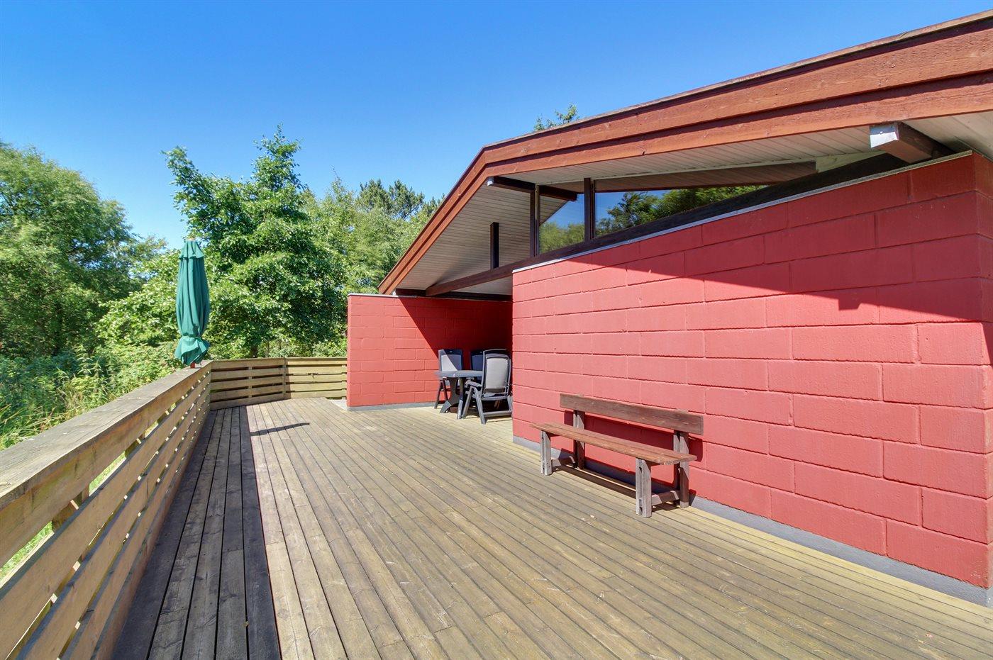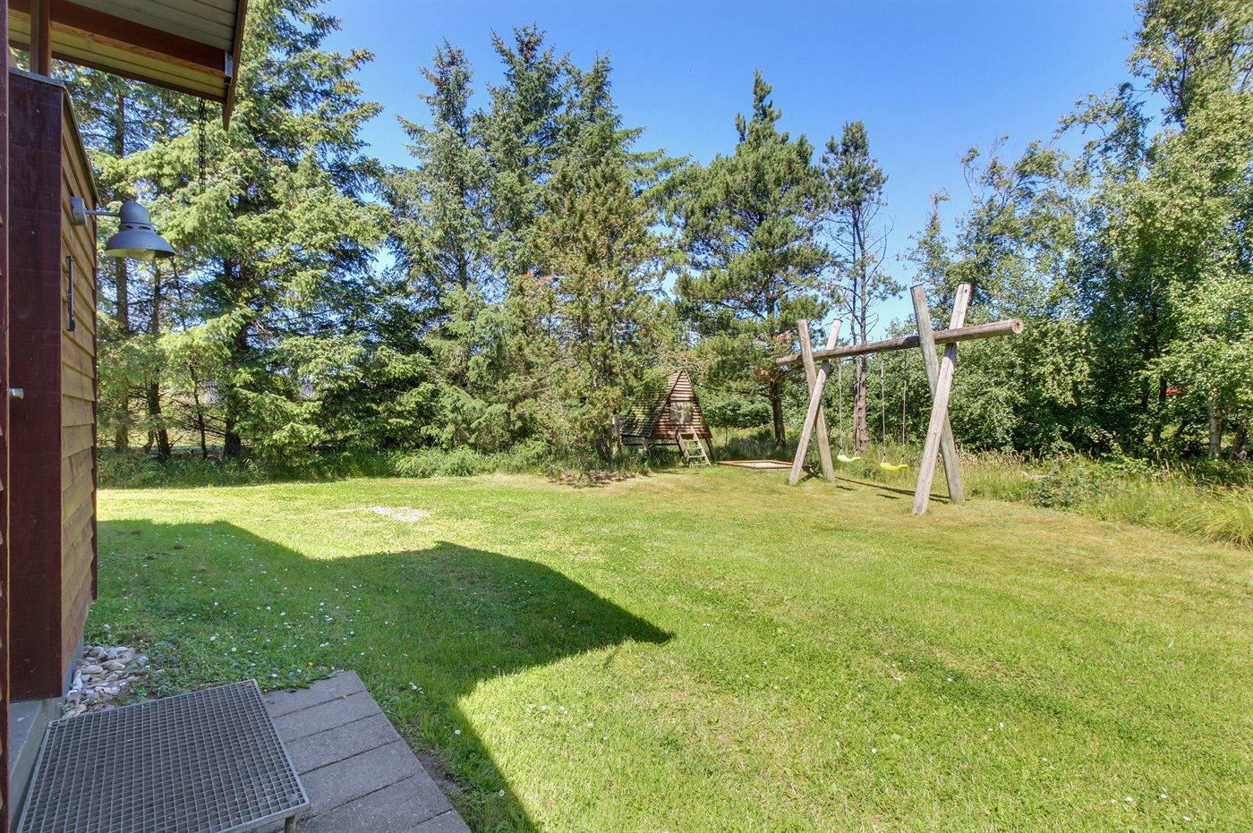 Ferieboligen er beliggende på en 2025 m² stor naturgrund. Der er 600 m til havet. Nærmeste forretning er beliggende i en afstand af 700 m. Til ferieboligen hører 75 m² terrasseareal. Desuden er der 8 m² overdækket terrasse. Der er redskabsrum. Gynge. Sandkasse. Legehus. Der er carport til rådighed. Parkering ved ferieboligen.