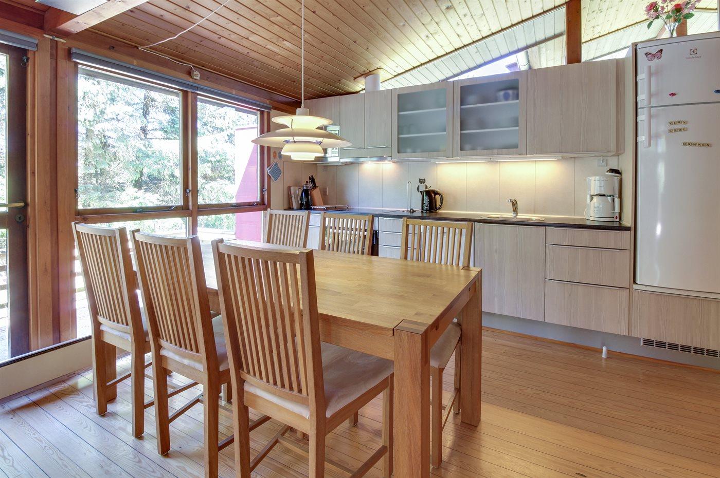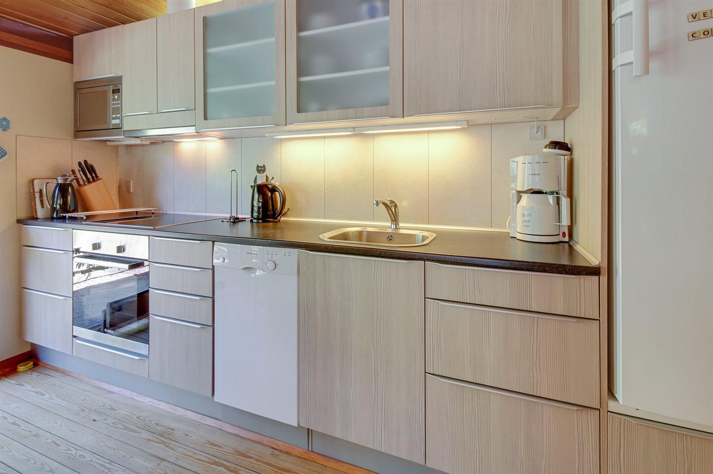 Køkkenet er udstyret med 1 køleskab. Der er 4 keramiske kogeplader, varmluftovn, mikrobølgeovn samt opvaskemaskine.