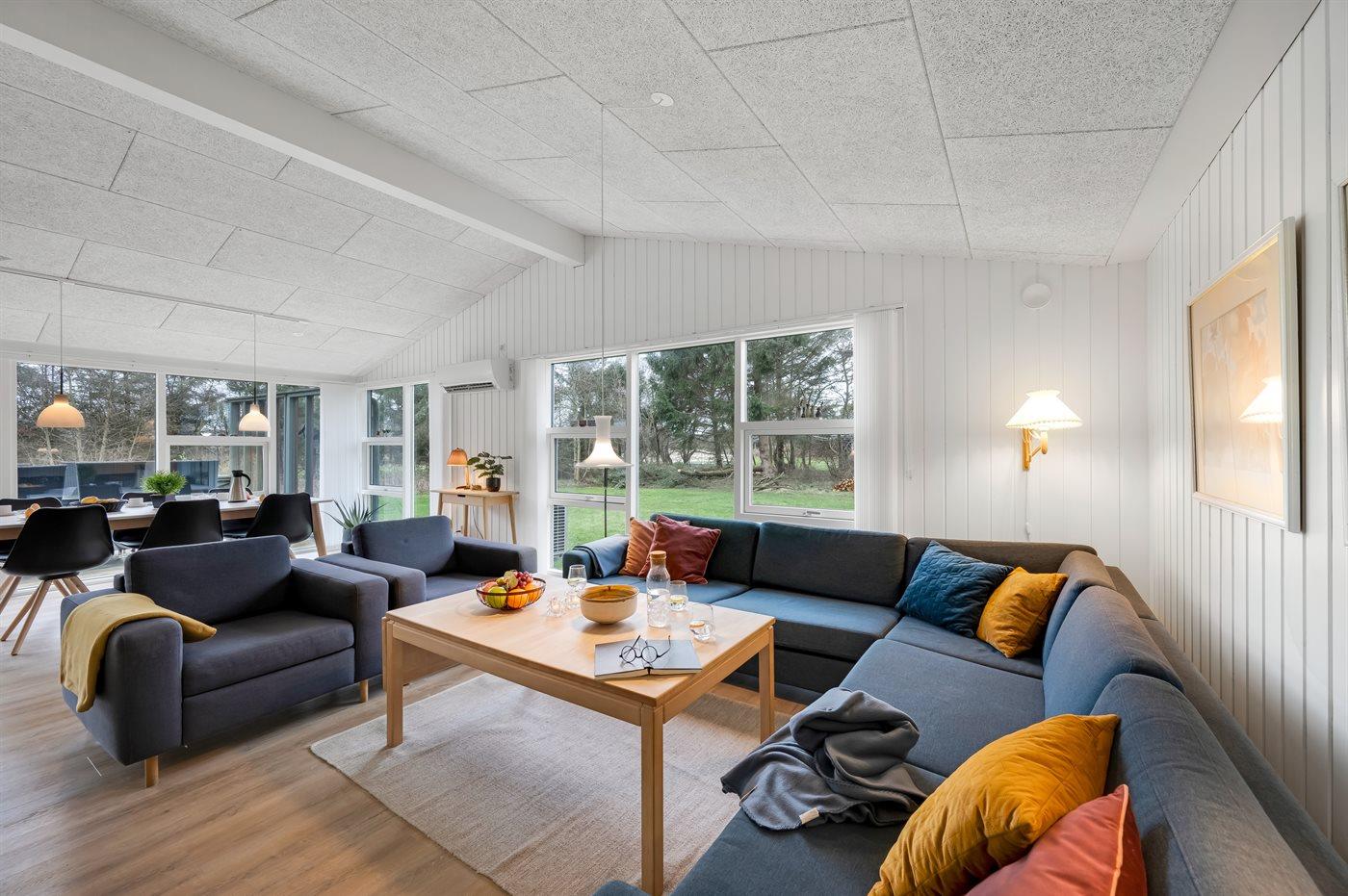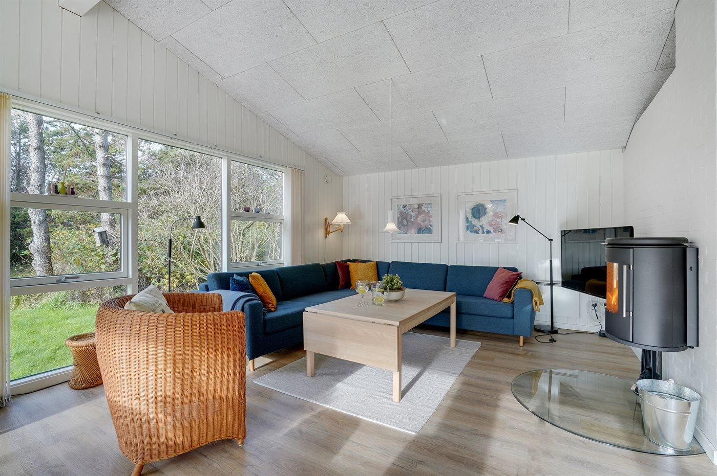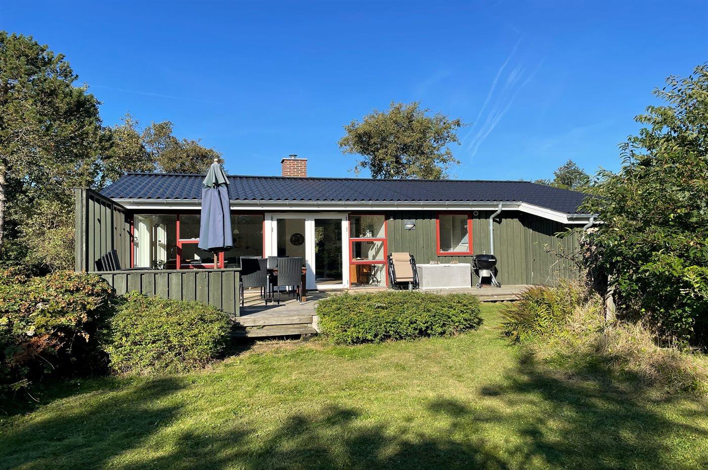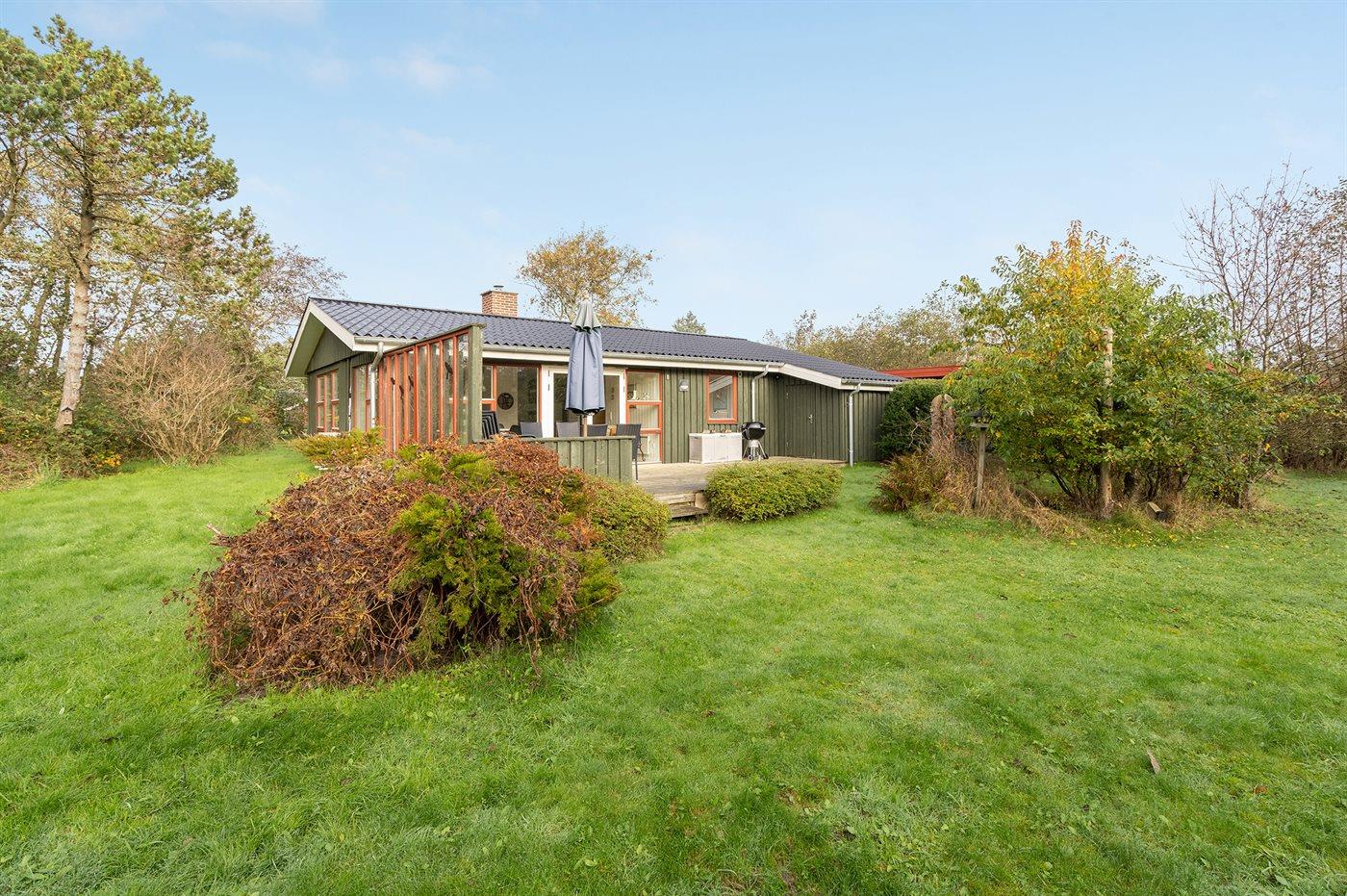 Hyggeligt sommerhus i Blåvand nær by og Vesterhavets strand på stor naturgrund.