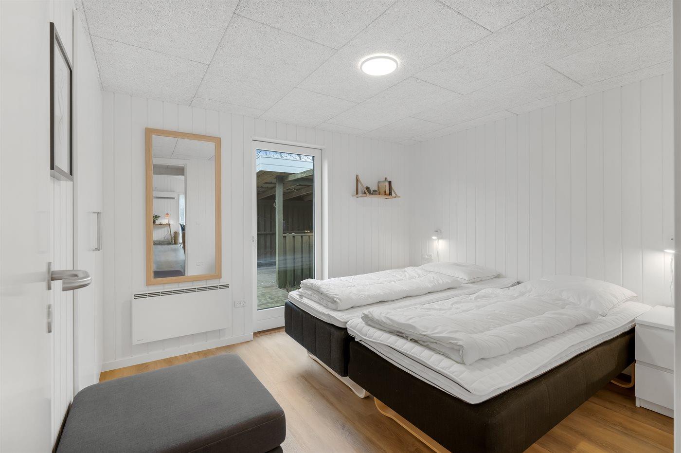 Der er i alt 3 soveværelser. Sovepladserne fordeler sig på: 4 sovepladser i dobbeltsenge. 1 soveplads i enkeltseng. Derudover er der 1 stk. barneseng.