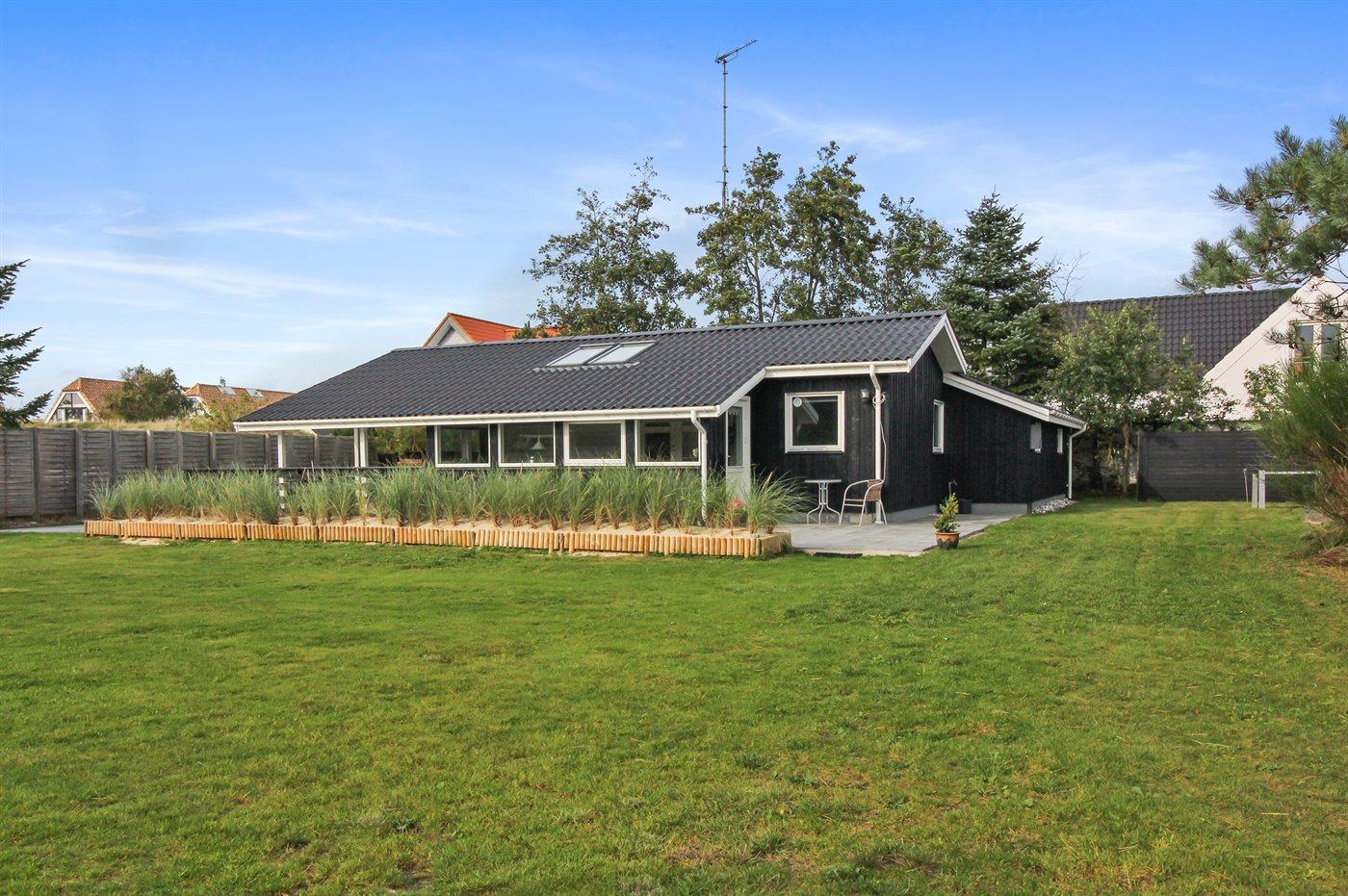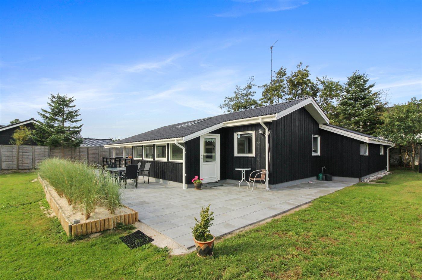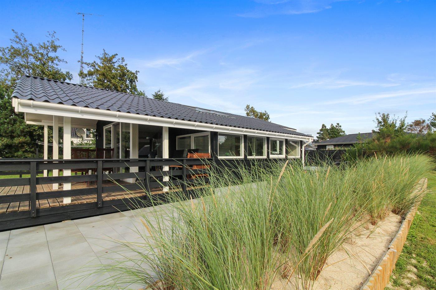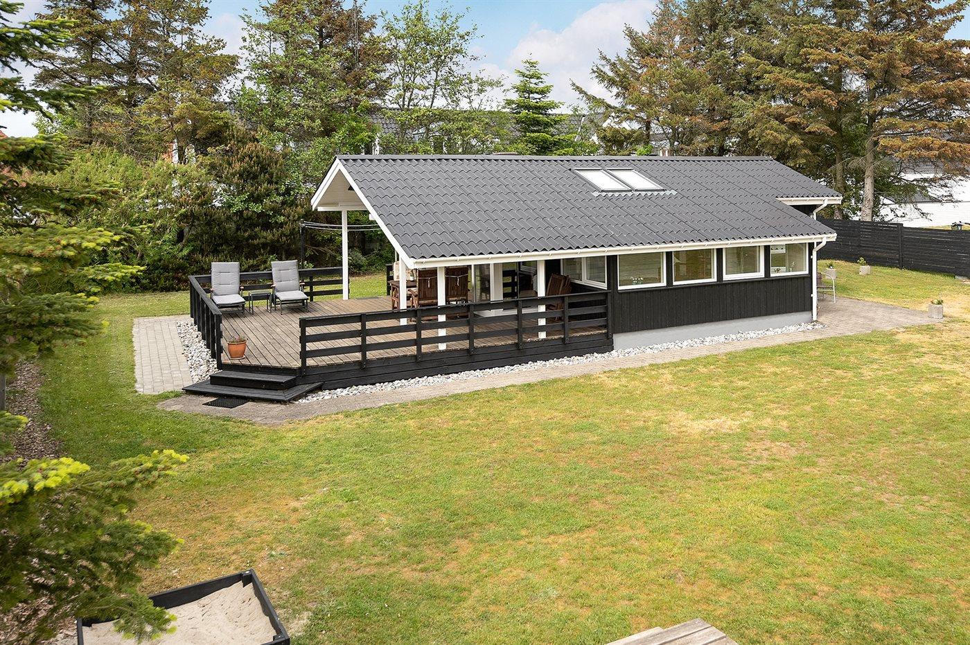 Ikke langt fra havet og den dejlige sandstrand finder I dette veludstyrede sommerhus i træ med spa og sauna, senest renoveret i 2014 med bl.a. nyt køkken, nyt tag og nye trægulve i stue og køkken. Huset ligger på en naturgrund med græs, der er omgivet af træer - her finder I såvel sandkasse samt gynge til børnene. Til huset hører et delvist overdækket terrasseareal med nye havemøbler og liggestole samt en dejlig, sydvendt udestue. Det veludstyrede køkken indeholder bl.a. fryser, mikrobølgeovn og opvaskemaskine, og i den hyggelige opholdsstue med lædermøblement er der brændeovn, stereoanlæg med CD-afspiller samt TV tilsluttet fibernet og DVD-afspiller. Skønt badeværelse med bruseniche, 2-pers. spa og direkte adgang til sauna. Husets sovepladser fordeler sig på 3 gode værelser med dobbeltseng. Af yderligere udstyr kan gratis, trådløs internetforbindelse (computer skal medbringes), vaskemaskine, tørretumbler, høj barnestol samt barneseng nævnes og der er gulvvarme i huset samt installeret energibesparende varmepumpe. Her er tale om et dejligt sommerhus i særklasse.