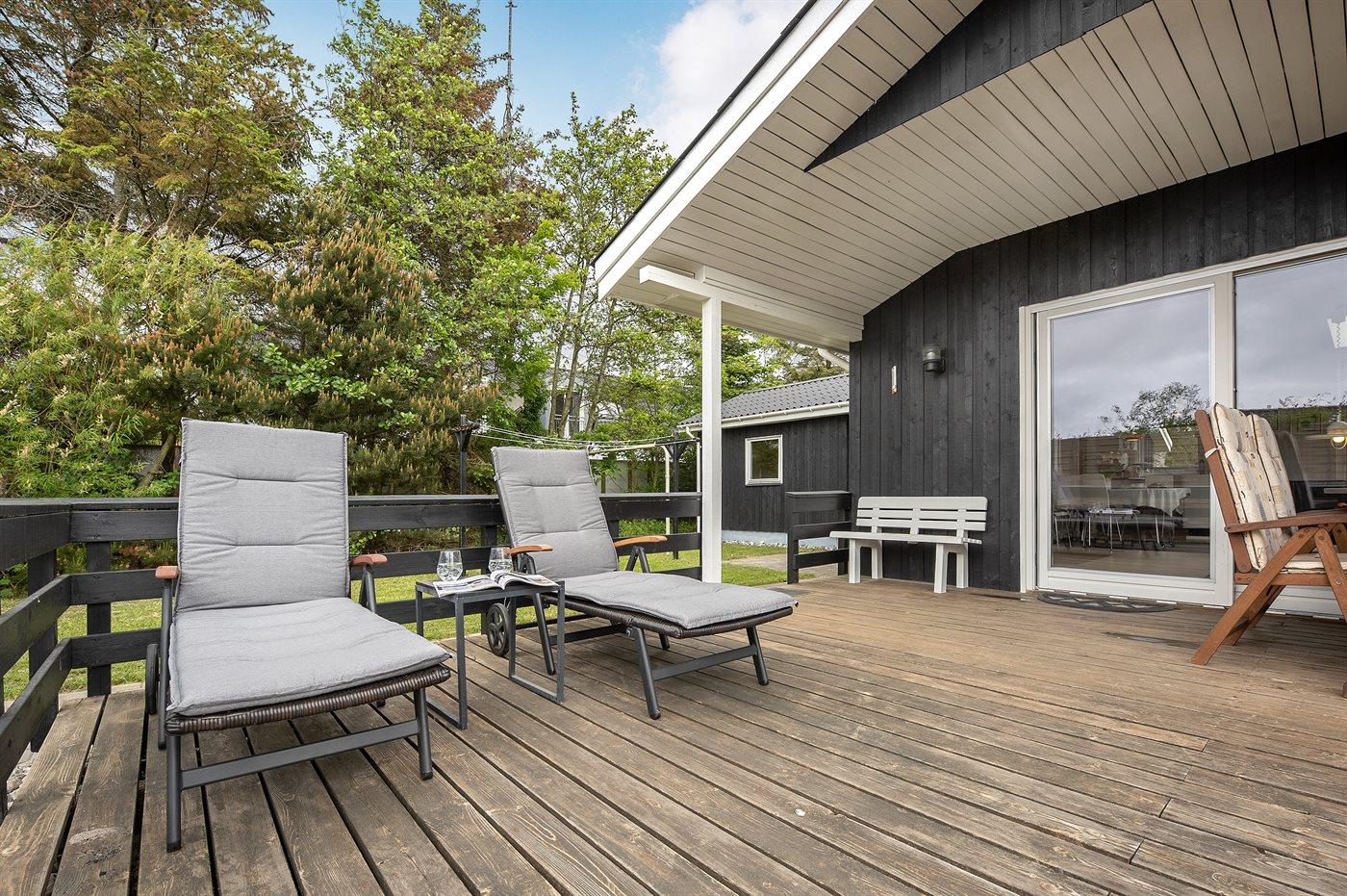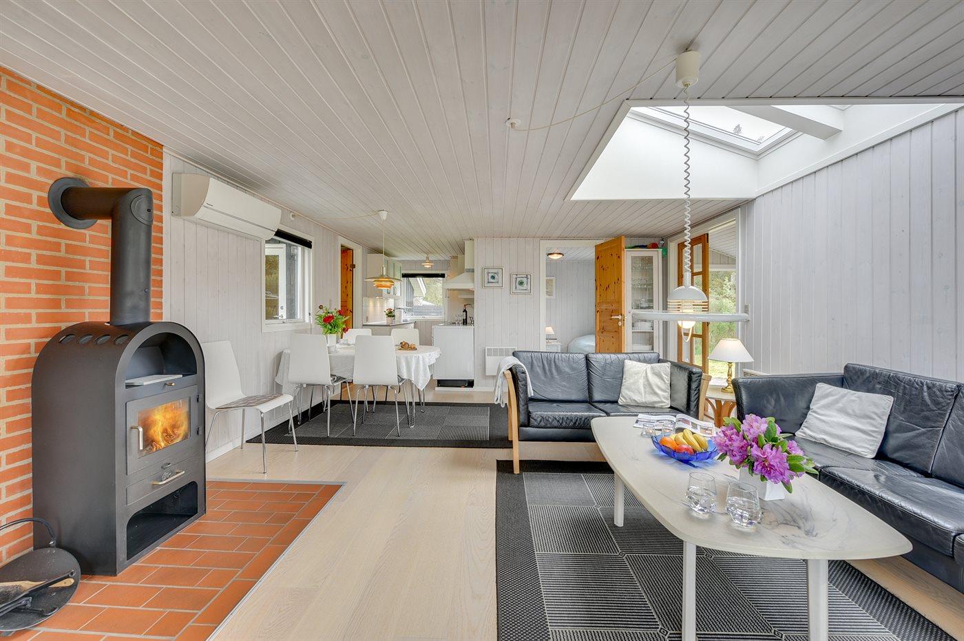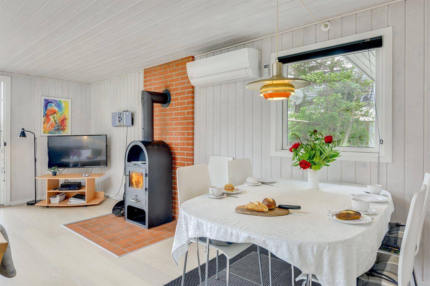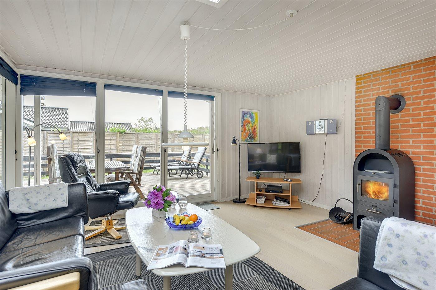 Ikke langt fra havet og den dejlige sandstrand finder I dette veludstyrede sommerhus i træ med spa og sauna, senest renoveret i 2014 med bl.a. nyt køkken, nyt tag og nye trægulve i stue og køkken. Huset ligger på en naturgrund med græs, der er omgivet af træer - her finder I såvel sandkasse samt gynge til børnene. Til huset hører et delvist overdækket terrasseareal med nye havemøbler og liggestole samt en dejlig, sydvendt udestue. Det veludstyrede køkken indeholder bl.a. fryser, mikrobølgeovn og opvaskemaskine, og i den hyggelige opholdsstue med lædermøblement er der brændeovn, stereoanlæg med CD-afspiller samt TV tilsluttet fibernet og DVD-afspiller. Skønt badeværelse med bruseniche, 2-pers. spa og direkte adgang til sauna. Husets sovepladser fordeler sig på 3 gode værelser med dobbeltseng. Af yderligere udstyr kan gratis, trådløs internetforbindelse (computer skal medbringes), vaskemaskine, tørretumbler, høj barnestol samt barneseng nævnes og der er gulvvarme i huset samt installeret energibesparende varmepumpe. Her er tale om et dejligt sommerhus i særklasse.